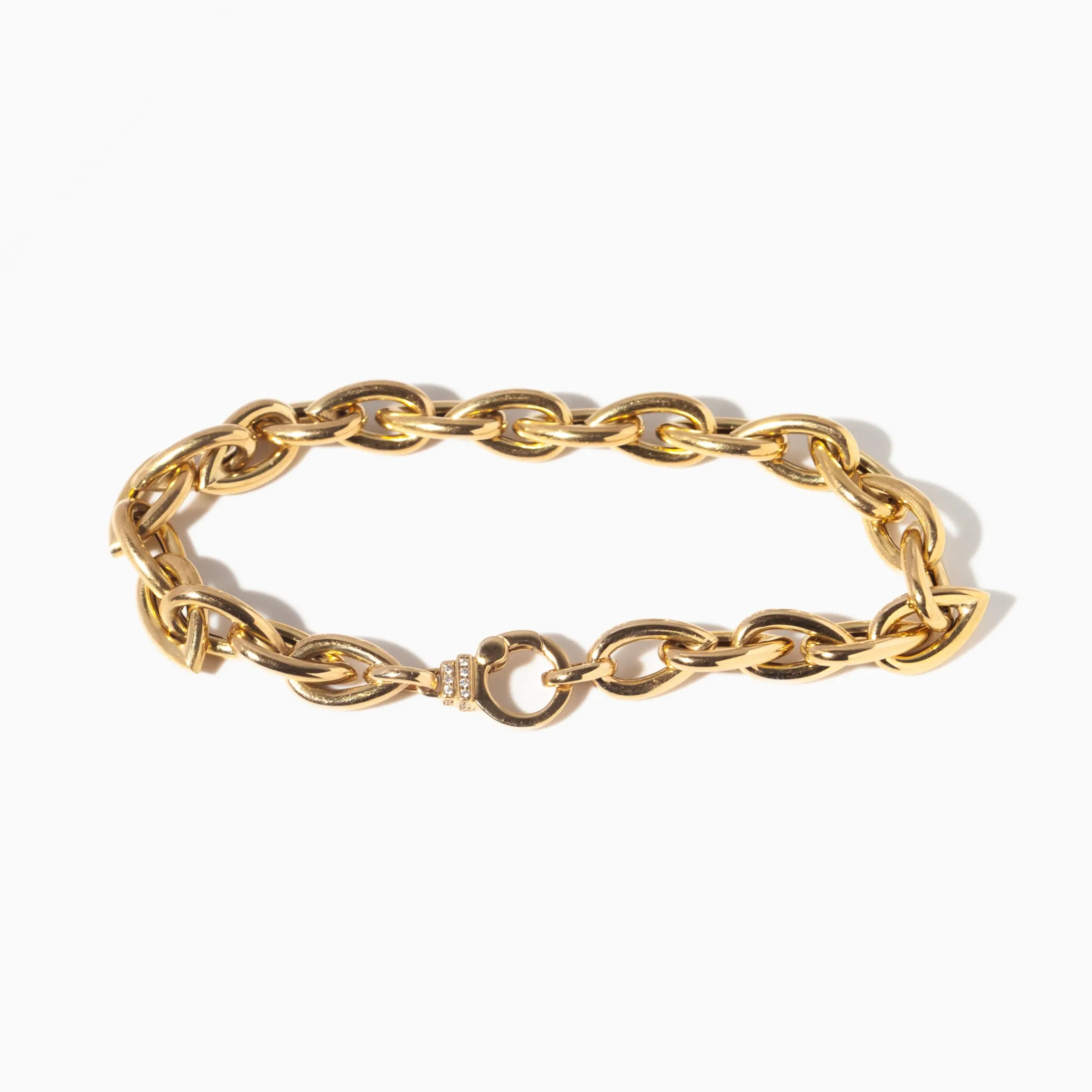 With chunky teardrop shaped chain links and a signature diamond covered Sorellina clasp, this new bracelet is a dream to stack. Plus, it’s interesting from all angles–mix with other bracelets and keep the compliments coming! Made in New York City.