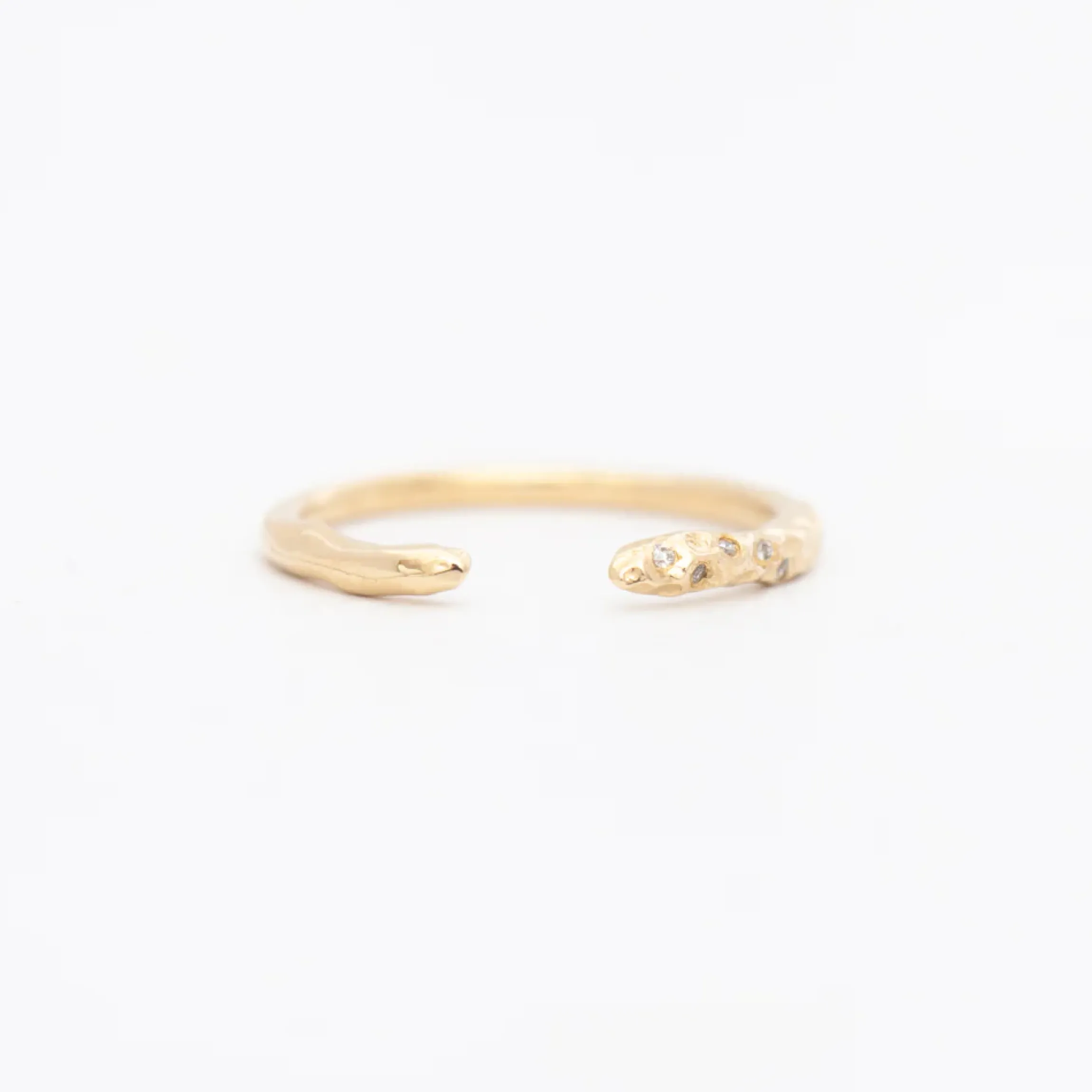 Inspired by the beauty of the sea and the tender strength of an octopus tentacle, this cuff ring by designer Misa Hamamoto helps reimagine the ways by which you can hold the things you love close. Its soft, hand-sculpted texture and asymmetric dusting of diamonds pairs beautifully with minimal solitaires—or as an addition to ring stacks of all shapes and sizes.