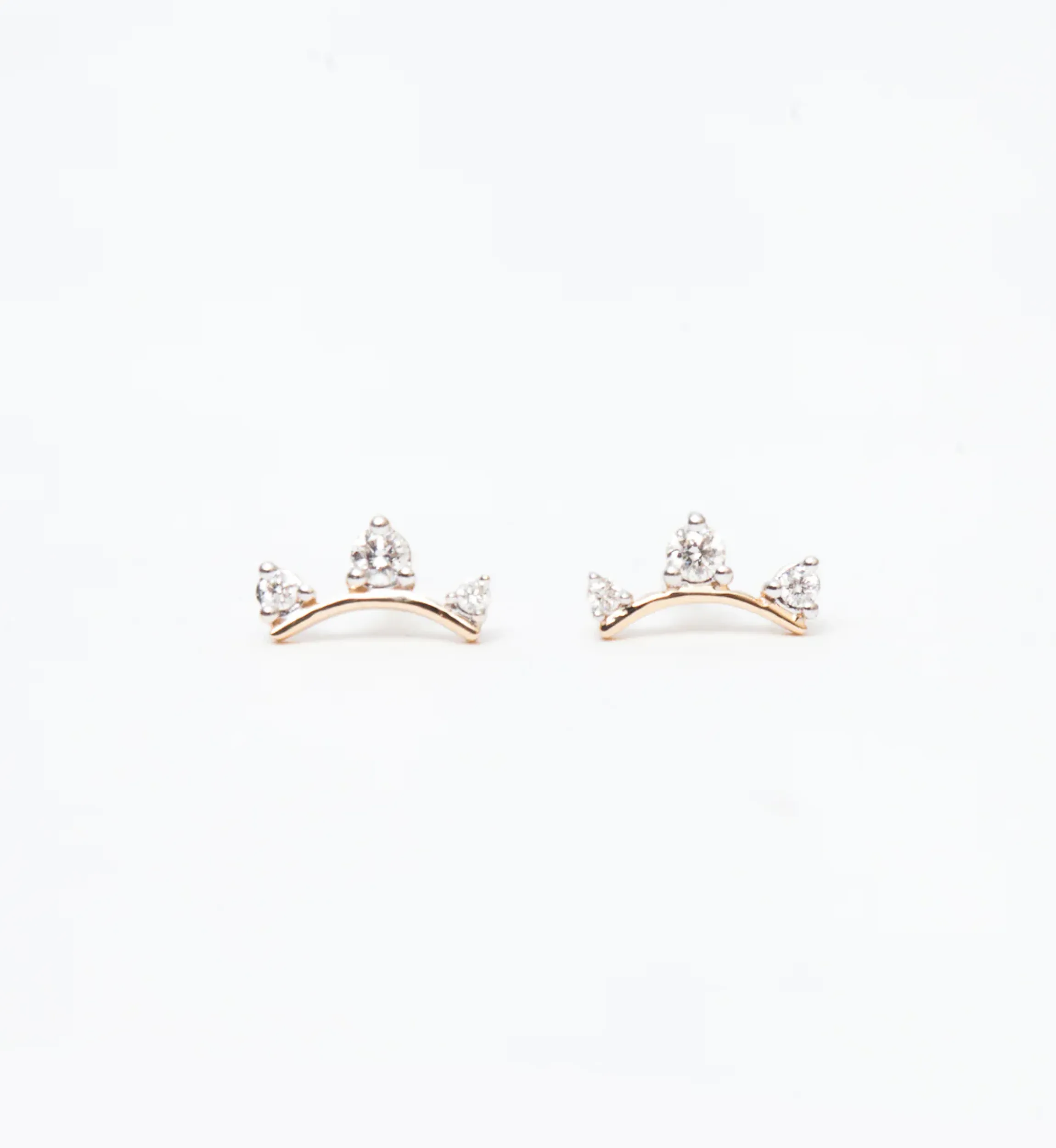 A triplet of delicate diamonds arcs across each eat with these simple-to-wear, easy-to-style stud earrings. Their subtle curve lets you twist them for different looks: with the diamonds down for a more classic look or angled up to trace the ear. Designed in Los Angeles.