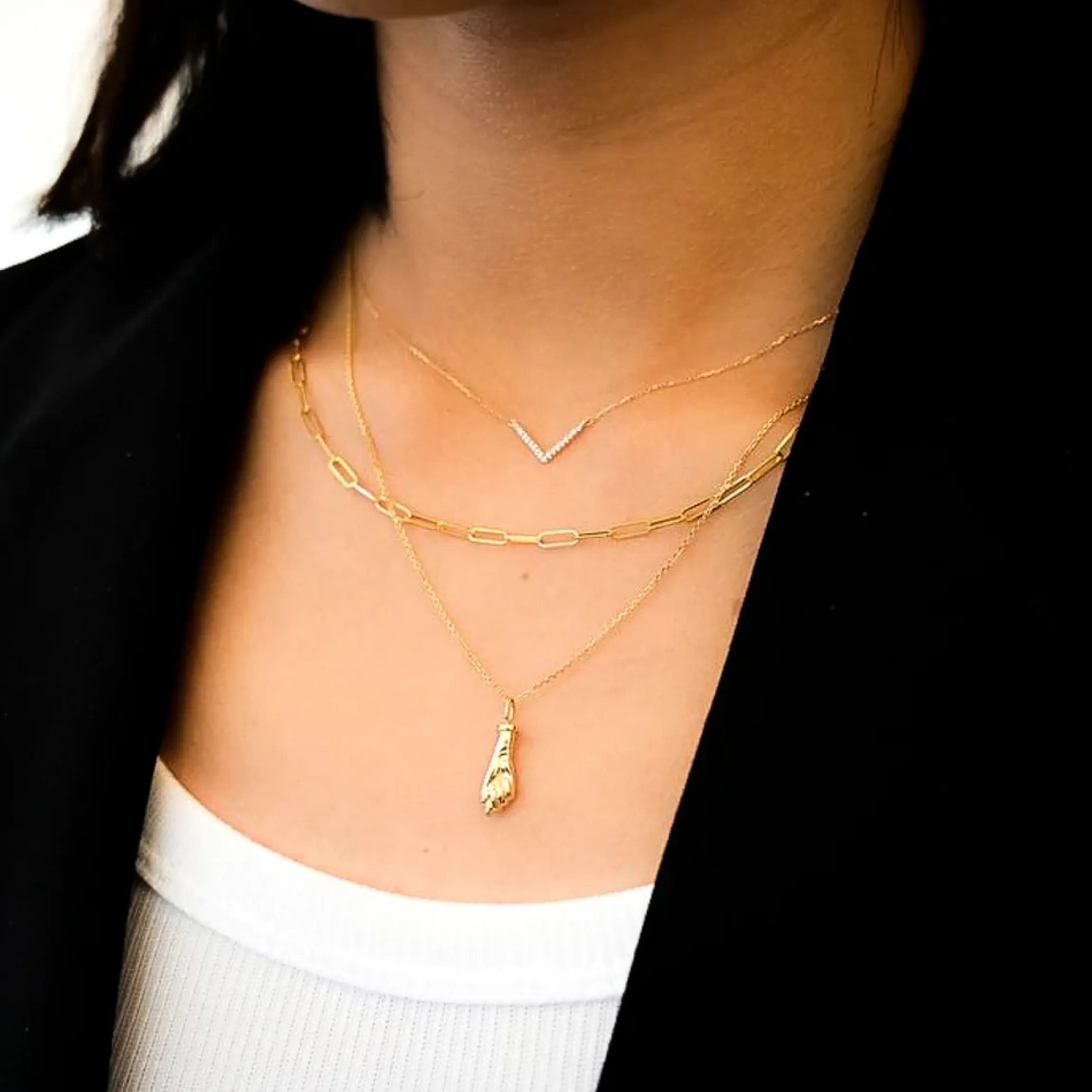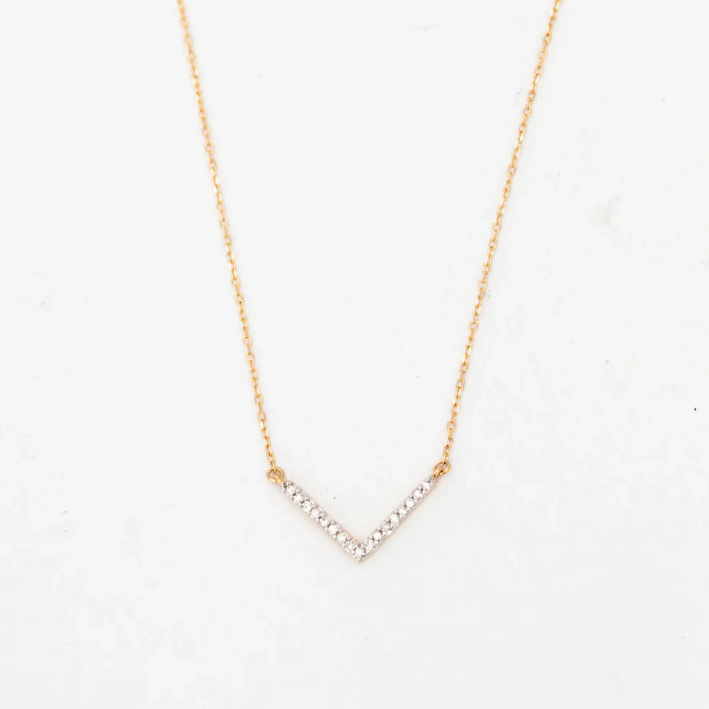 A simple motif, when executed with care, can speak a thousand words. That’s certainly the case here with this delicate beauty by beloved designer Adina Reyter. Hand set pavé diamonds sparkle across the pendant “V”, sitting just at the nape of the neck for an understated dash of elegance that goes with everything.
