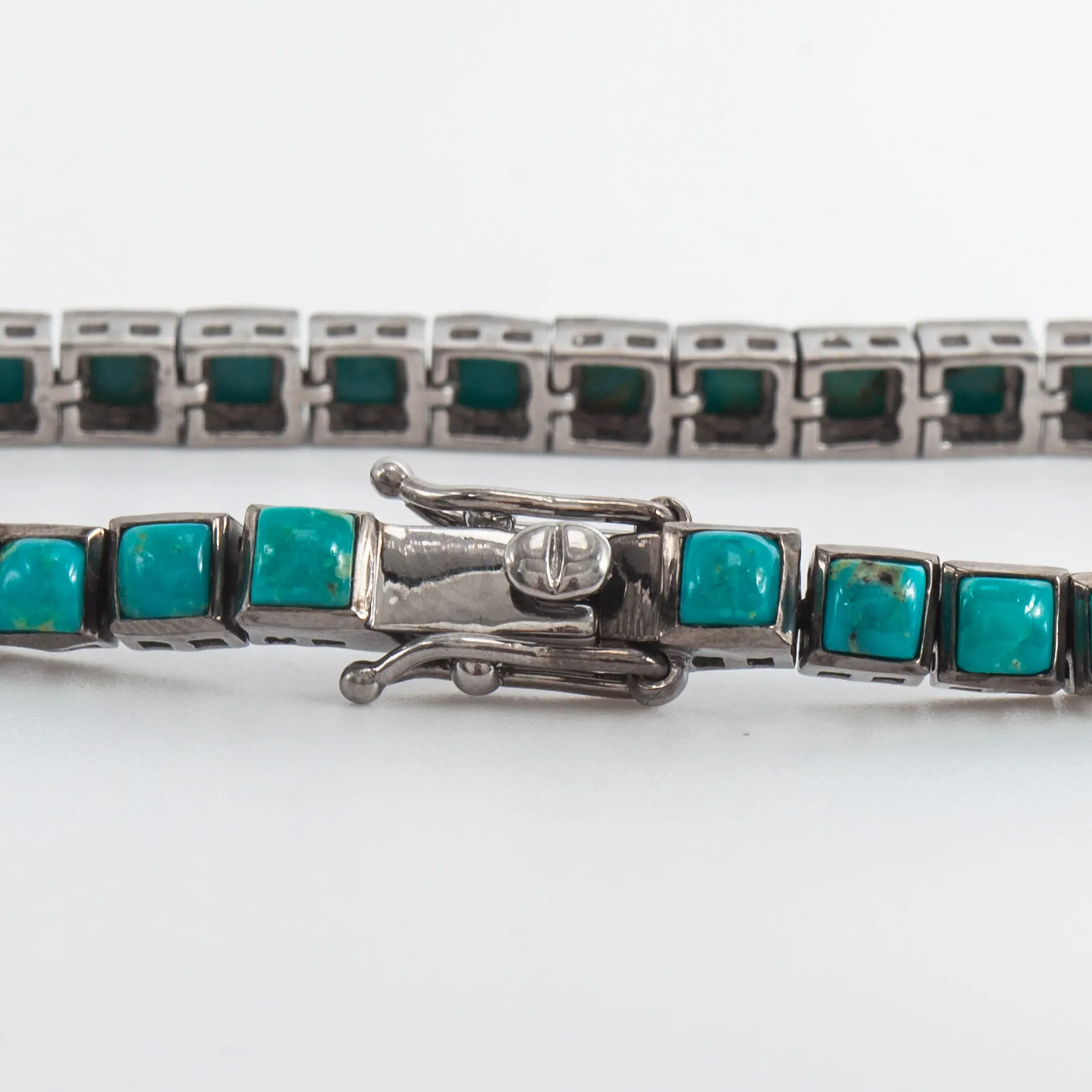 Experience the ultimate luxury and wearability of Nakard jewelry with this brand-new Turquoise Mini Tile Tennis Bracelet. Utilizing innovative metalworking techniques and experiential design, Nak Armstrong crafted this piece with genuine, turquoise stones and set it in a classic tennis bracelet design. This bracelet looks amazing and feels even better to wear. Heavy in stones and metal, this is the perfect way to add an alternative pop of color to any outfit. Designed in Austin, Texas.