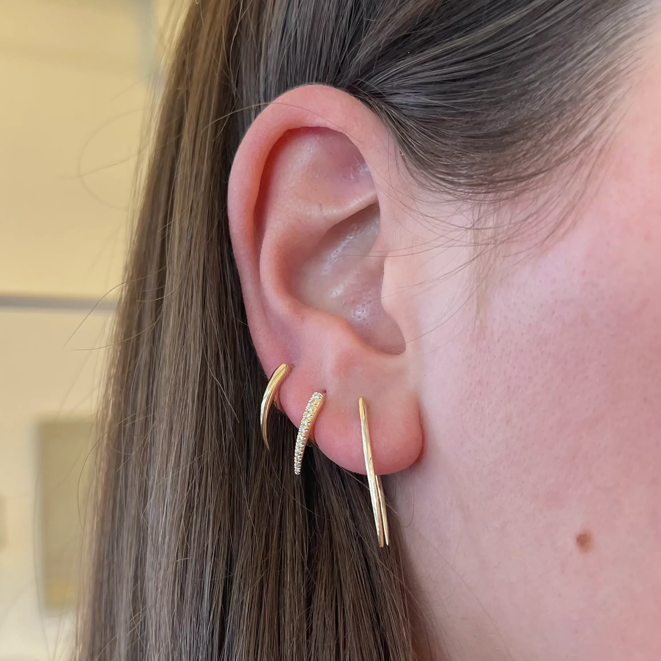 Designed and handcrafted in Los Angeles, these petite huggie hoops cleverly integrate Artigas’ signature tusk silhouette in gleaming solid gold. A little edgy and a whole lot exquisite, they’re great for both everyday wear and special occasions alike.