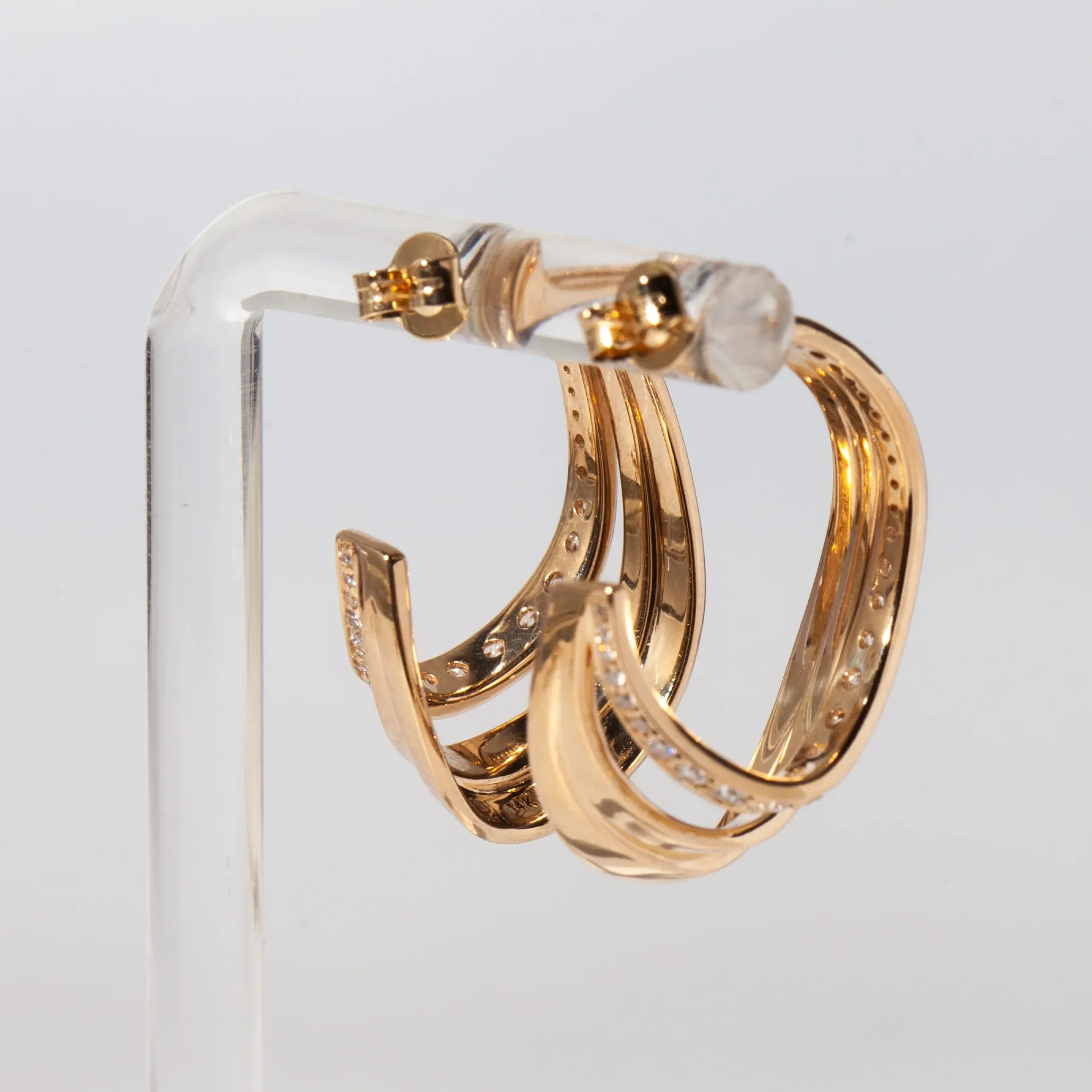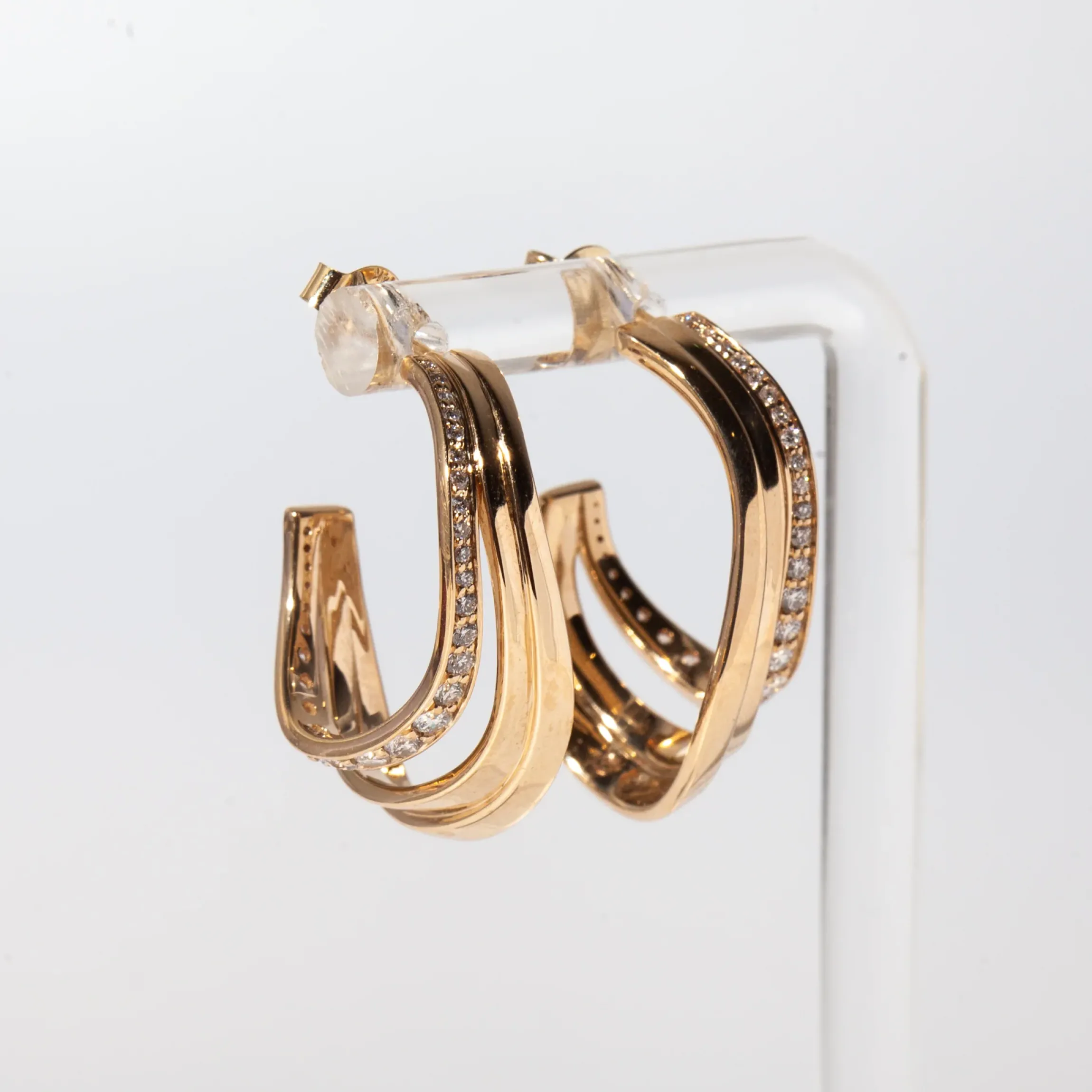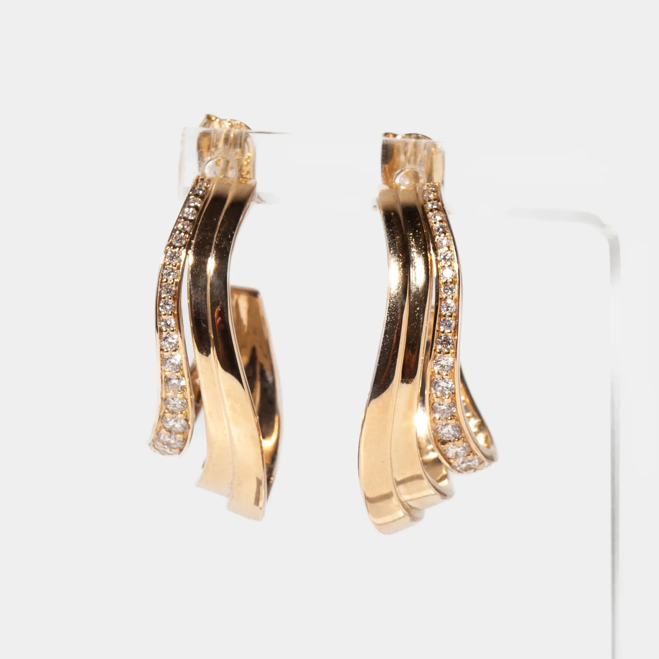 Wavy bands of gold paired with a bold squiggle of round brilliant diamonds make these new earrings an absolute showstopper. Inspired by Casey Perez’s Mexican-American heritage, each piece showcases her passion for jewelry making. These meticulously crafted hoops will have you in awe. Designed and crafted in Brooklyn, NYC.