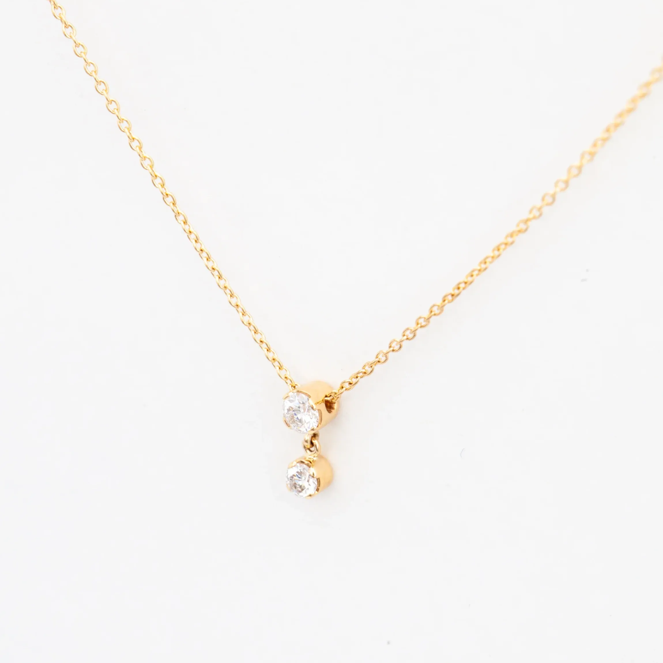 Copenhagen designer Sophie Bille Brahe is known for creating unique jewelry that is designed to be treasured today and passed down to generations to come. Twp white diamonds slide along a delicate golden cable chain adding exquisite movement to your necklace stack. Finished with the signature SBB loop clasp