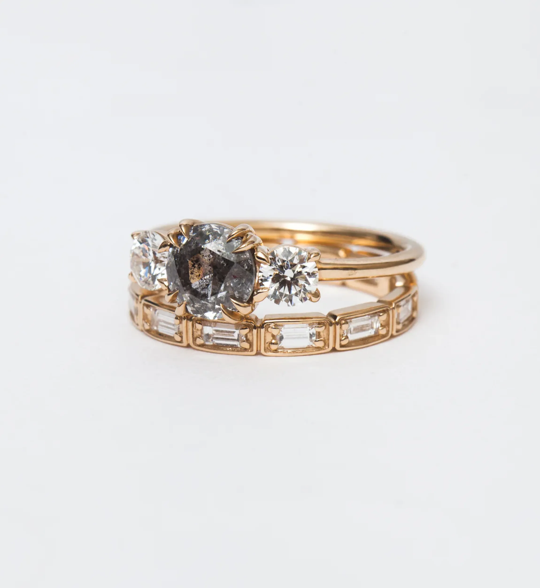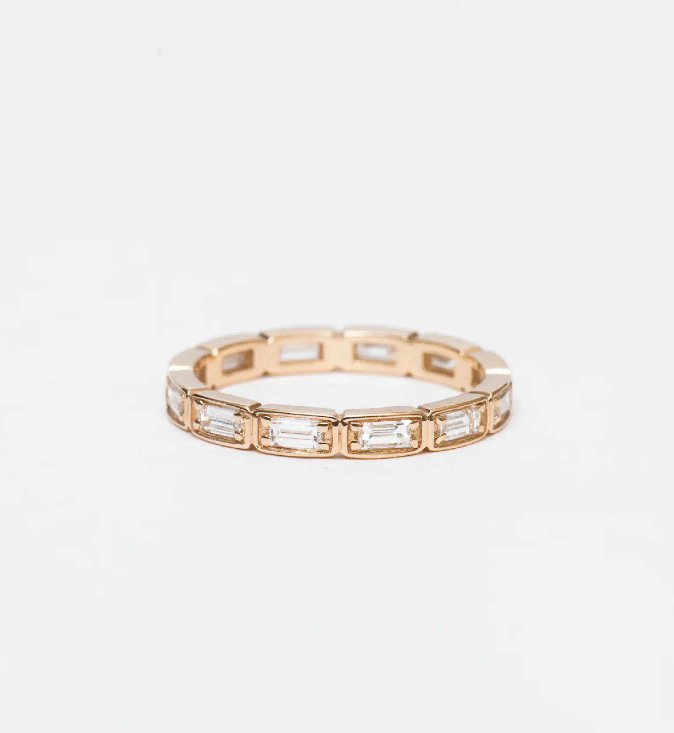 This absolutely stunning wedding band takes a favorite eternity setting of Anna Sheffield’s to its most elegant extreme. White diamond baguettes encircle the finger in delicate bead-set box settings, outlining their sleek step-cut faceting with gleaming lines. We think of this ring as the ultimate way to say “I do”. Designed in New York.