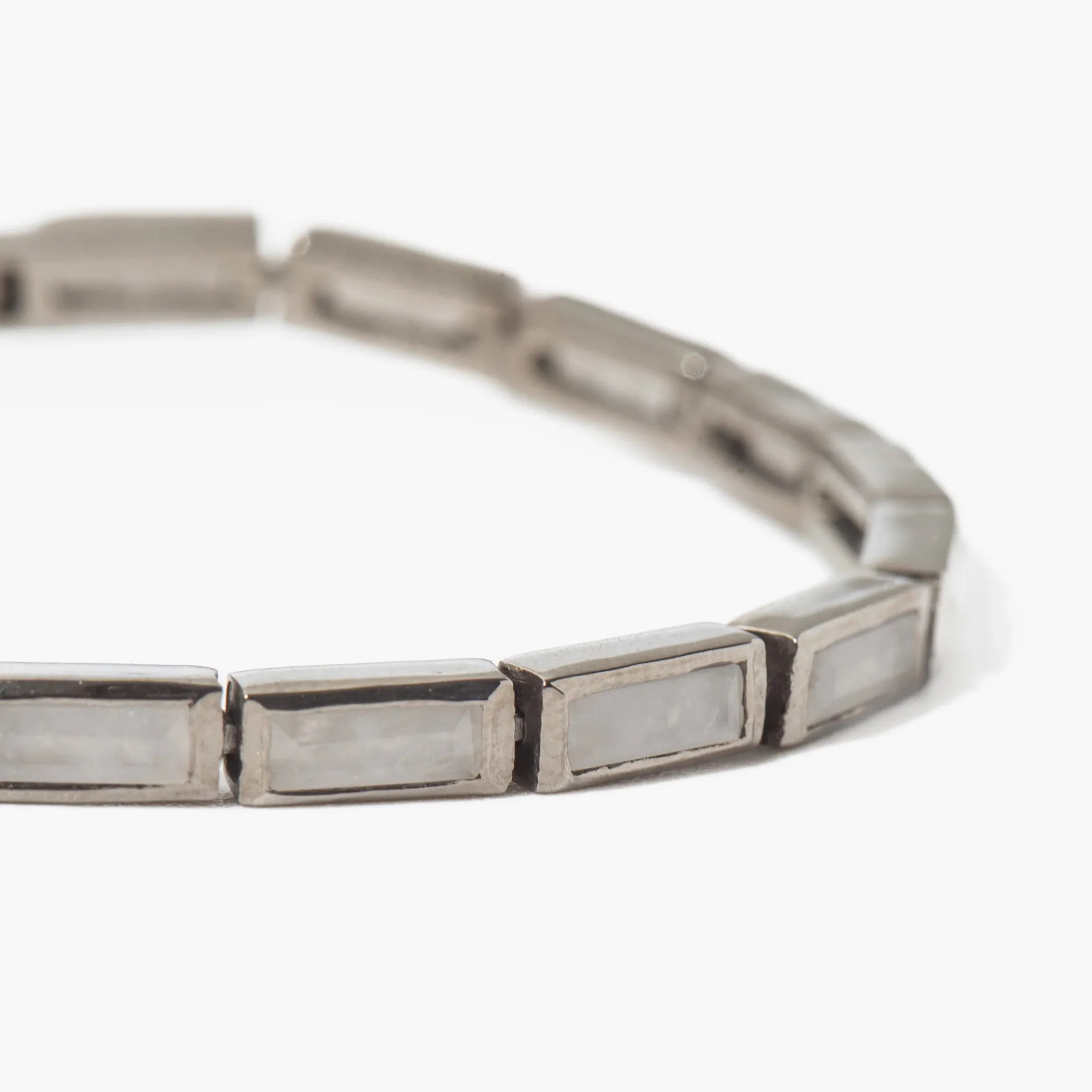 Escape the ordinary with this modern and daring white agate tennis bracelet. Nak Armstrong’s affinity for intricate metalworking and alternative design make this the perfect bracelet to inspire bold style. Stand out from the crowd and make a statement with this one-of-a-kind piece. Designed in Austin, Texas.