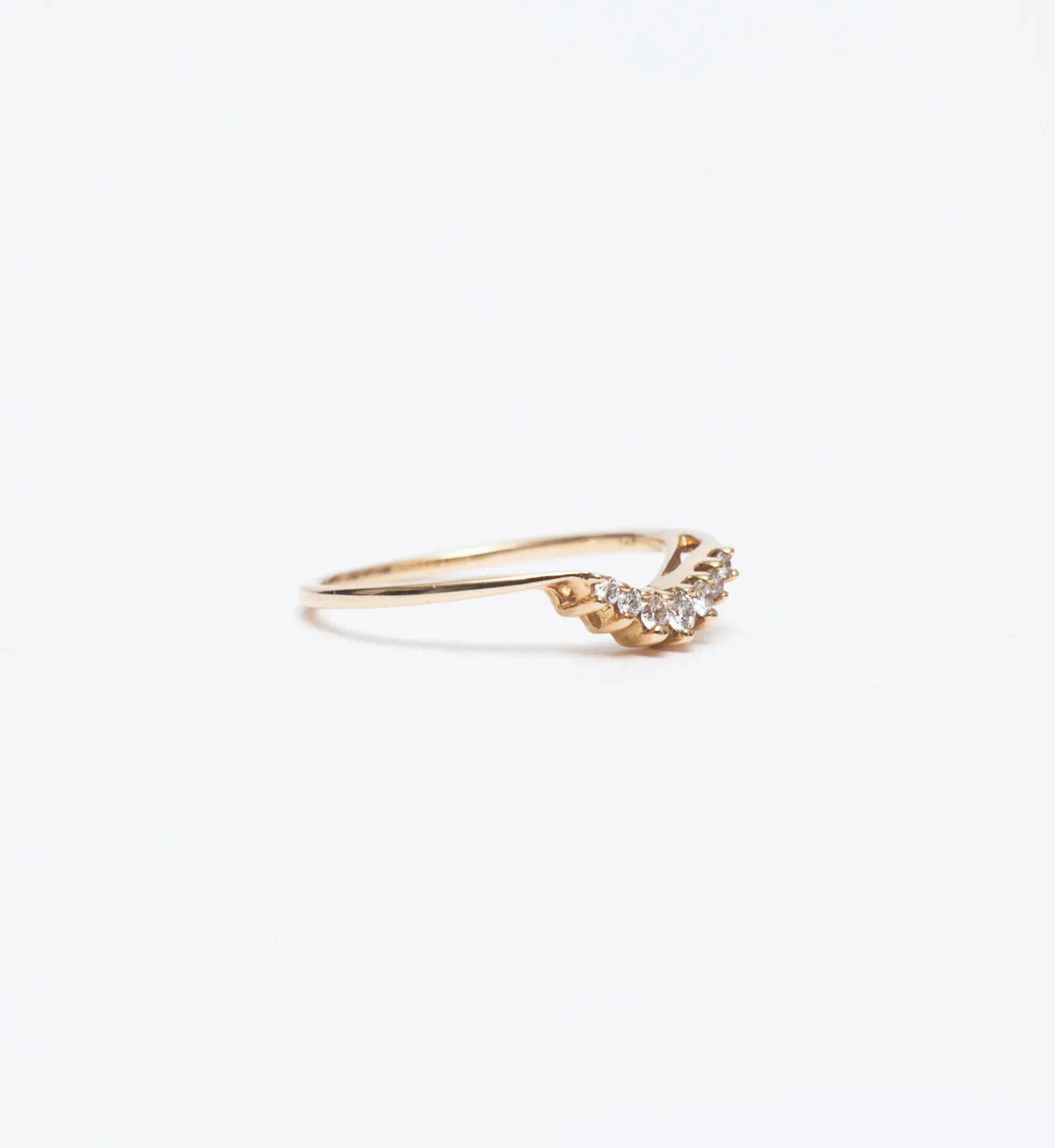 Not too small, not too large; this restrained diamond band feels just right with seven prong-set gems that nestle against the side of your beloved engagement ring. Shown here in classic yellow gold with white diamonds, this distinctive Anna Sheffield silhouette lends itself to customizations in other color combinations, drawing out the best qualities of your ring or adding bold contrasts. Stack it with the larger, more elaborate Anna Sheffield pieces to assemble a unique suite of rings that reflect who you are. Designed in New York.