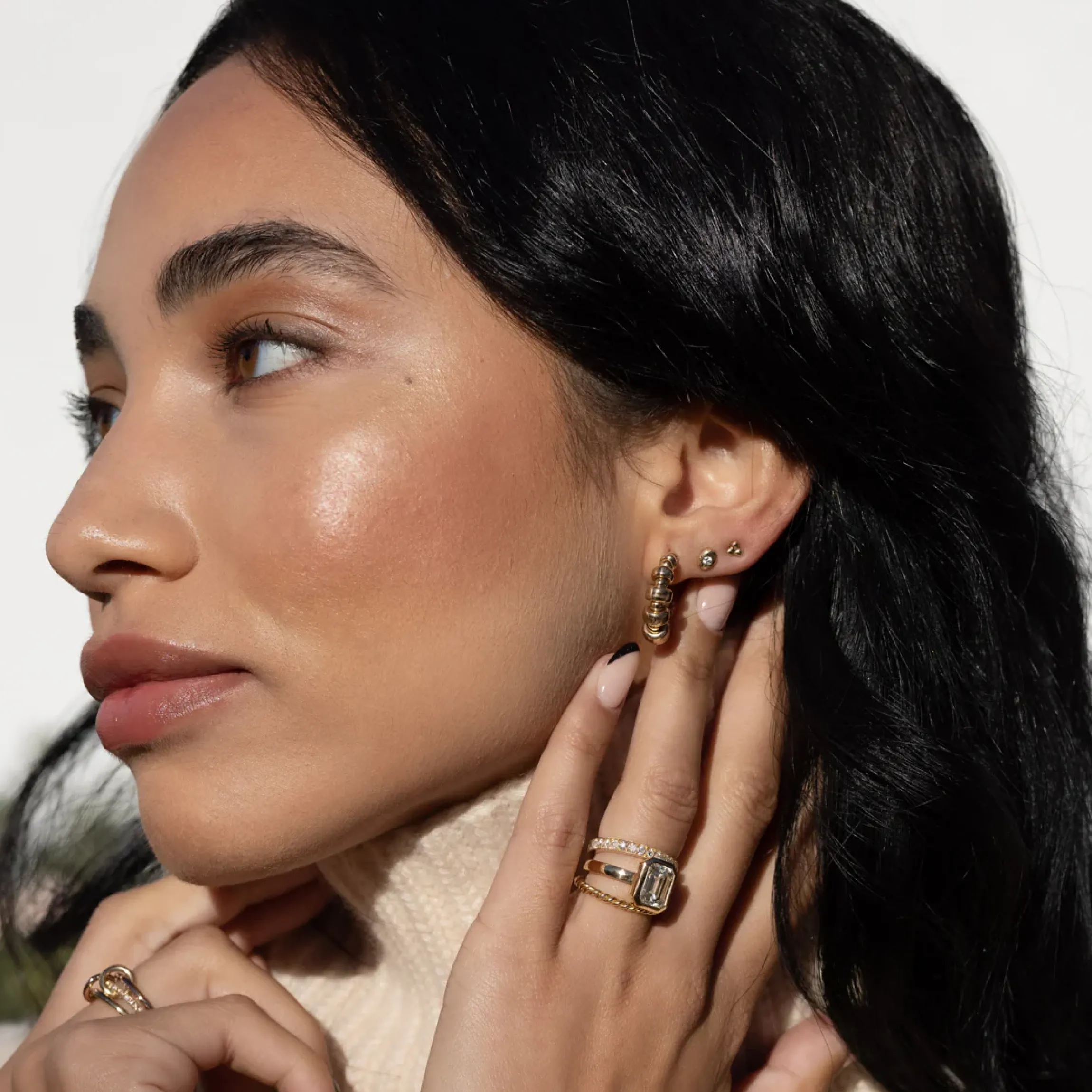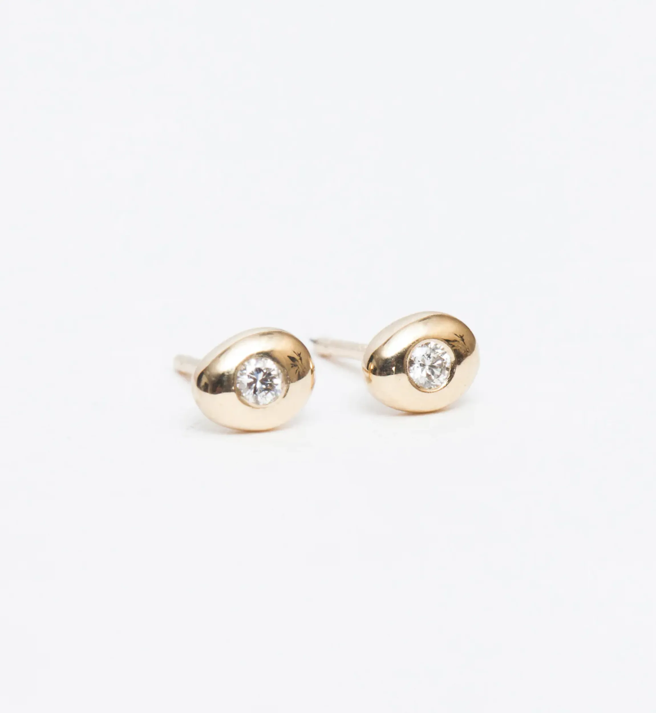 Flush-set diamonds and a softly contoured gold setting make these simple stud earrings a must-have for everyday dressing. Their organic silhouette reminds you that diamonds are one of nature’s creations, though these recycled gems owe their brilliance to the diamond cutter’s art. This clever update to an evergreen style is luxe, but light, so you never have to take them off. Made in the U.S.A.