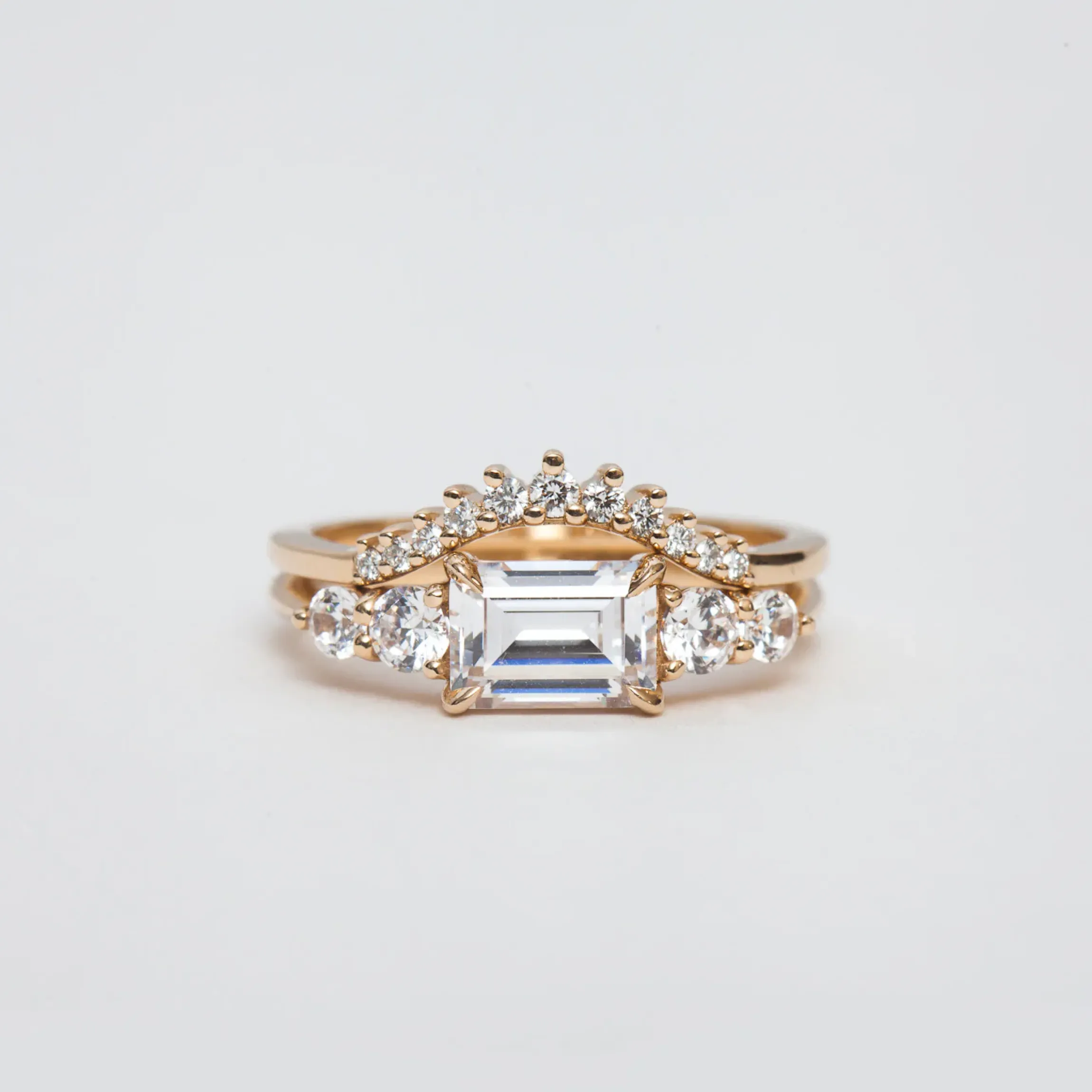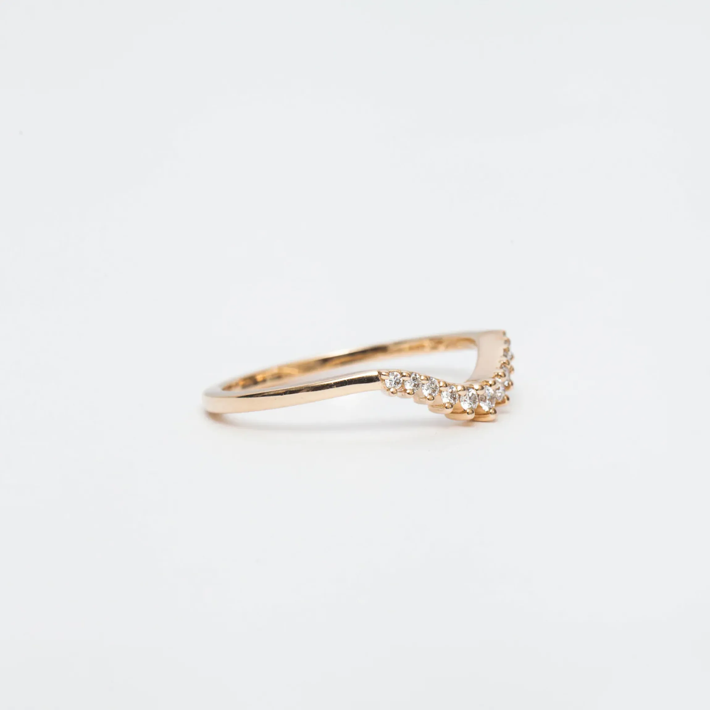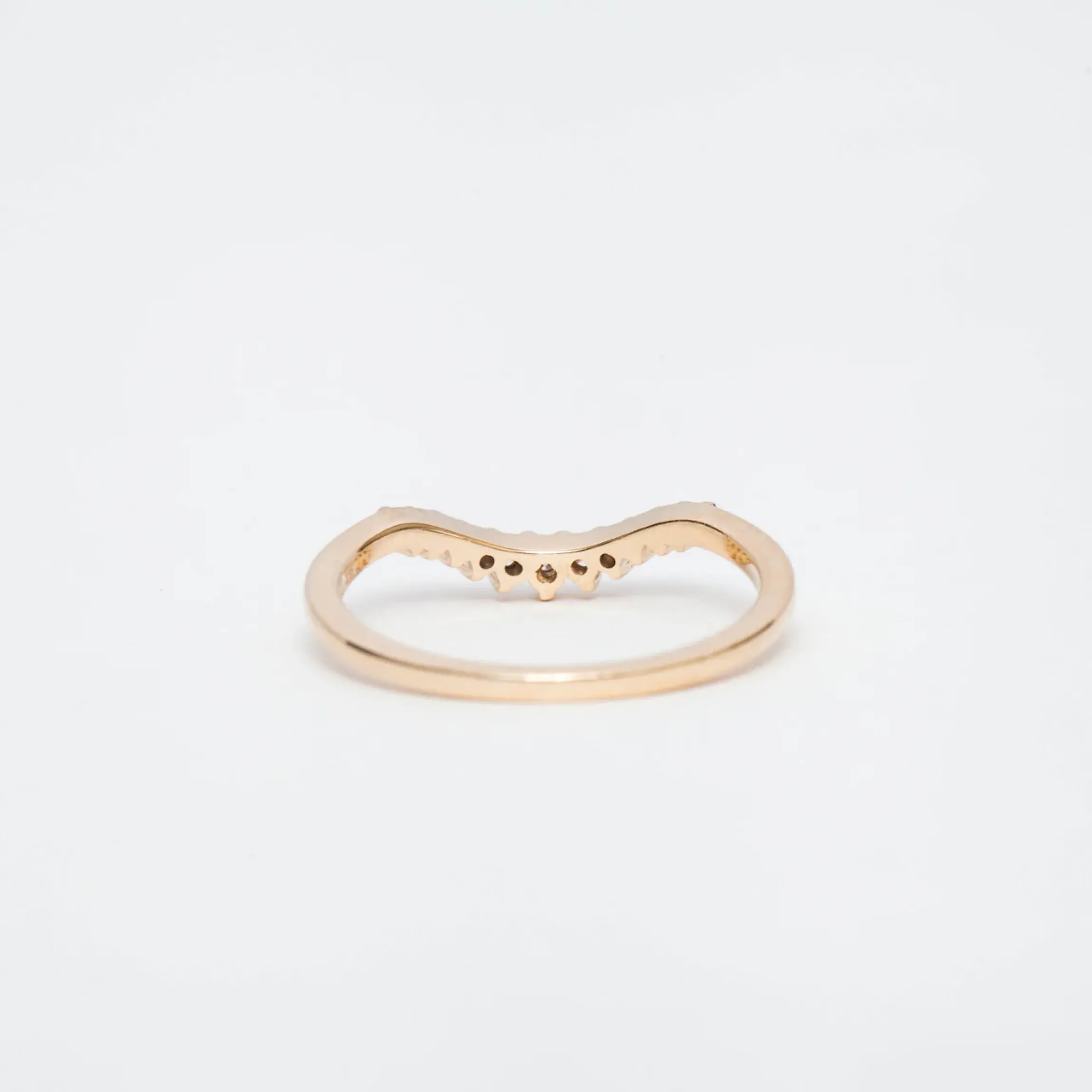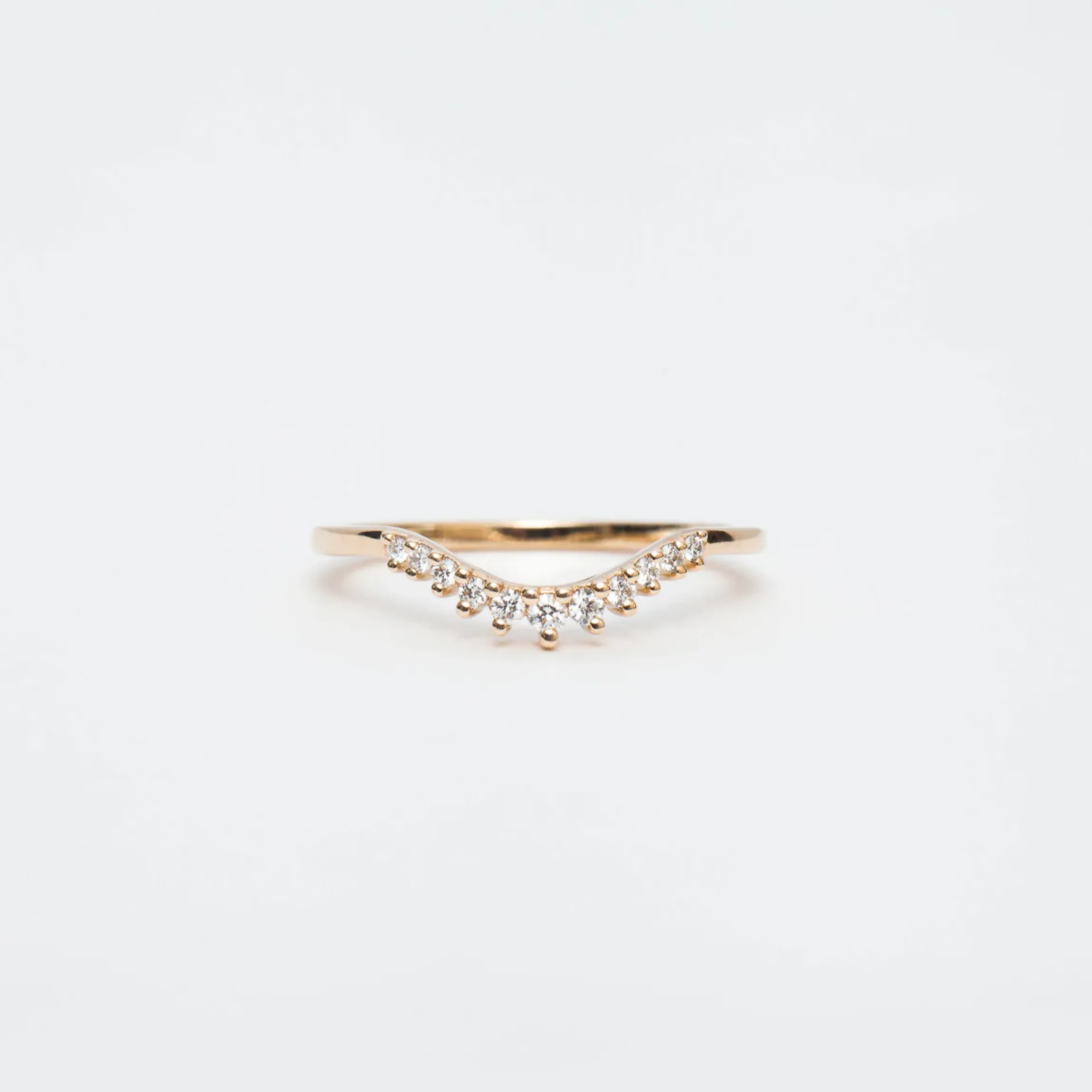 Dainty round diamonds spread across the soft curve of this stacking band for one of the softest, most romantic wedding styles around. A more delicate version of an Anna Sheffield classic, this band features an elegant, scalloped edge that brings a textured, almost lacy look to any bridal ring set. Wear it as a matched pair for a particularly feminine flair to even the simplest solitaire. Designed in New York.