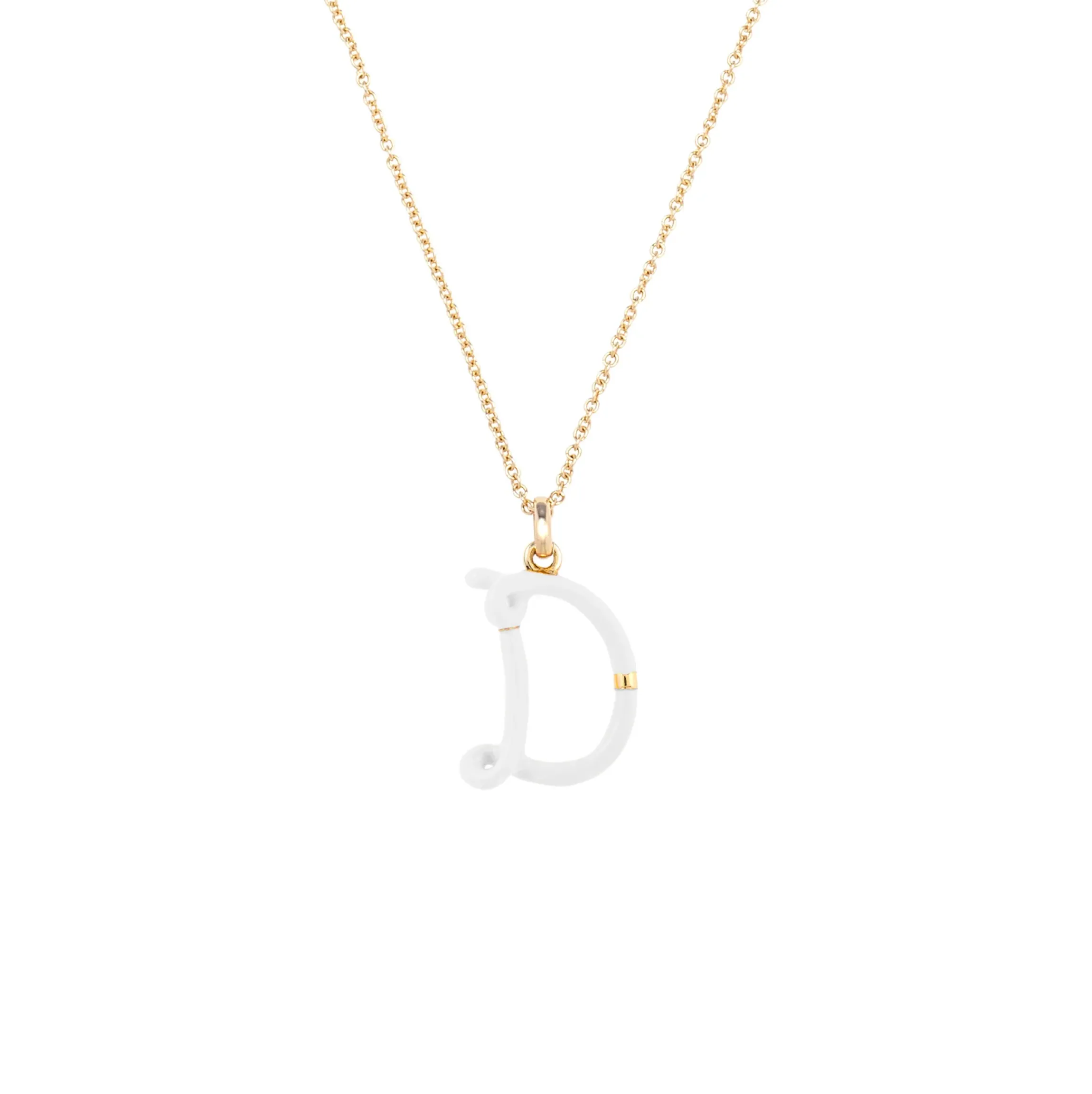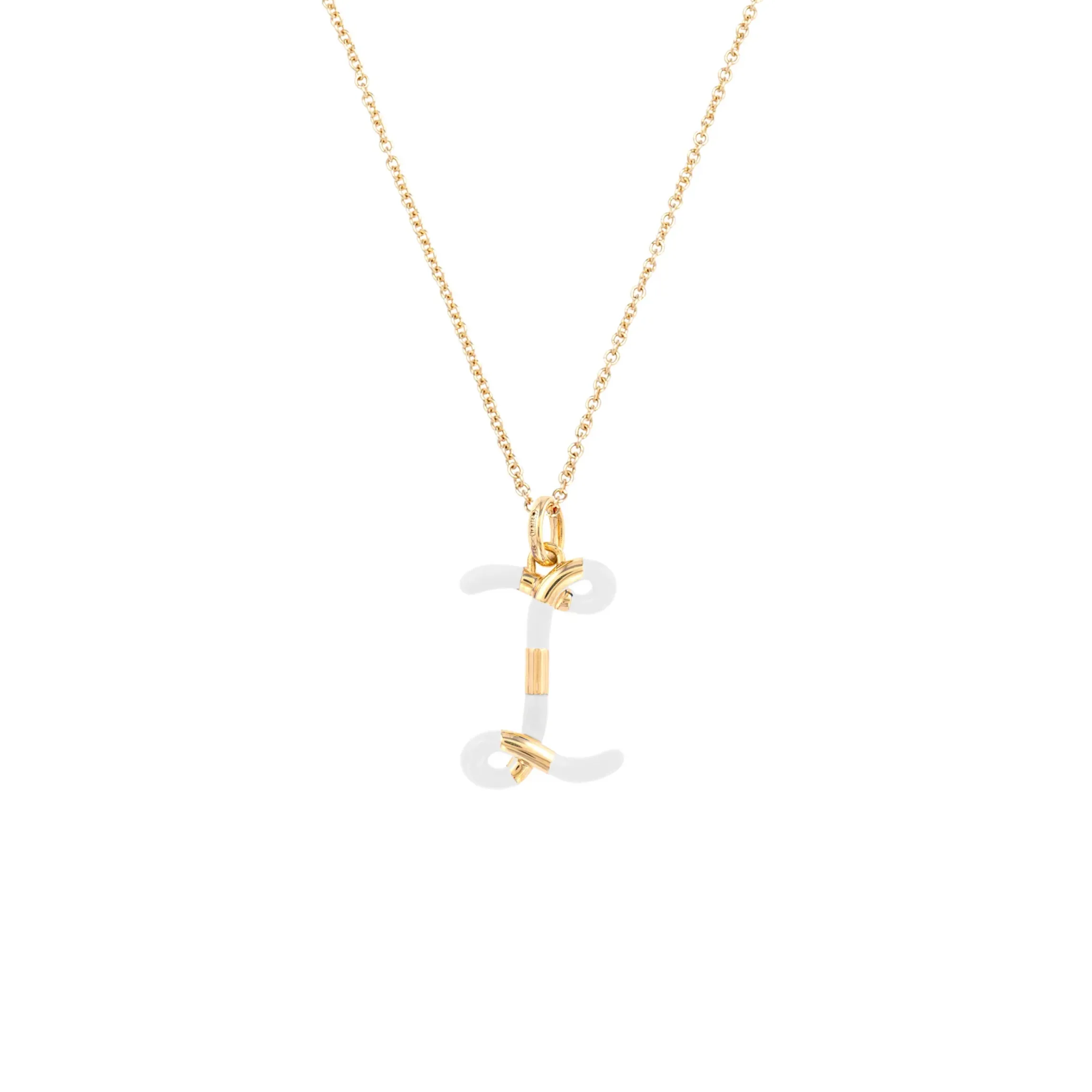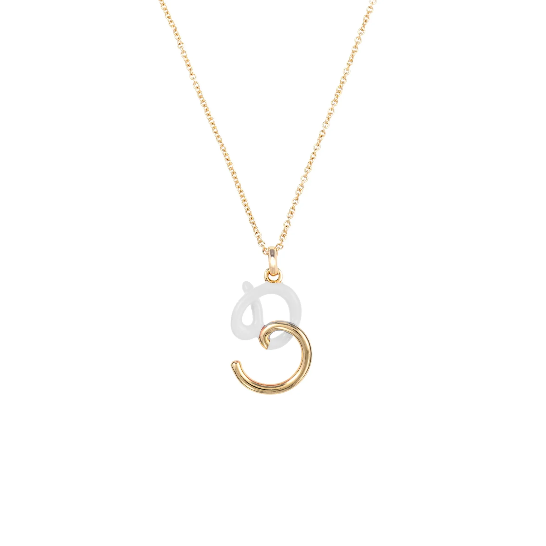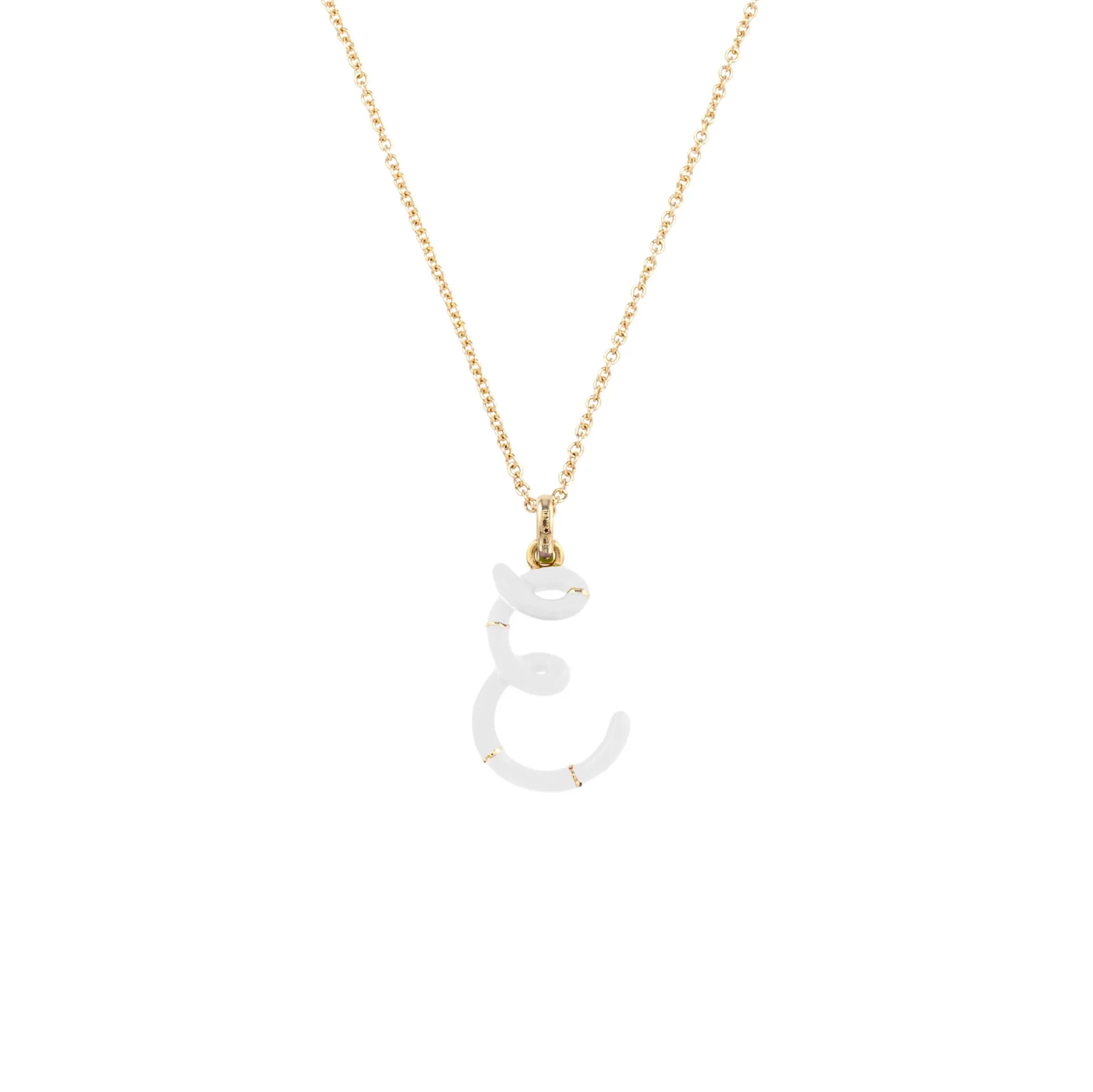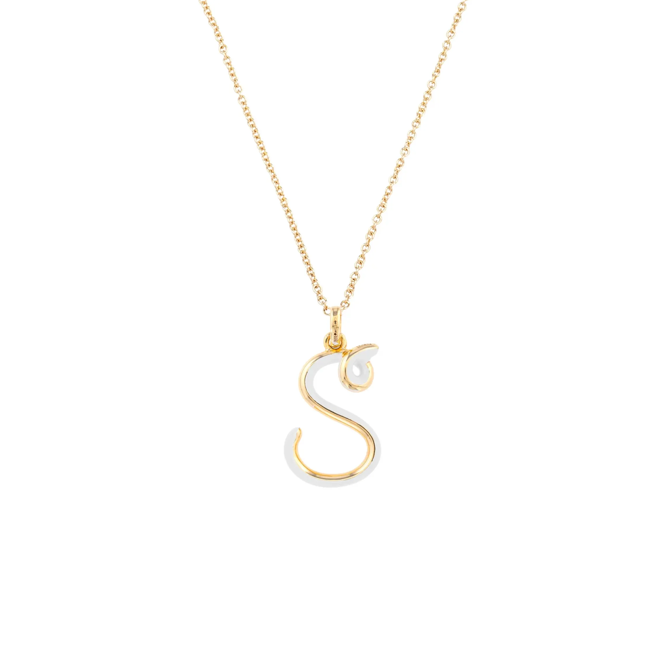 Add a dash of whimsy to your necklace collection with Bea Bongiasca’s gold and enamel initial pendant. A golden loop forms into an S shape with highlights of white enamel embodying the designer’s one-of-a-kind flair. Its lively motion and striking aesthetic make it a true masterpiece of wearable art. Made in Italy.
