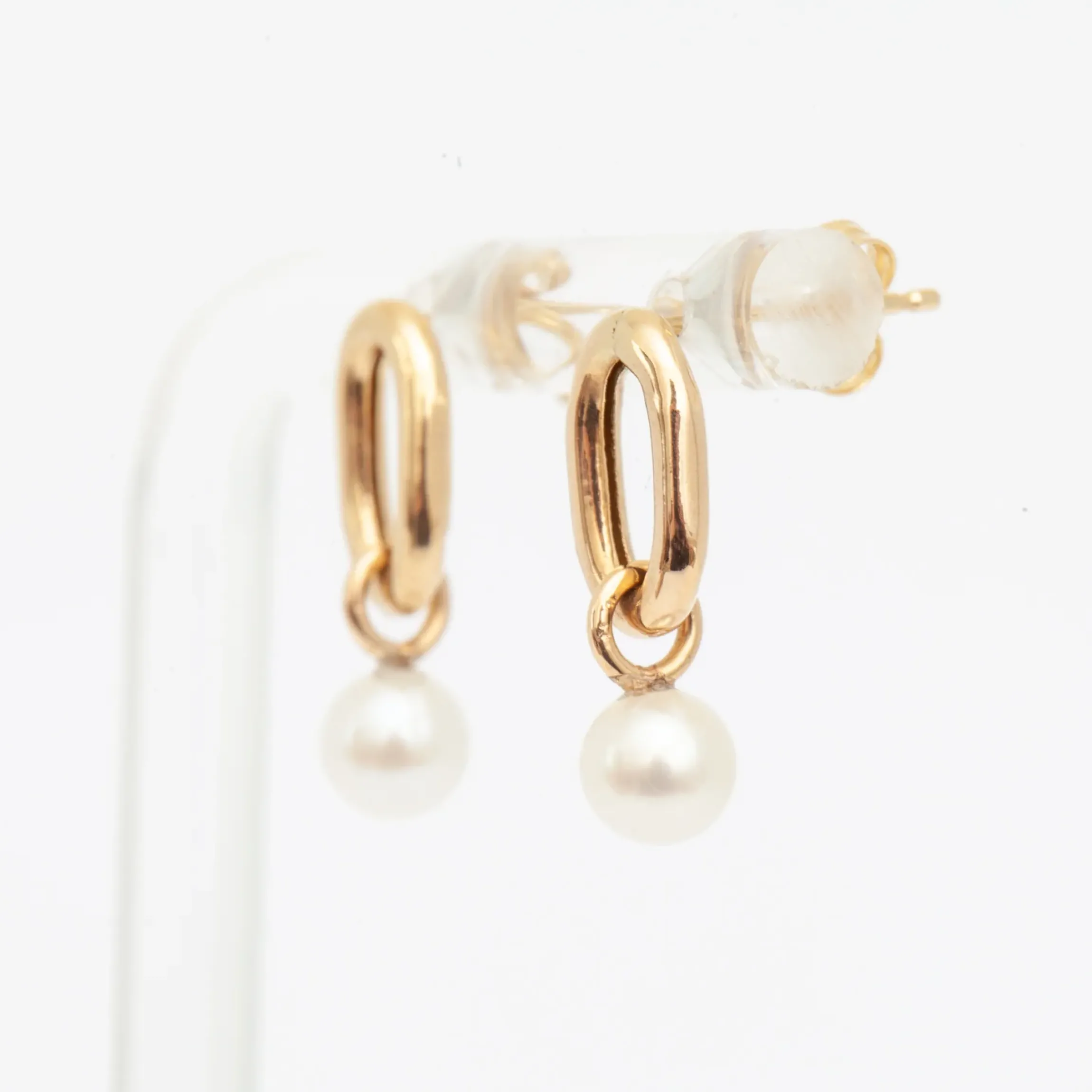 These XXL Link u0026amp; Dangling Pearl Earrings are a must-have for any modern fashionista. Perfect for showing off with their thick gold links, these earrings’ playful pearls can take you from day to night with ease. Make a statement with the ultimate sparkle and shine! Made in the U.S.A.