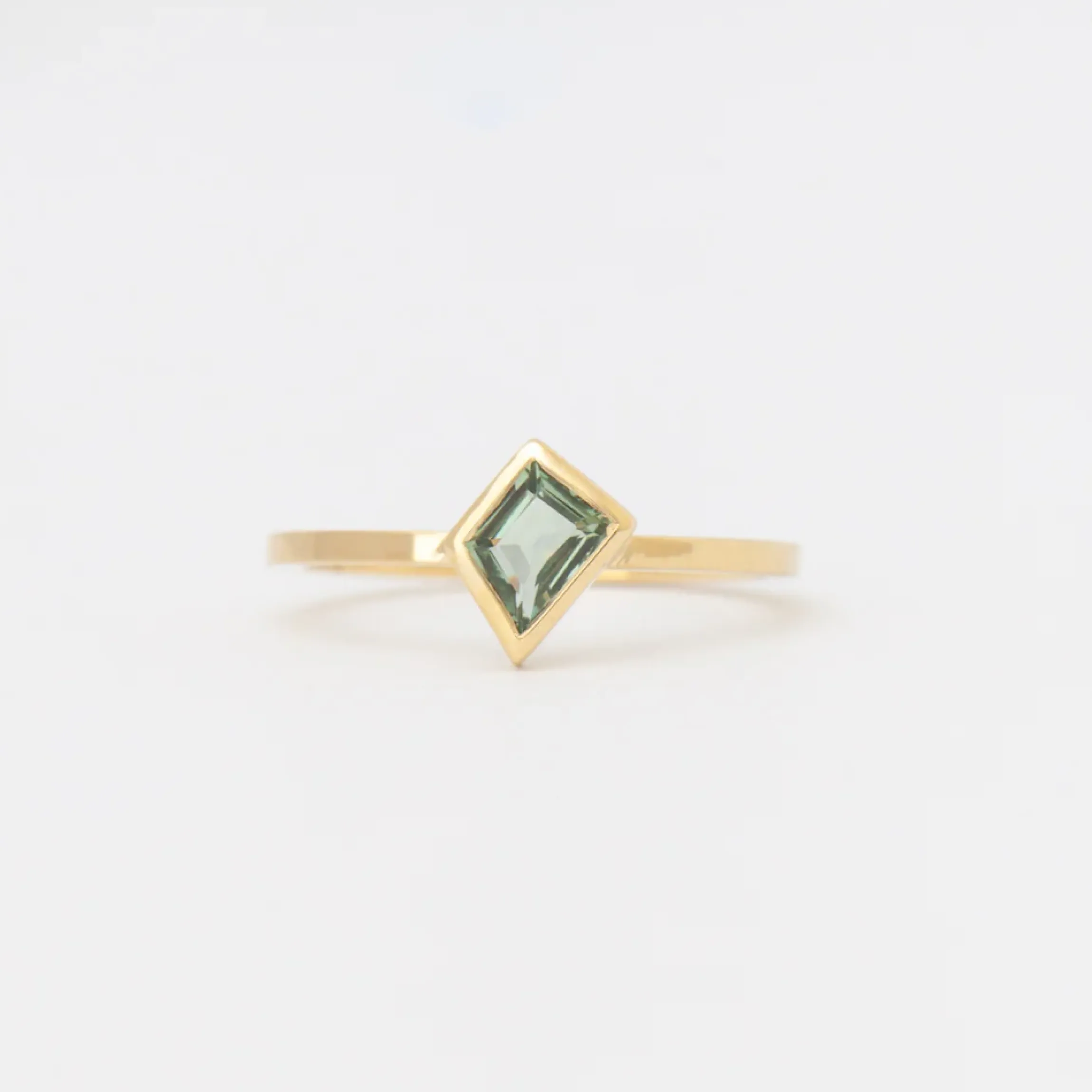 With all the spring and summer energy around the corner, you may be looking for that pop of color to spice up your wardrobe. Enter the Mosaic Stack Ring by Los Angeles-based designer Era Jewelry—each geometric-cut sapphire center is one-of-a-kind, selected for their unique shapes and colors. This particular beauty features a green kite-cut sapphire encased in gleaming yellow gold.