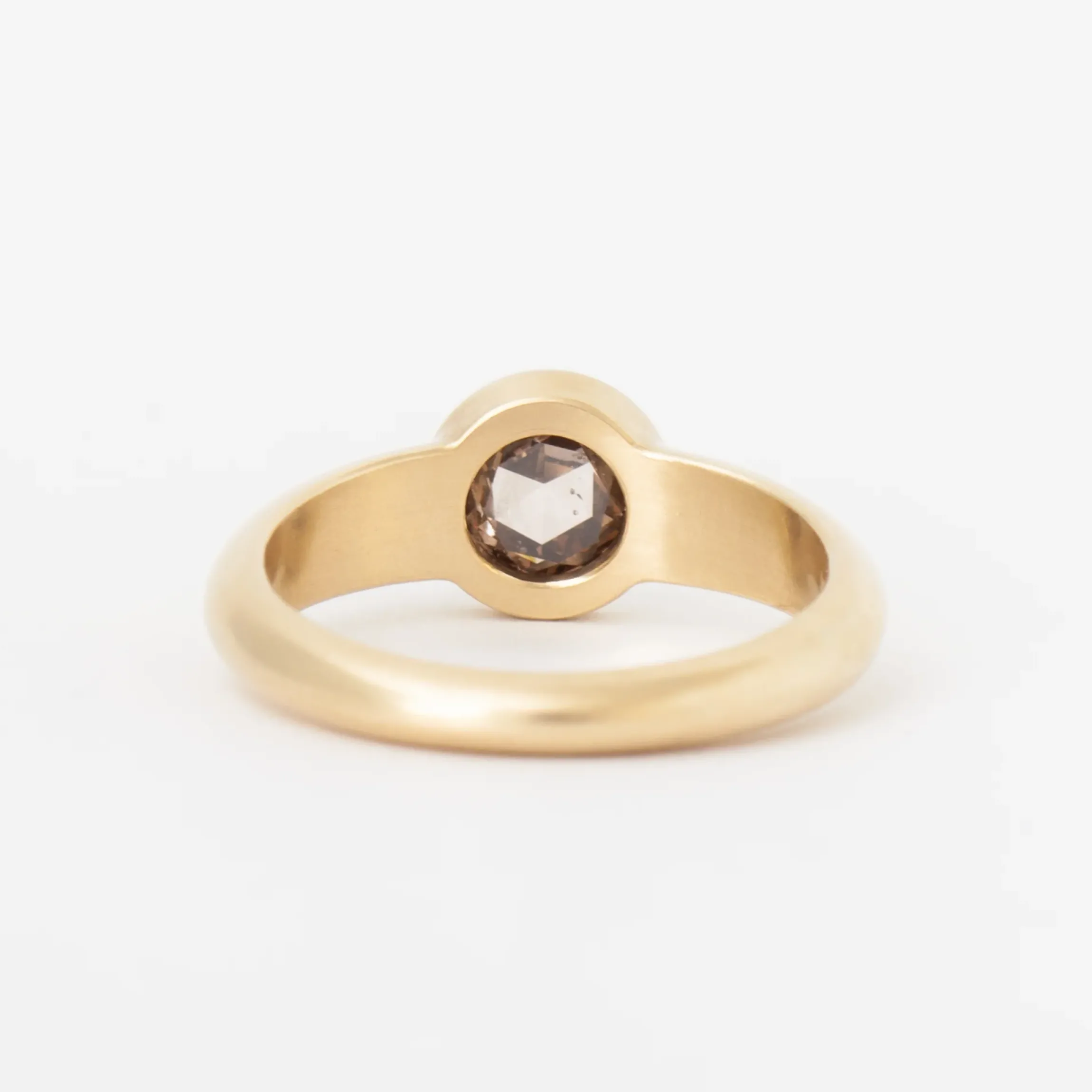 14 karat fairmined yellow gold with a reclaimed and GIA certified natural colored orange-brown rose-cut diamond totaling 1.00 carat.