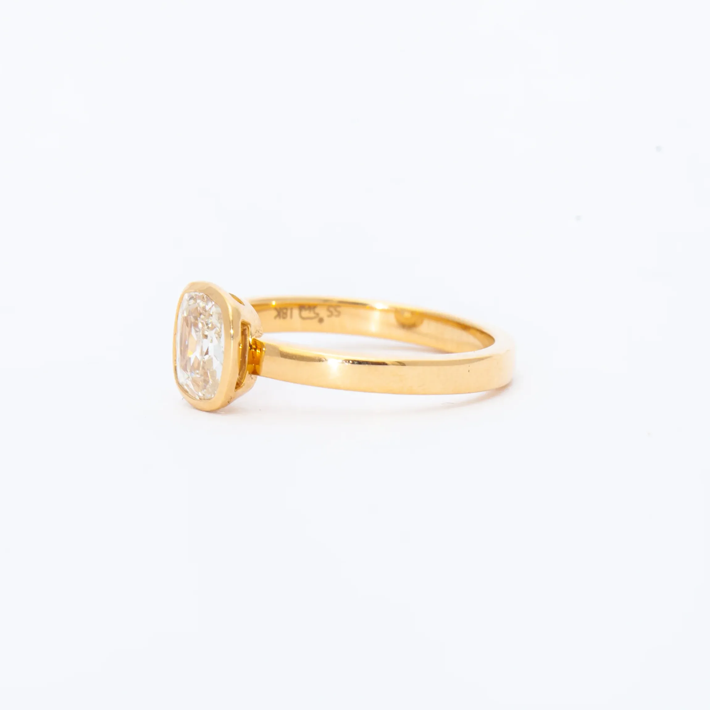 18 karat gold set with an old mine antique diamond totaling 1.02 carat.