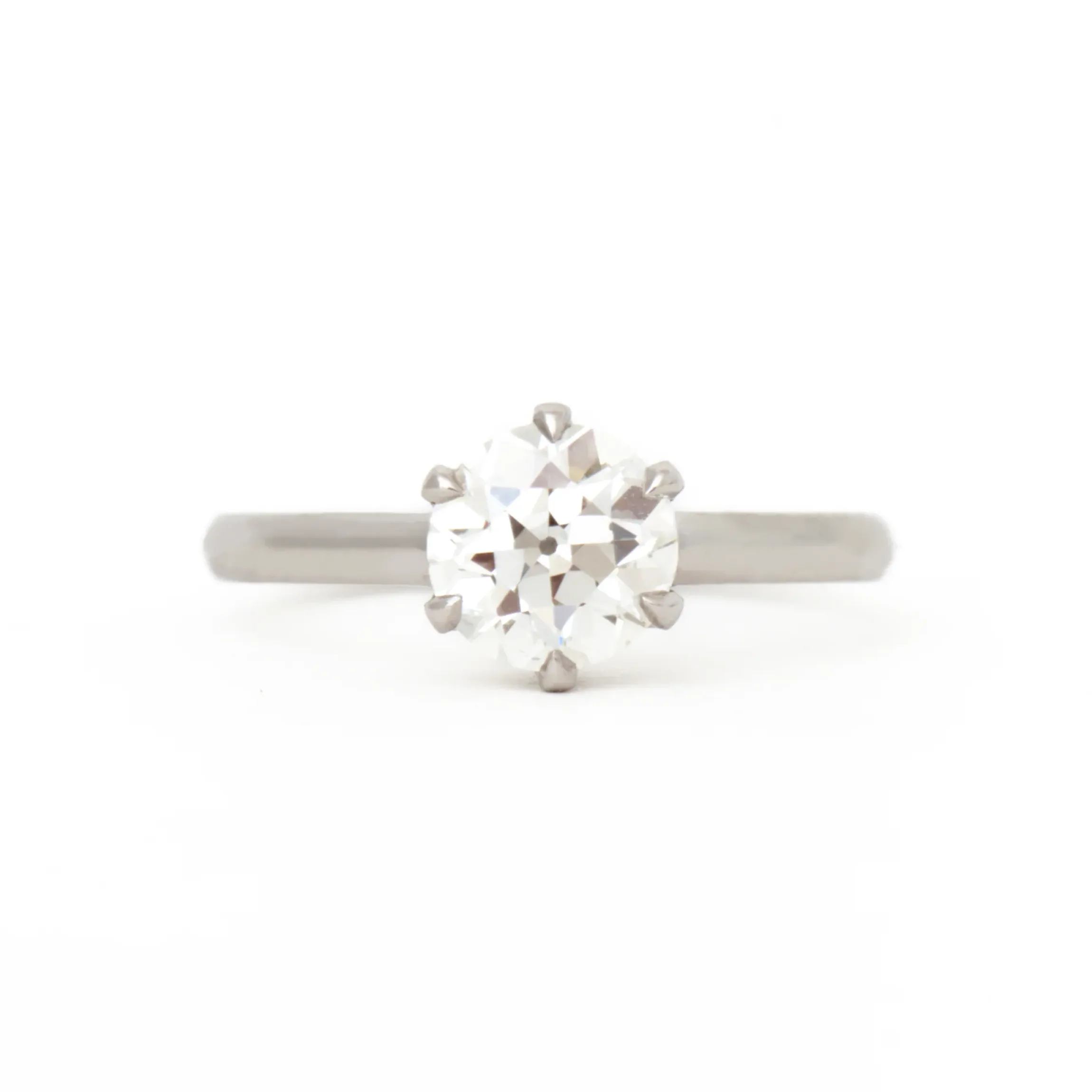 Platinum with a 1.18 carat Old European GIA certified round white diamond (K color, VS1 clarity).
