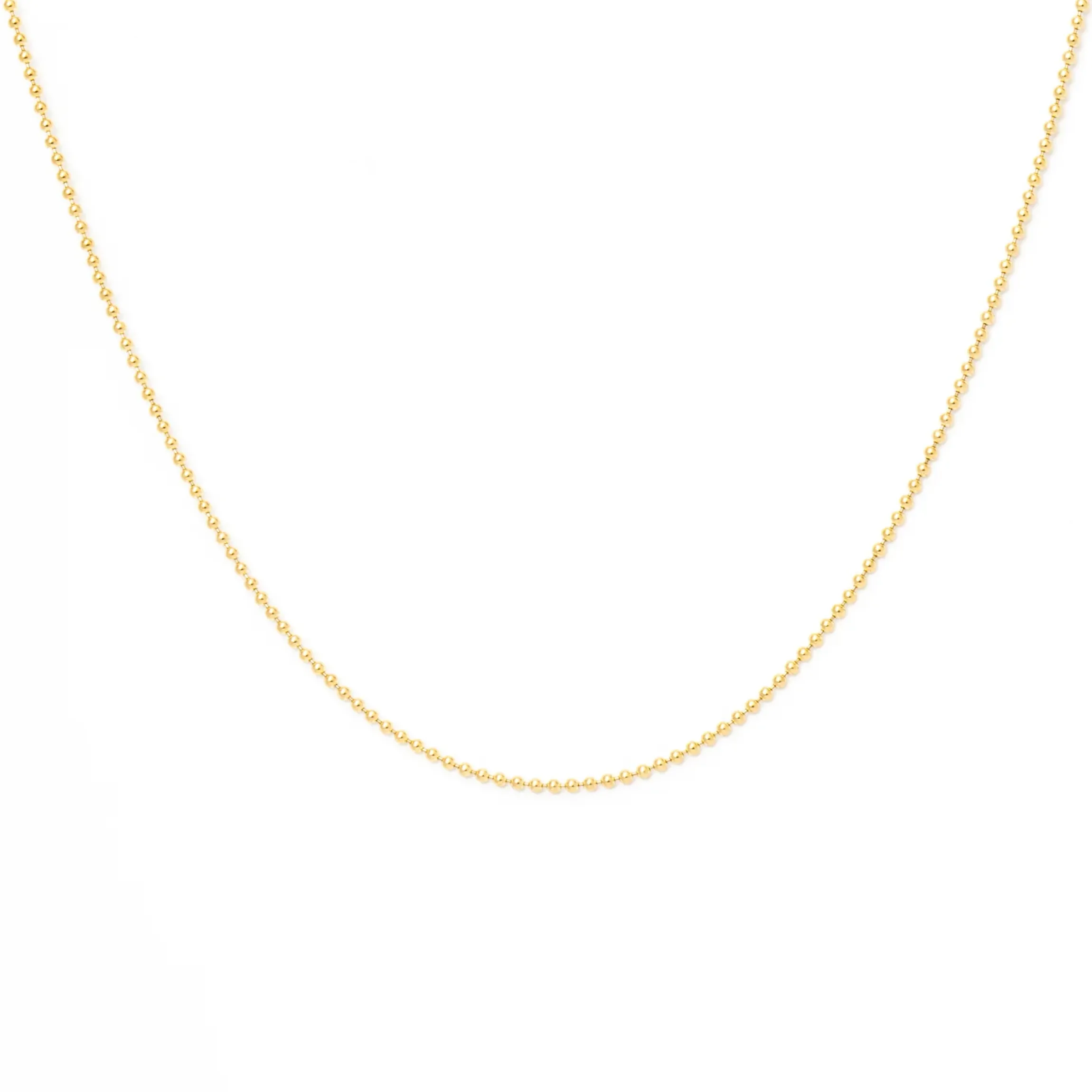 Weighty golden beads line up to form an undeniably classic chain that lays luxuriously around the neck. Pair it with a pavé pendant or gemstone-covered charm for undeniable glamour. Finished with clasp closure. Made in the U.S.A.