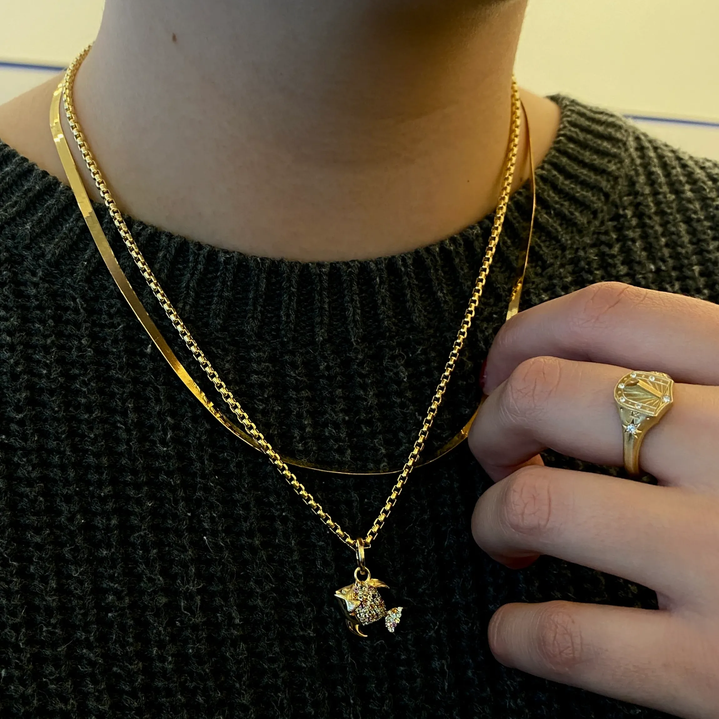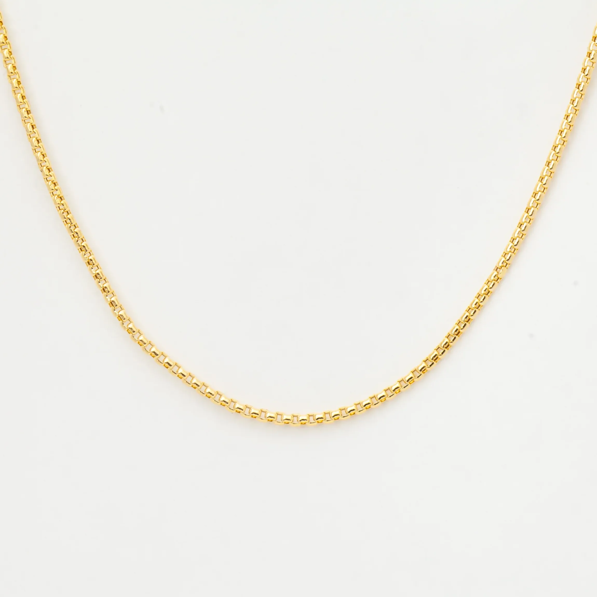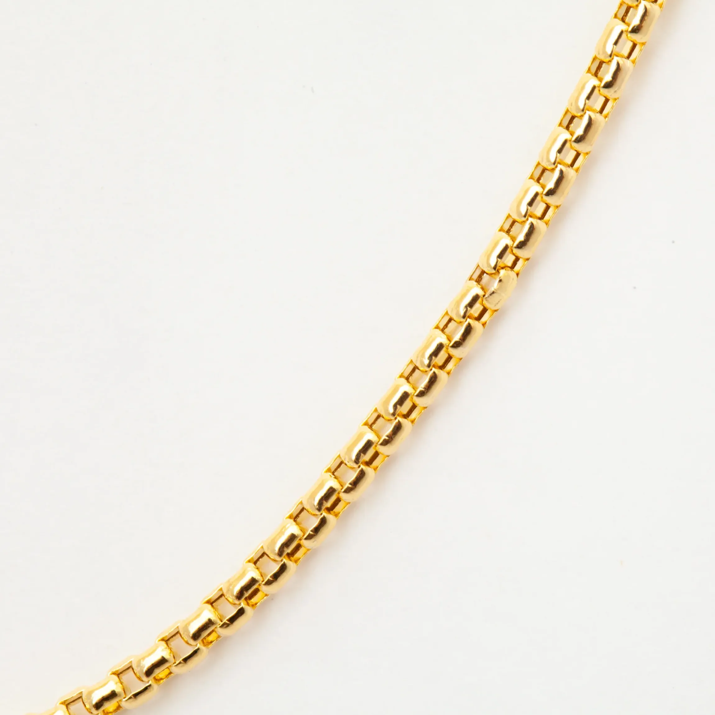 Box links, with rounded edges, line up to create a silky chain that is about to become your new favorite. Heavy in gold, this solid gold box chain is a perfectly versatile and unisex addition to any wardrobe. Wear it solo or add a charm or two. Made in the U.S.A.