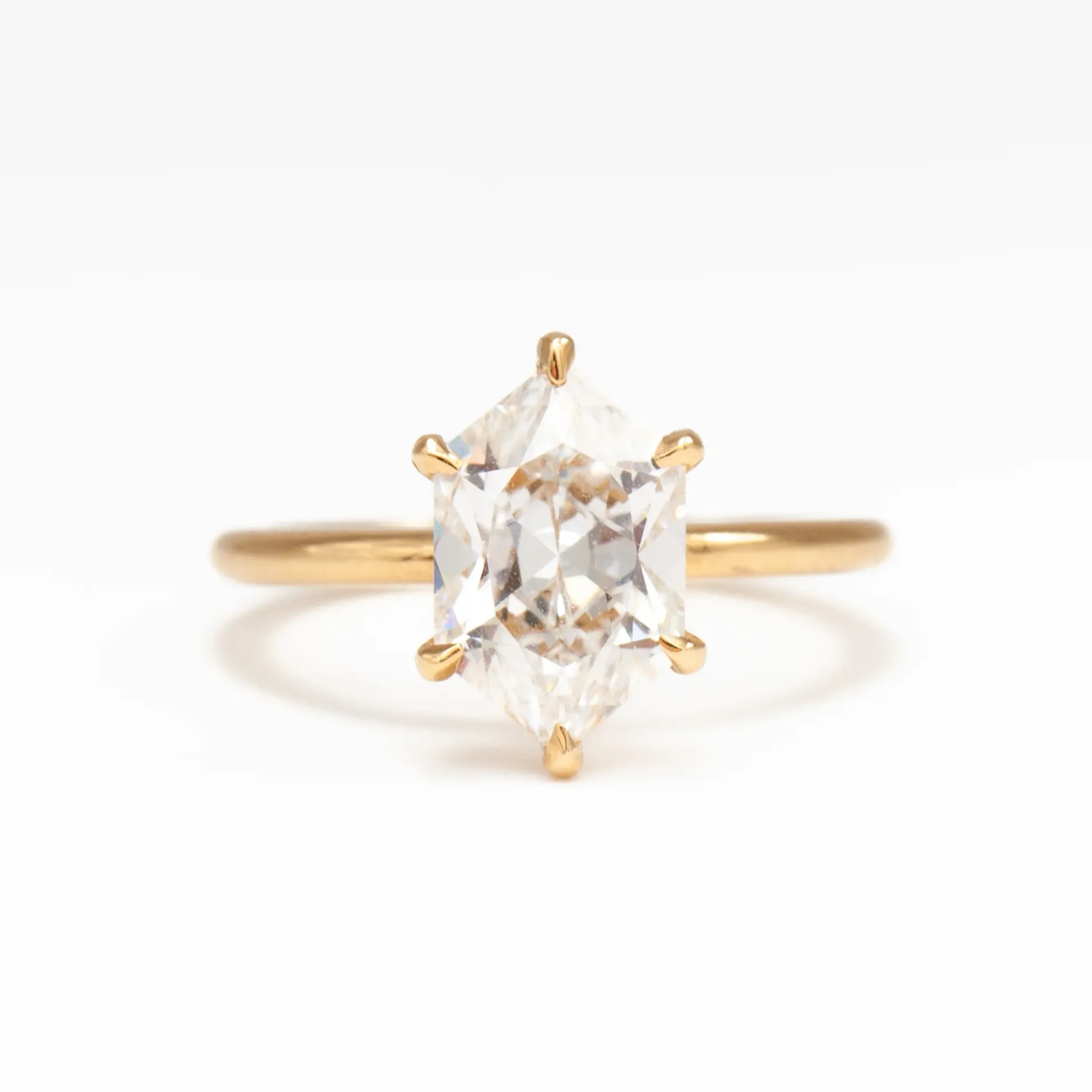 18 karat yellow gold set with a lab-grown hexagonal brilliant IGI certified diamond (E/VVS2) totaling 2.54 carat.