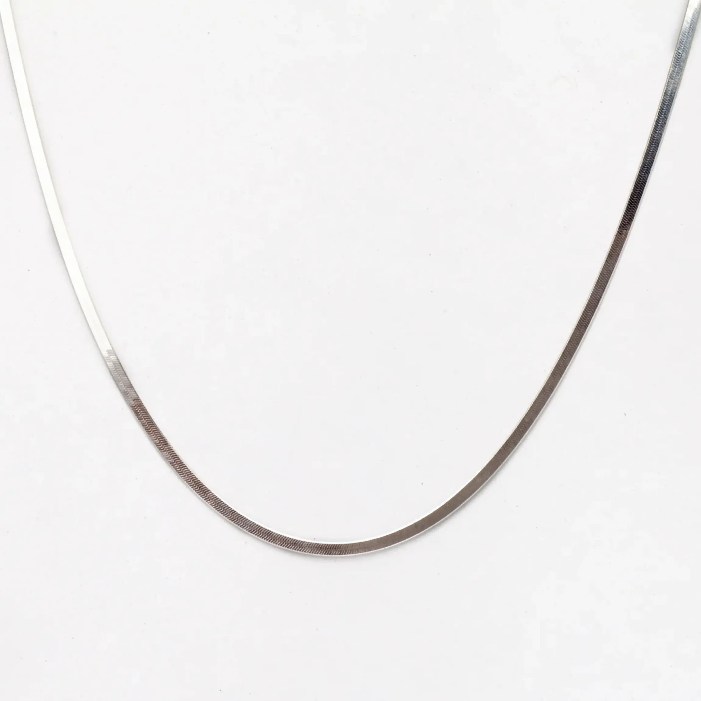 Like it’s golden counterpart, the woven sheen of this herringbone chain pours across your skin like a silvery string of light. The nearly seamless chain adds a gleaming, structured look to any outfit, making it a perfect foil to delicate chains and pendants of your choice. Finished with a lobster clasp. Imported.