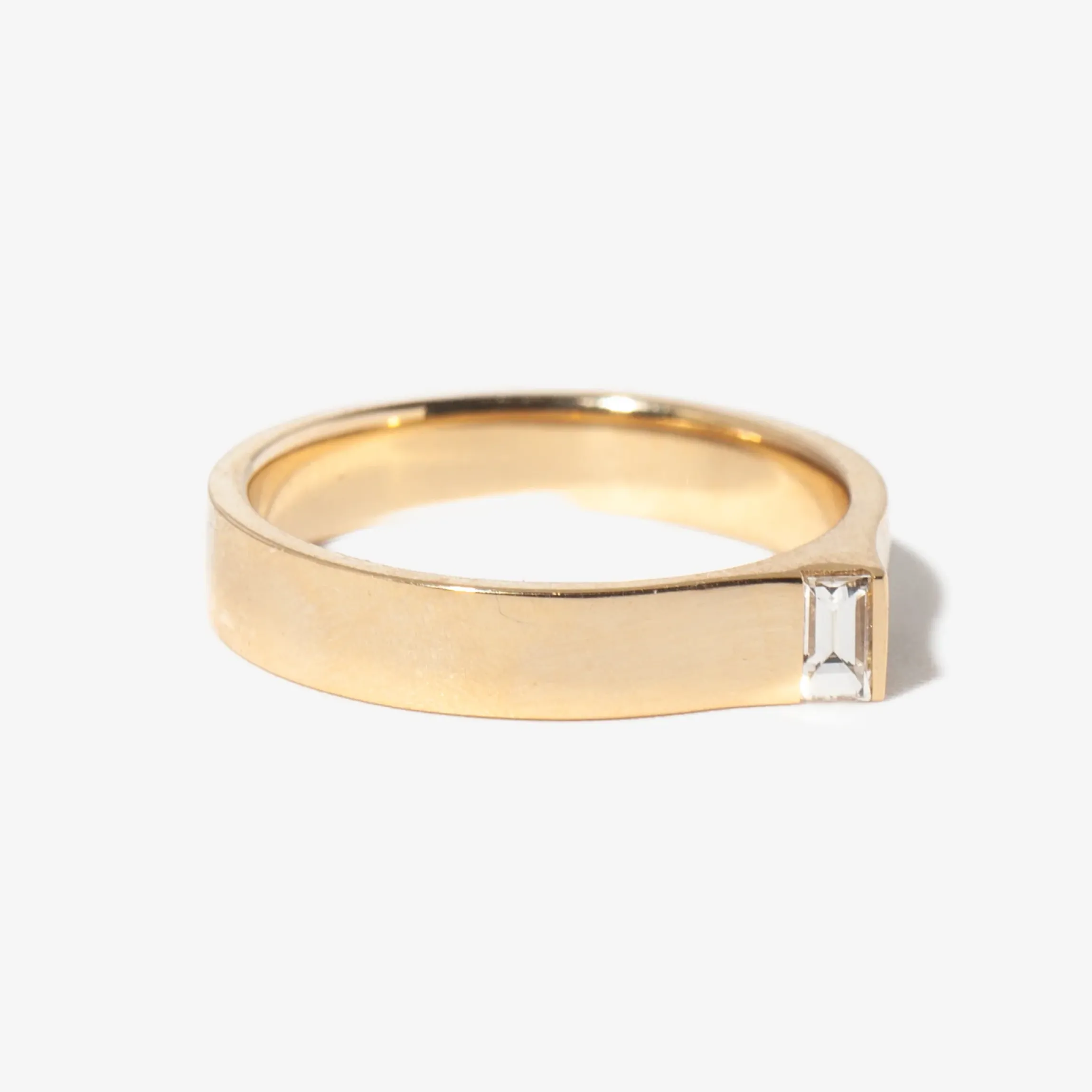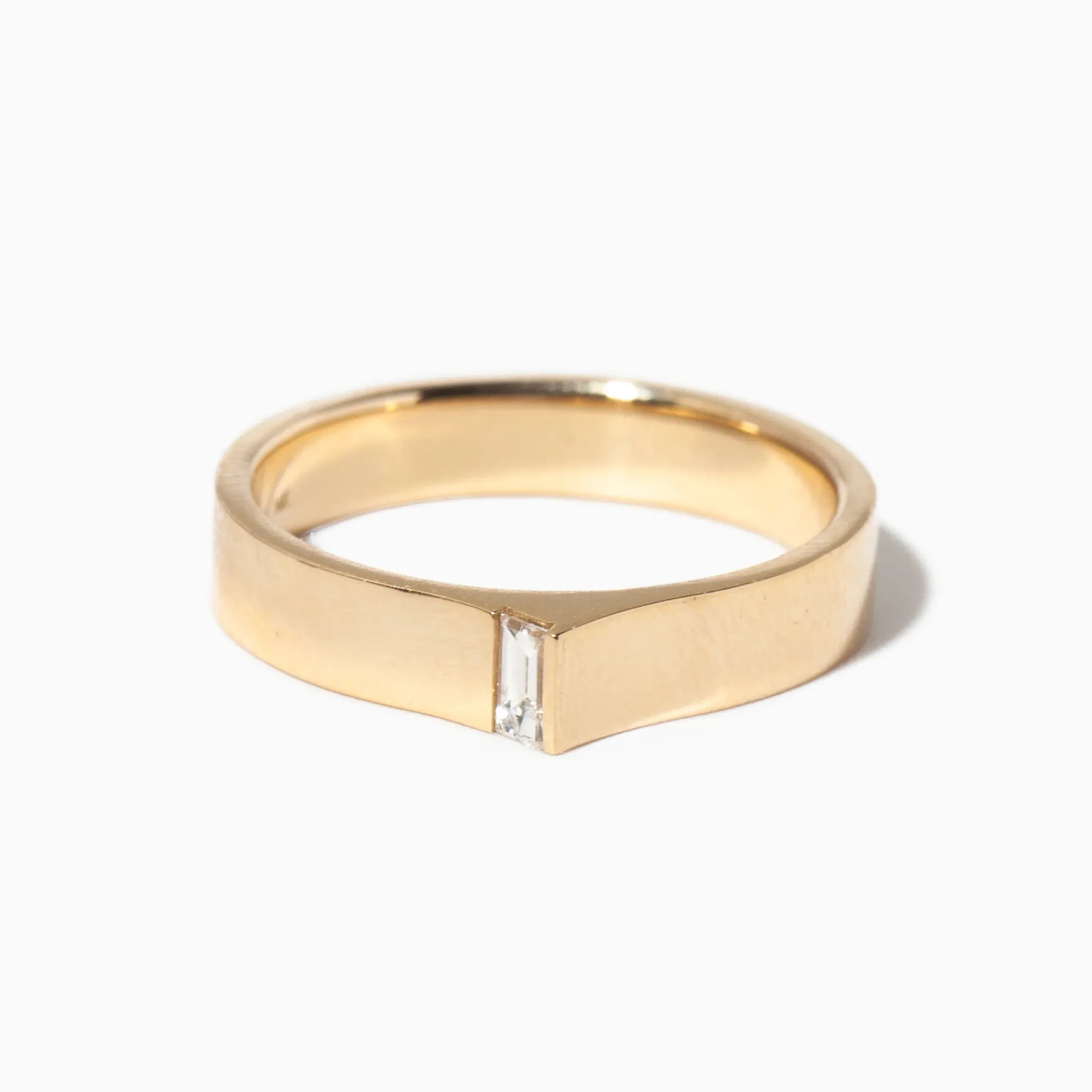 SHW embraces the unusual and honors individual style, as well as the intimate ritual of wearing jewelry. This Braga Ring breaks the mold of a typical flat band with a flush-set diamond. Intentionally designed and handmade in NYC, this ring is for a sparkle lover looking for a brand-new silhouette.