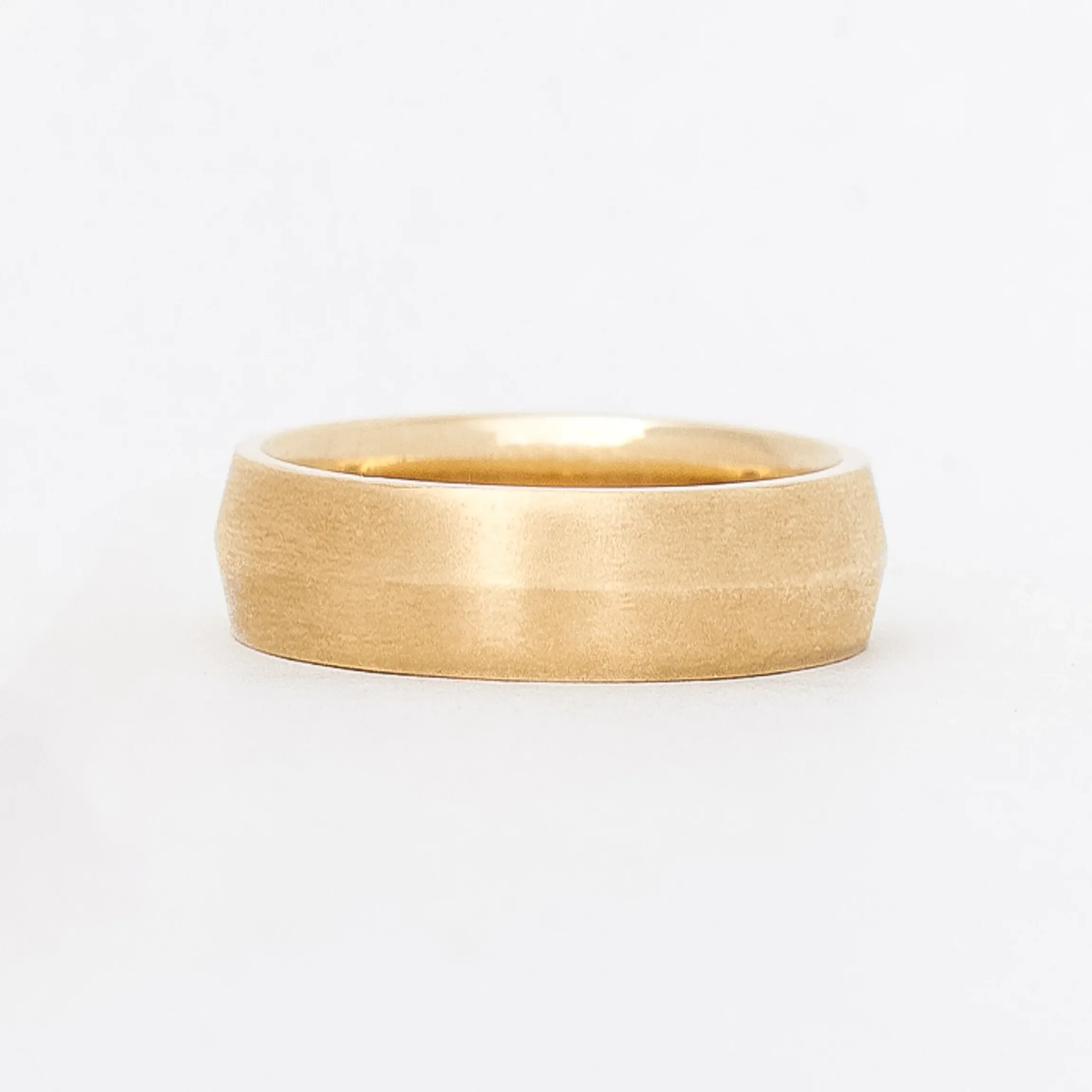Two planes meet and create a ridge at the center of the Arrow Band, adding a unique touch to this classic style. The comfort-fit design has smooth, rounded edges, making it a great option for those who want a comfortable everyday piece. Plus, the matte finish adds a textured touch for those looking for something a bit less shiny. Made in the U.S.A.