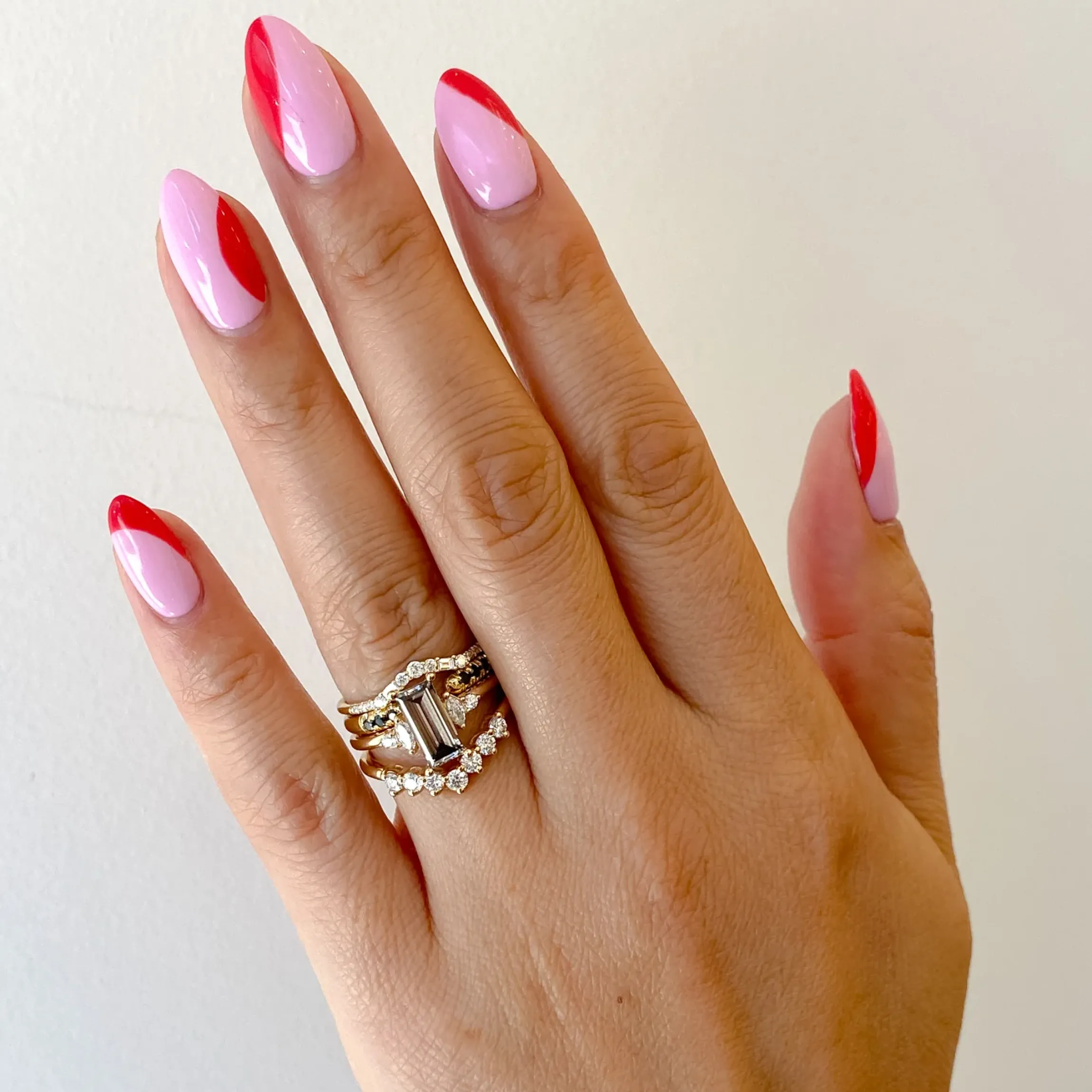 Jennie Kwon’s equilibrium cuff ring gets a size upgrade and now boasts six black diamonds! And while it’s certainly bigger, it’s never bulky. We love how the open design pairs beautifully with rings of all shapes and sizes, letting you add a little extra sparkle anywhere you’d like. For a more minimal look, wear it alone to make its distinctive form even more special. Made in the U.S.A.