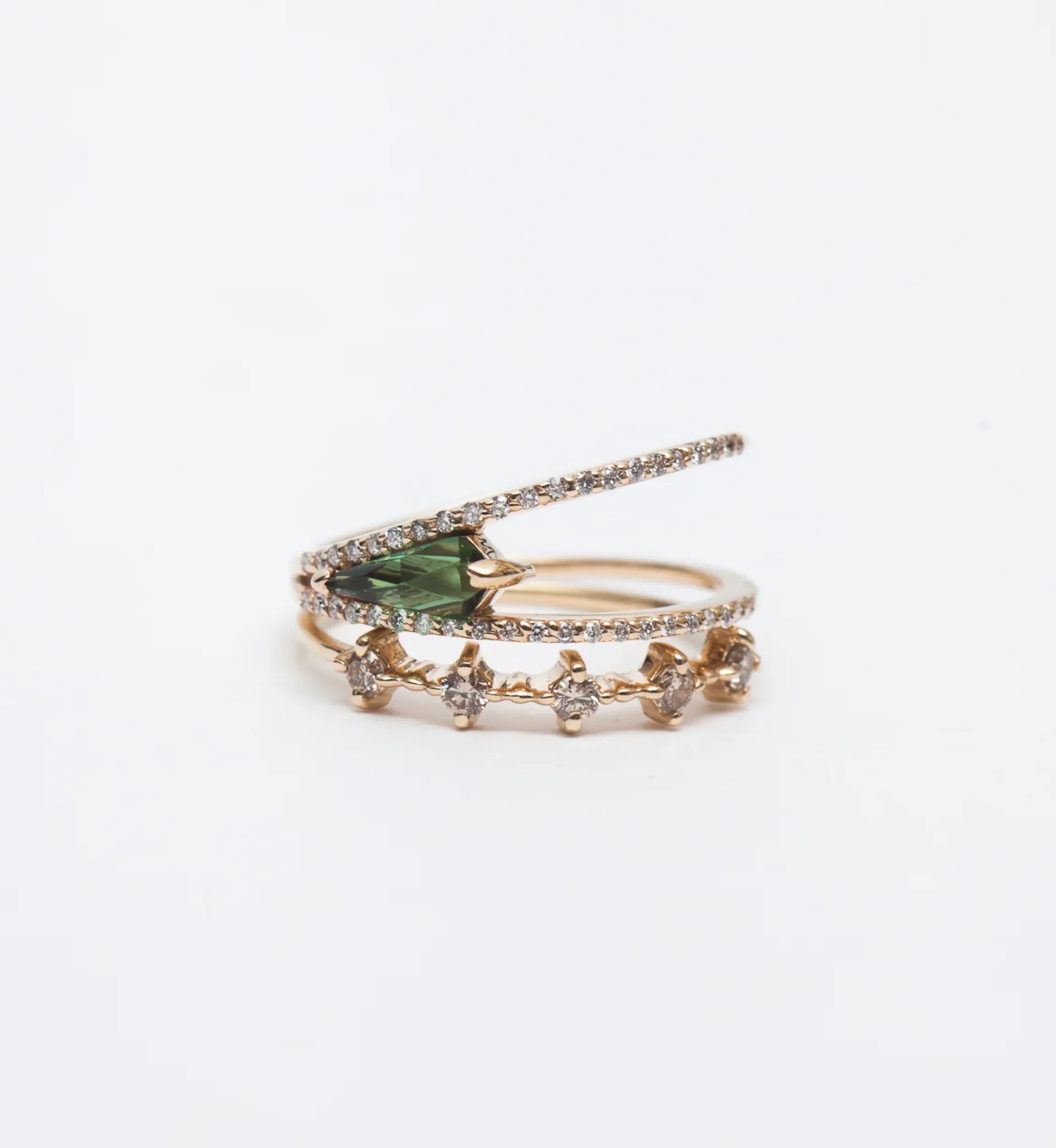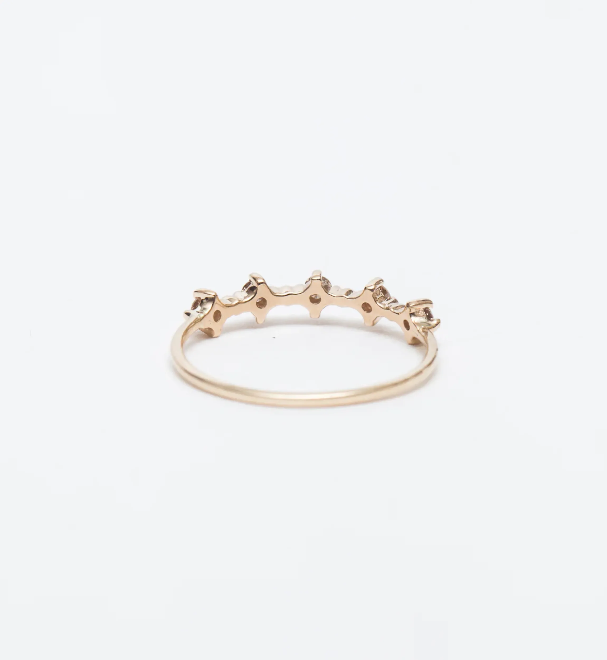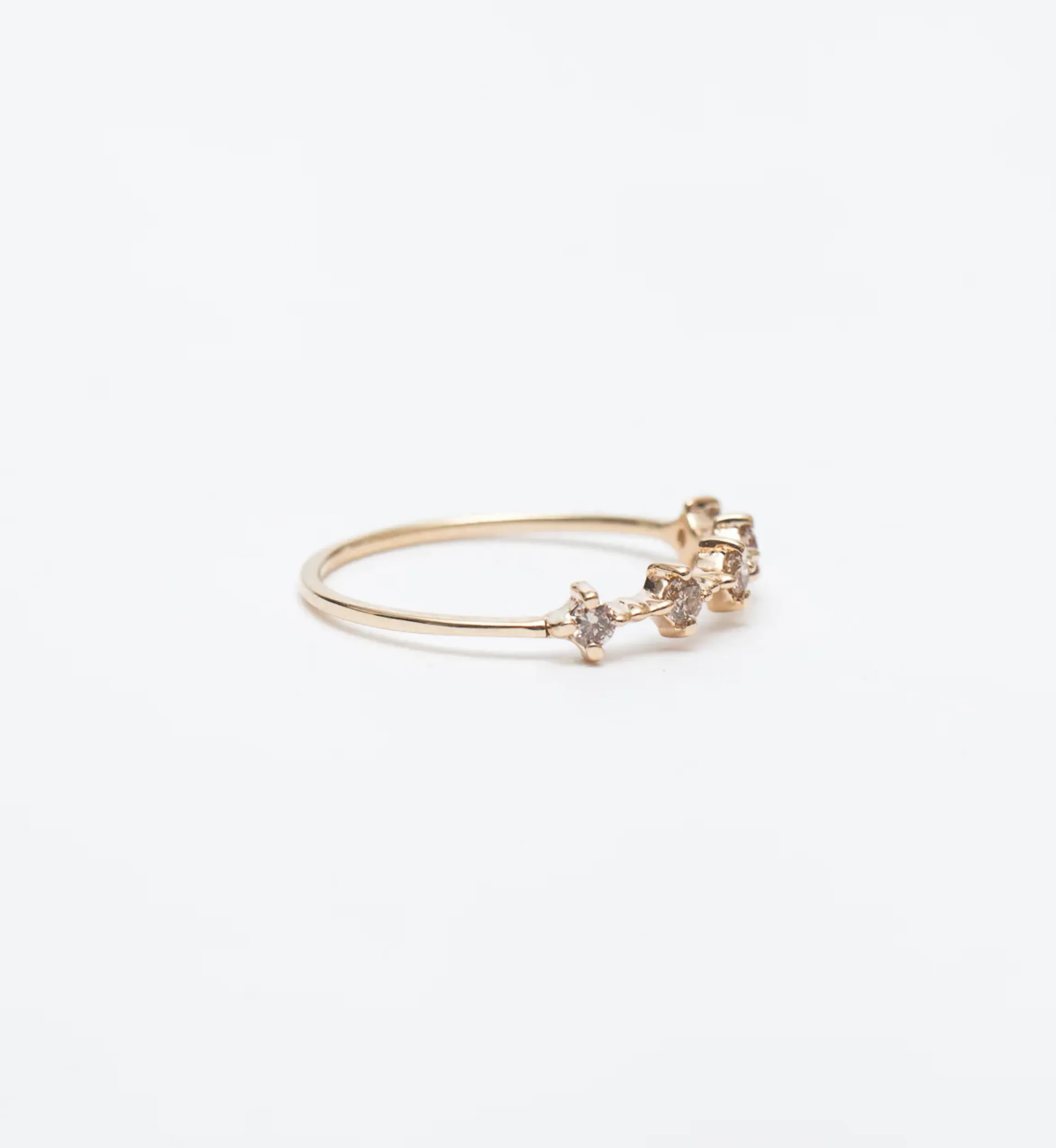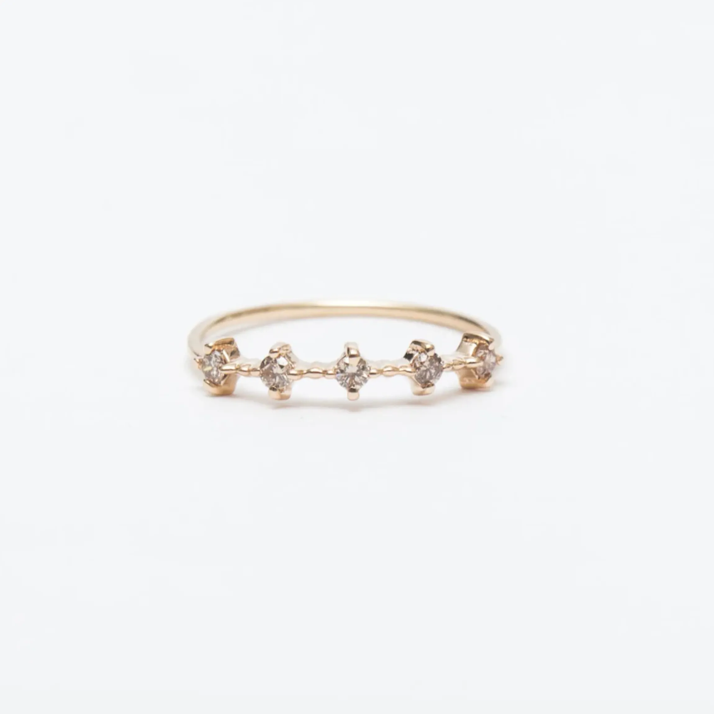 Can it get any sweeter than this airy stacking band with its row of glittering champagne diamonds? Five round brilliant diamonds in identical compass-style settings resemble twinkling stars and lend this ring its name. Single beads split each diamond, giving the arrangement a final, gleaming accent. We’ll understand if you love it too much to stack it up—something this special deserves to be noticed. Made in the U.S.A.