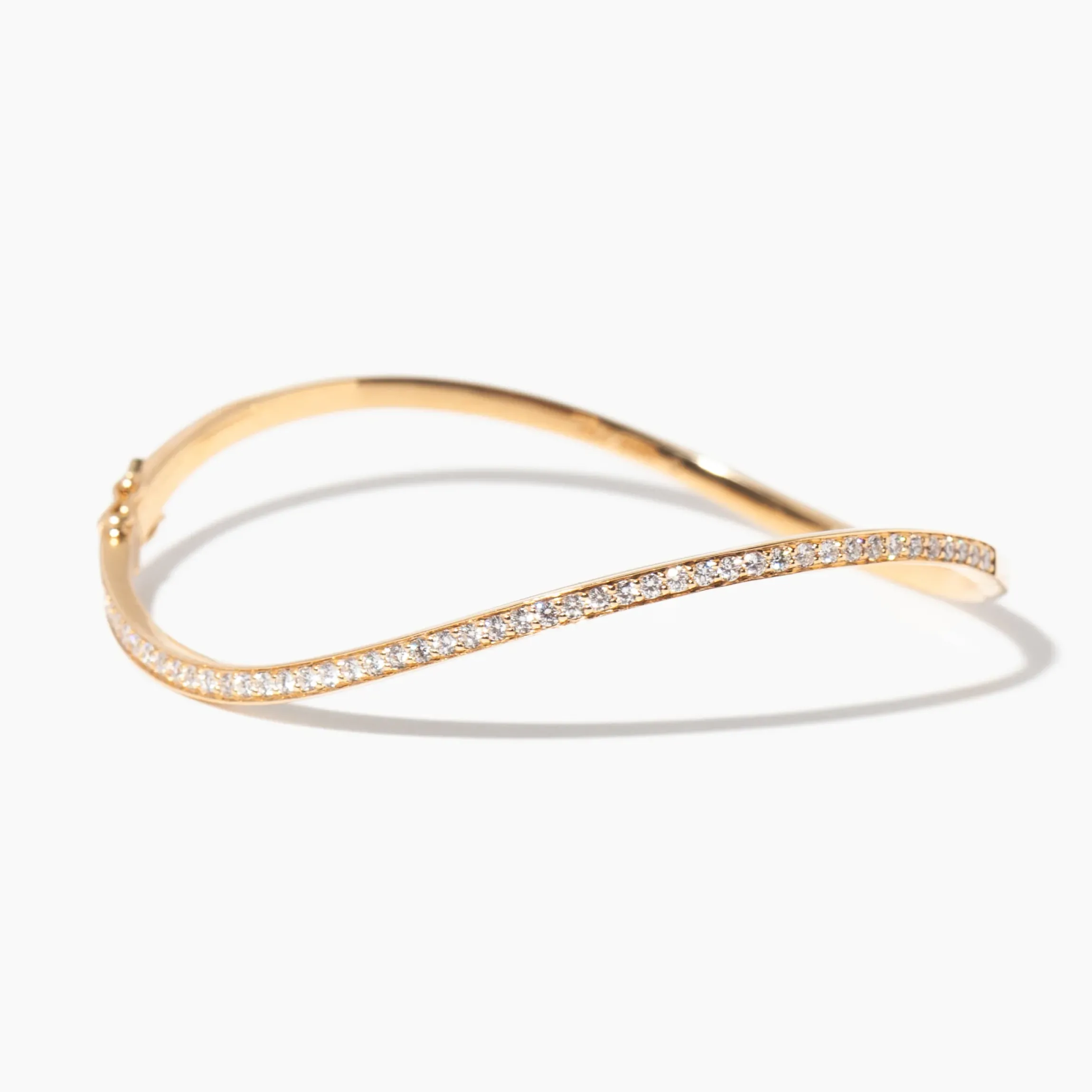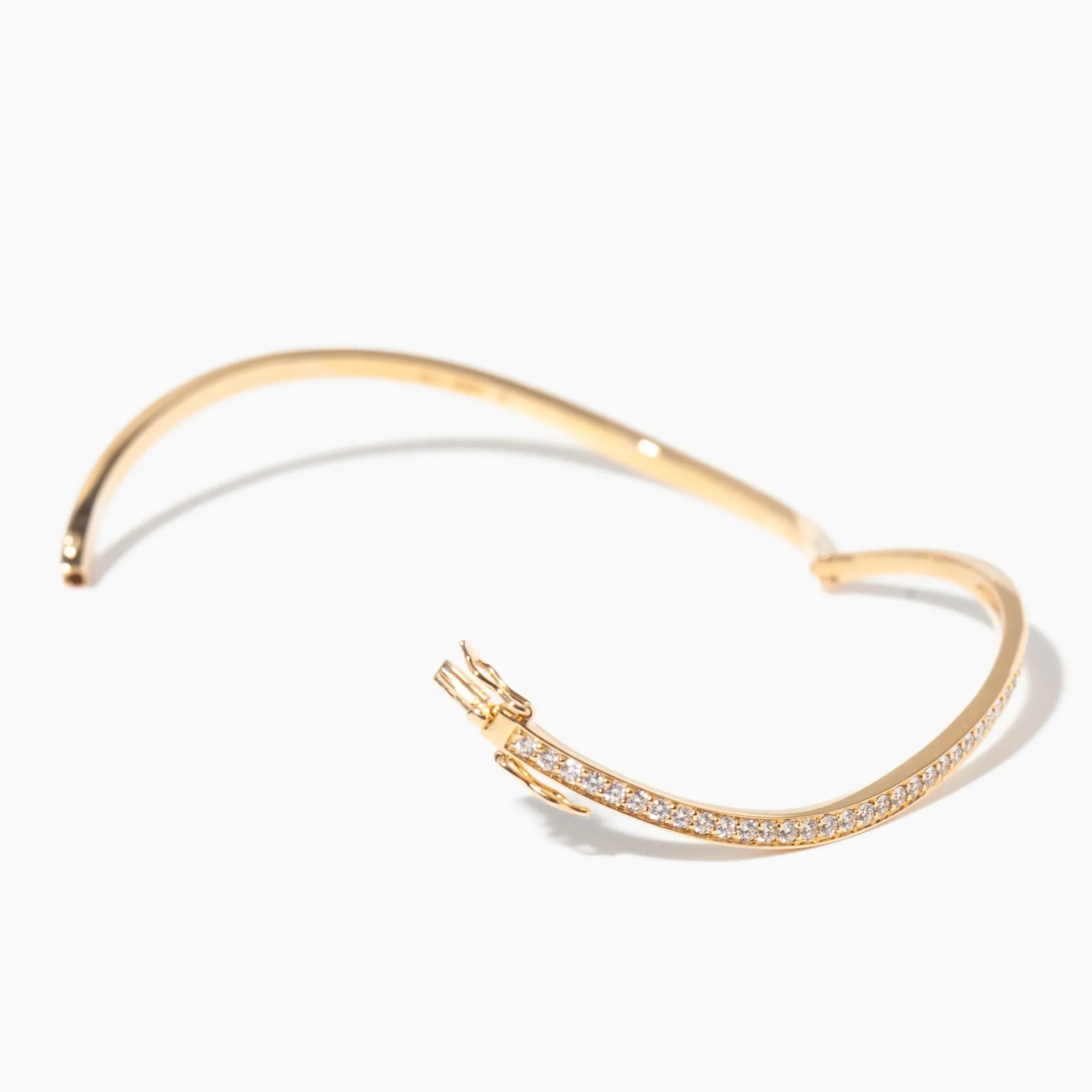 The Courbe bracelet is a timeless and classic bangle, resembling the iconic Bille Brahe wave design with a pavè set of diamonds in the front. The bangle bracelet is designed for a snug fit so it dosen’t turn when worn. Handmade in Italy.