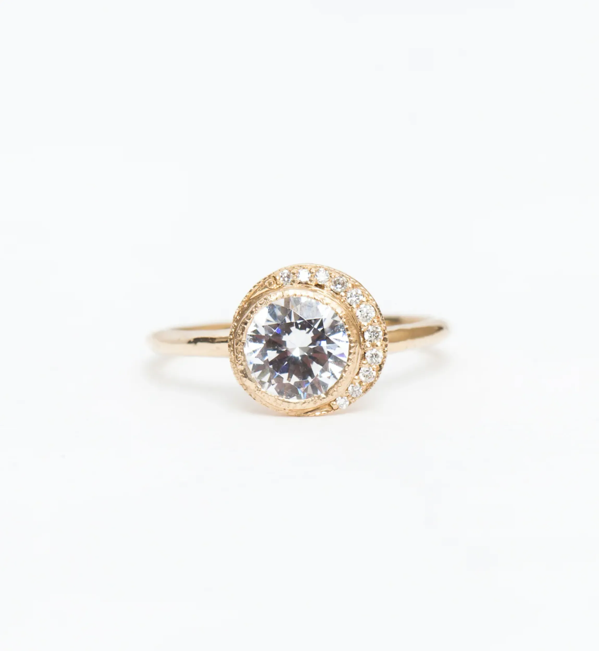 It’s almost like Misa Hamamoto is incapable of playing by the rules with this halo diamond ring. Her signature organic bezel setting gets a sparkling flourish with an asymmetric, not-quite halo of pavé diamonds that gives this style its name. This masterful design gives traditional round gems a romantic, natural air that you’ll fall in love with every time you look at your hand. Made in the U.S.A.