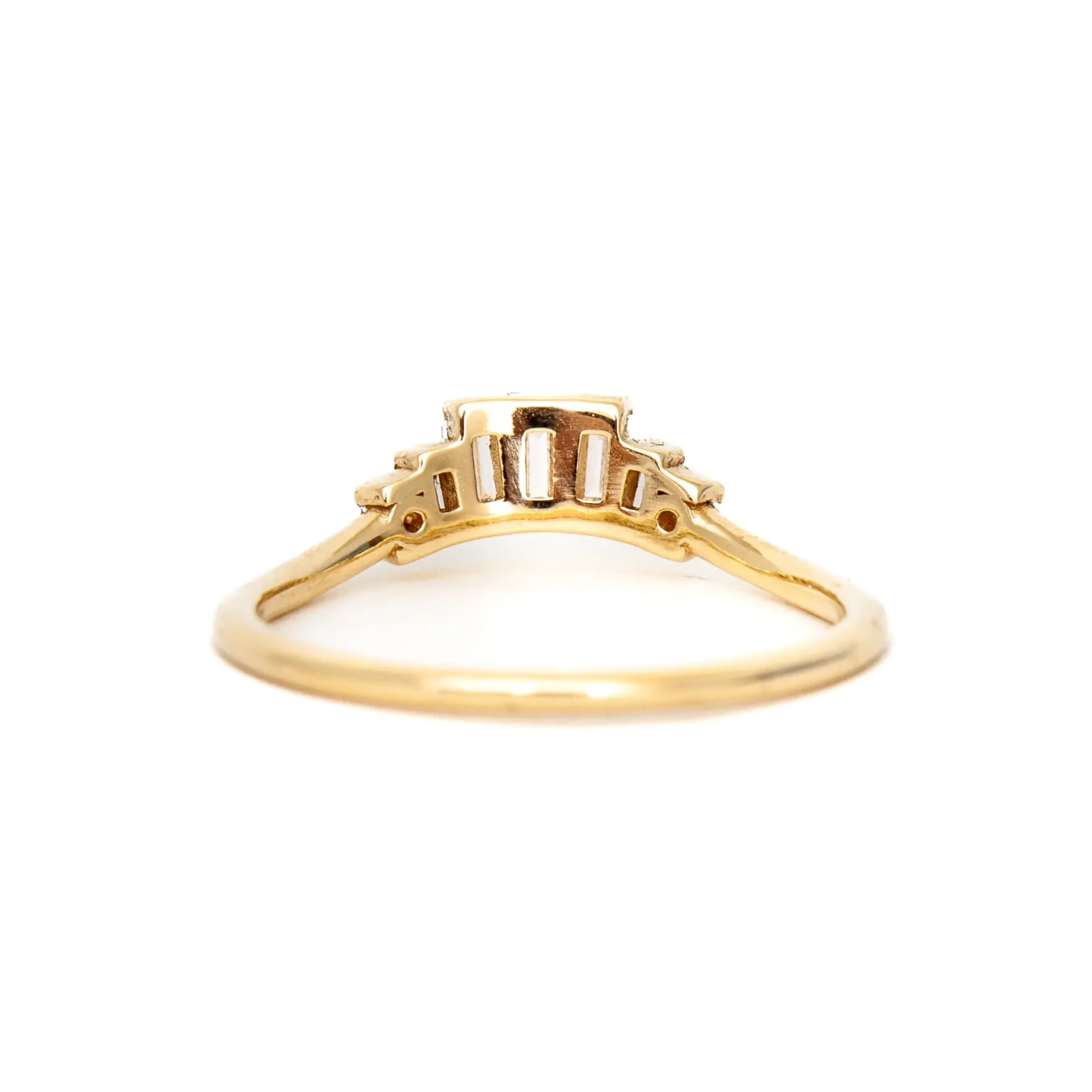 Baguettes are one of our favorite silhouettes for their clean cut, modern geometric shape, and the way they uniquely catch sparkle. This new Diamond Baguette Crown Arch Band features them in the most beautiful way possible. Made in the USA.