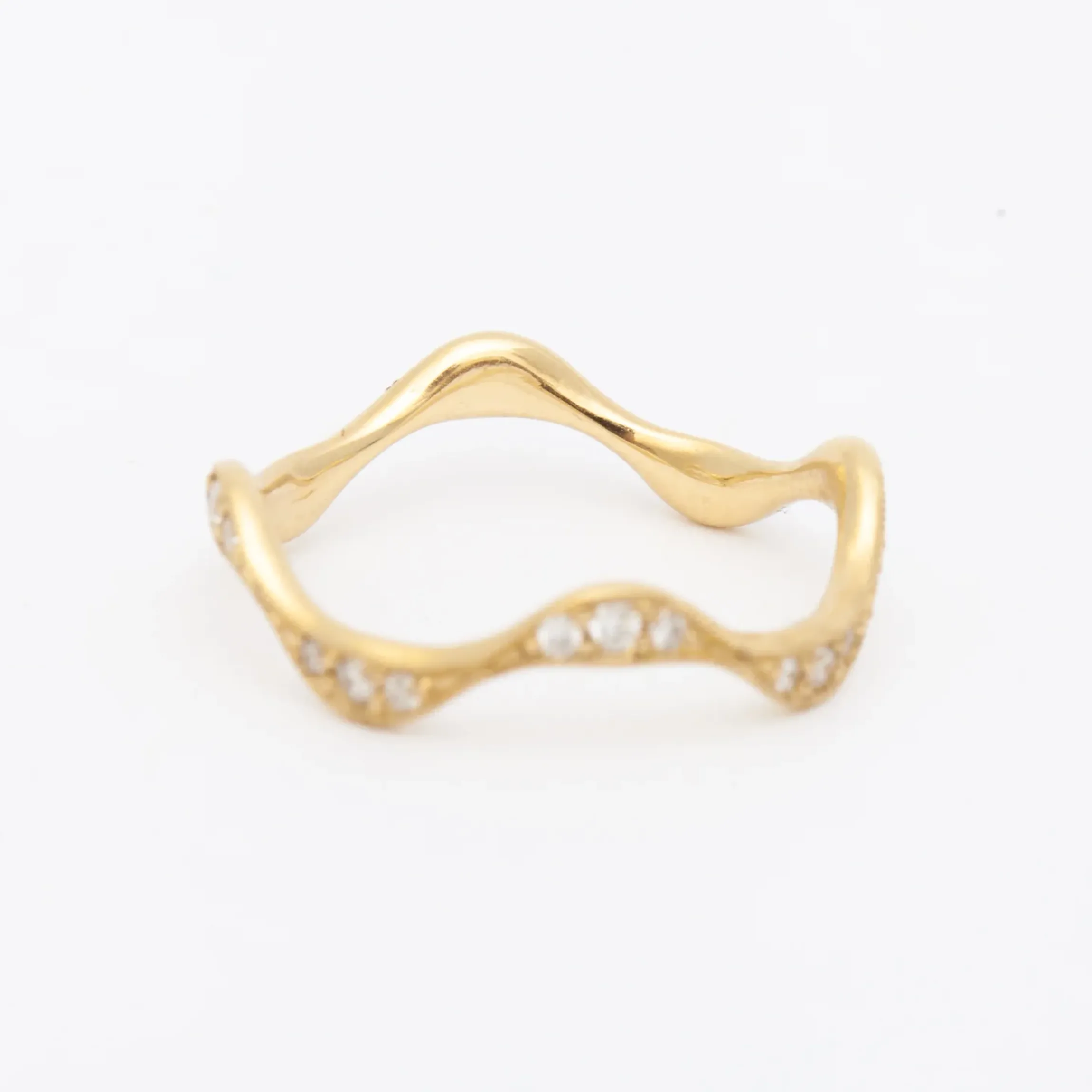 Showcasing an organic wave pattern sprinkled with white diamonds and signature delicate milgrain, this new ring from Jennie Kwon Designs sits snugly with so many styles and is a total eye-catcher on her own. Shine on and get ready for the compliments to come! Made in the USA