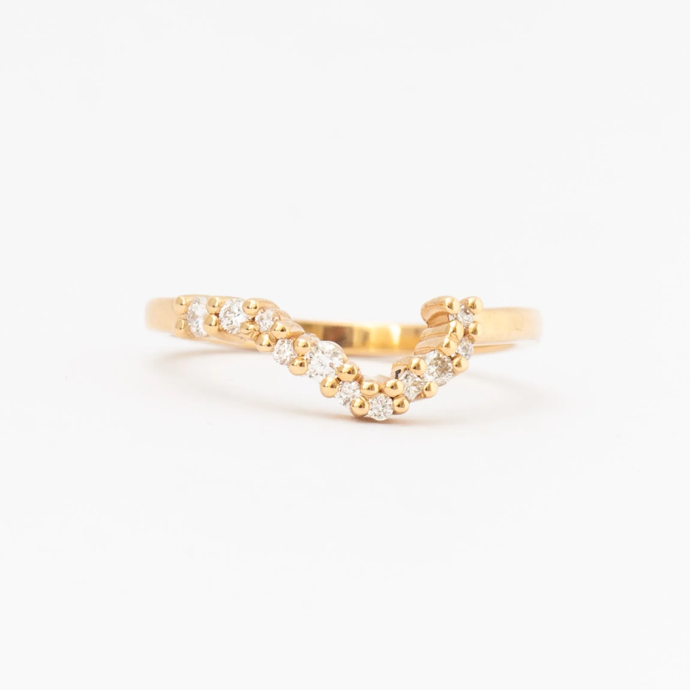 White diamonds twirl together to create an unexpected curve in this exclusive band–a No.3 and Bario Neal collaboration–designed to snuggle up to the Exclusive Prism Diamond Cluster Ring. This unique band creates the perfect playful engagement stack for those after a low-profile ring with a special shimmer! Expertly crafted in the USA.