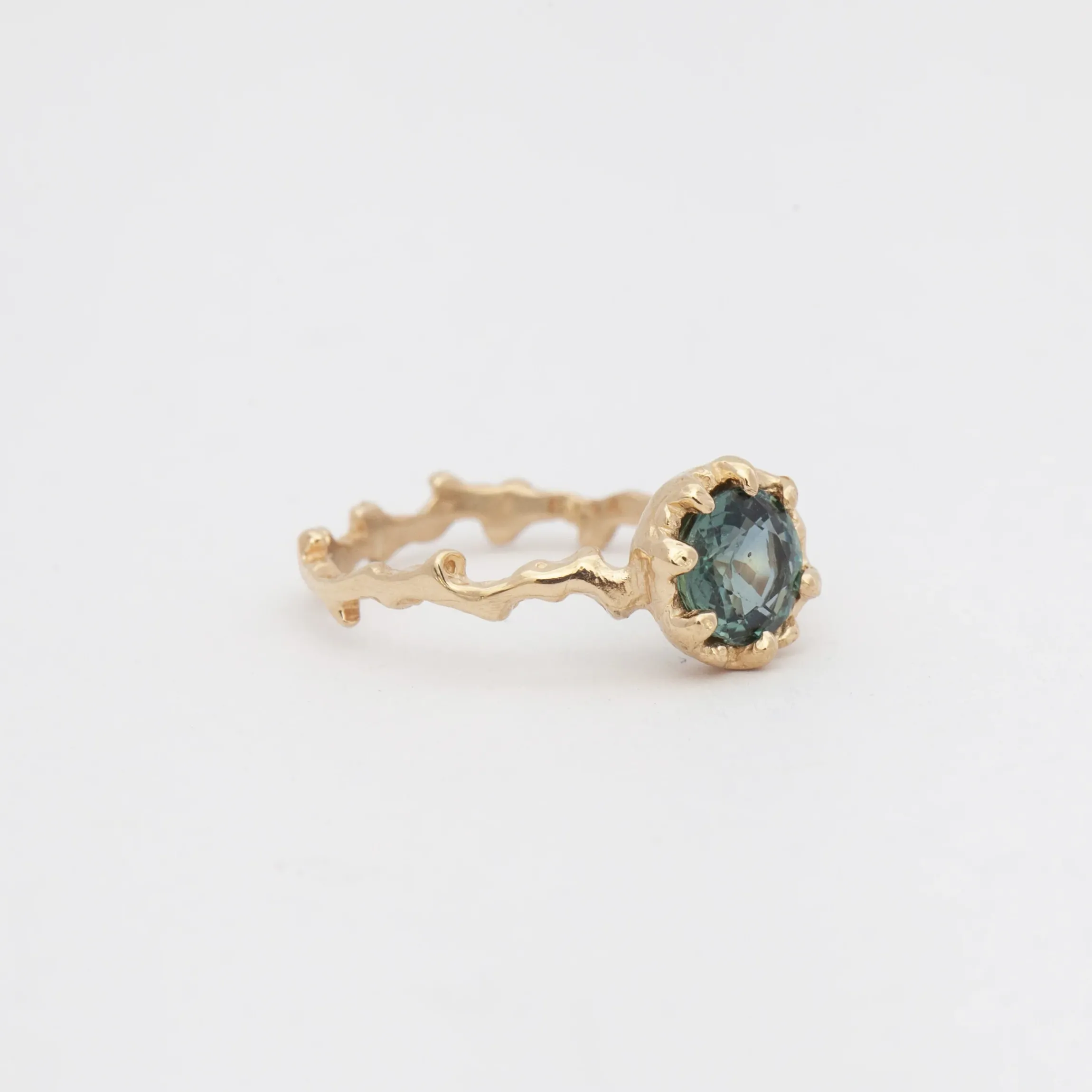 The organic texture and jagged lines of one of our favorite Misa bands takes on a new, grand dimension with this stunning sapphire ring. With a design carved by hand from wax, this ring captures a modern, alternative bridal vibe thanks to its rustic feel and striking gemstone center. If you’ve already said “I do”, then wear it on your right ring to make a colorful statement. Made in the U.S.A.