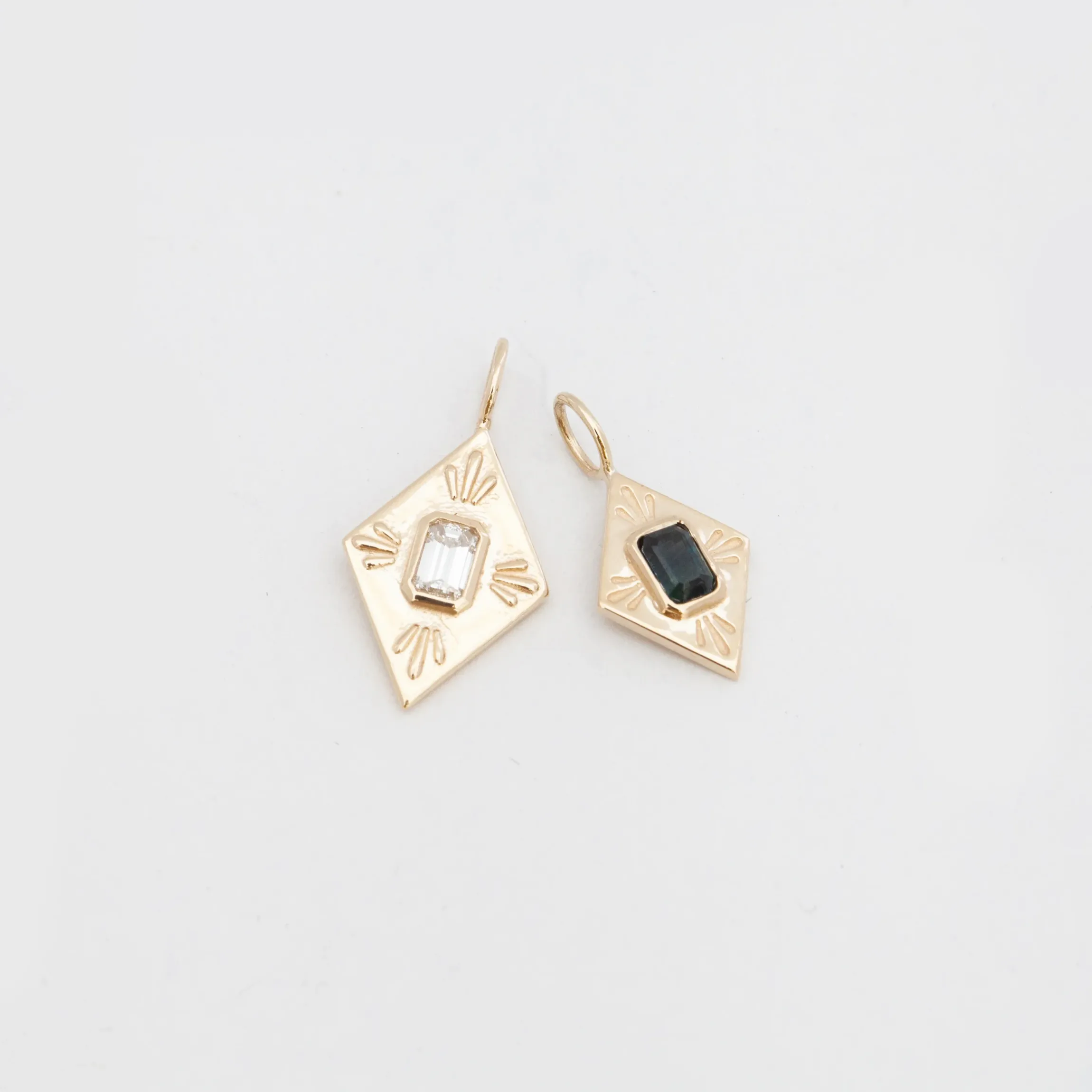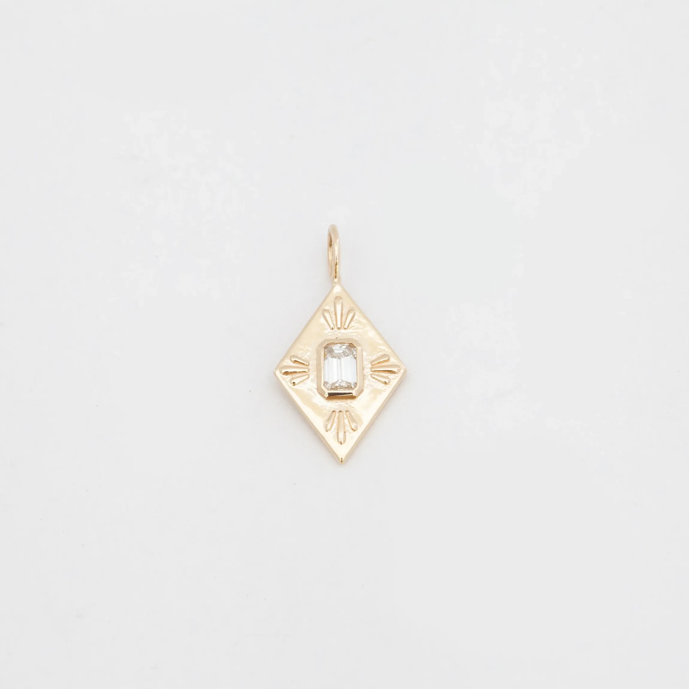 Like the Gothic spires for which it’s named, this architectural pendant is all about shape and angles. The elongated silhouette showcases a bezel-set emerald-cut diamond whose rectilinear facets are a perfect complement to the golden form with raised detailing framing each corner. You’ll love how the geometric design draws a sharp contrast with diamond solitaires and slender chokers. Made in the U.S.A.