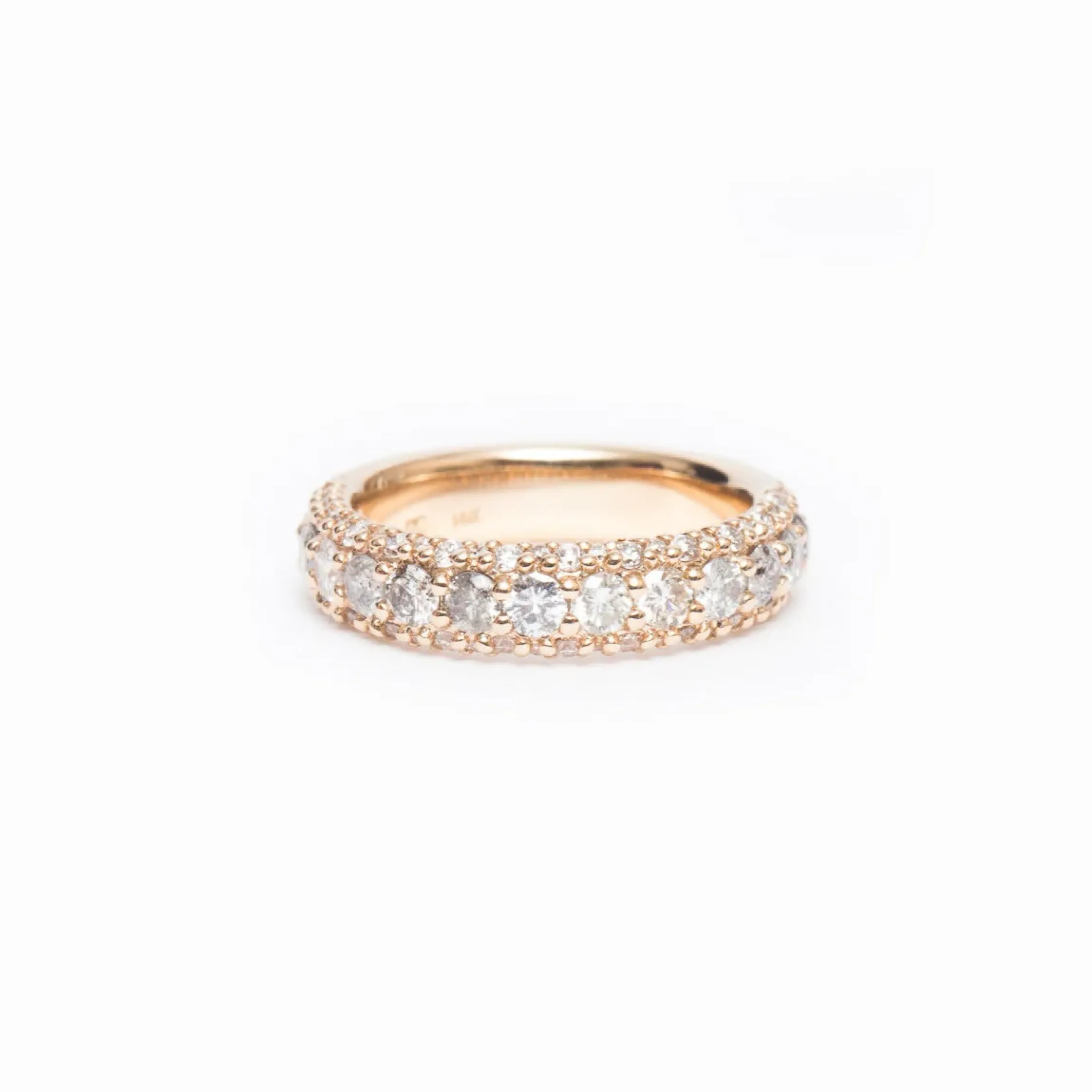 14 karat gold with 0.59 carats of grey and white diamonds.