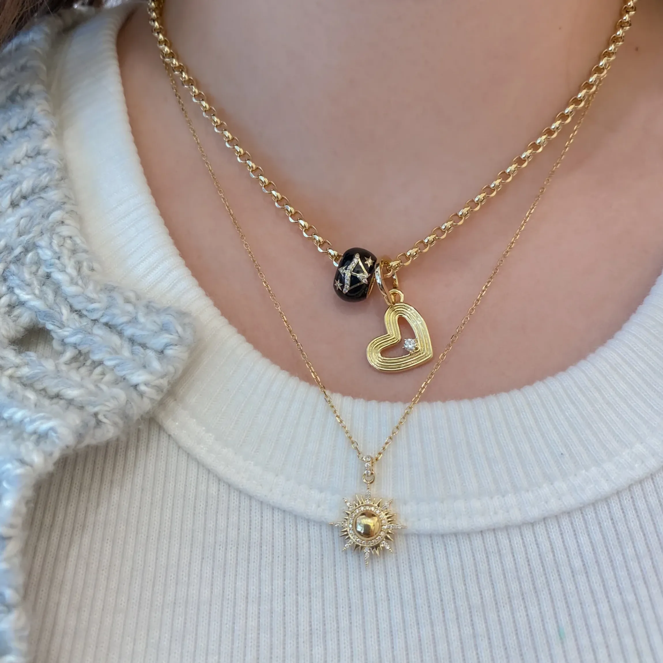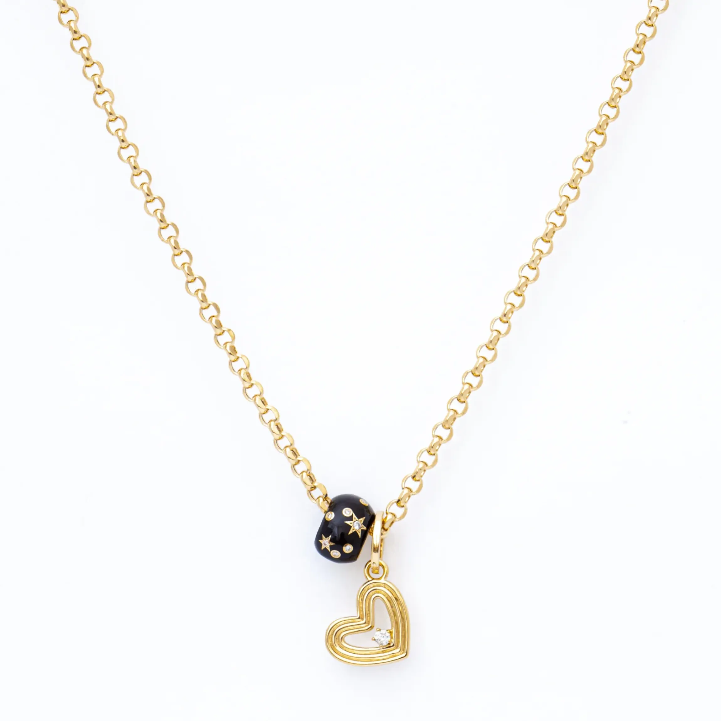 Groovy, with a side of bold love. This chunky, removable heart charm from Los Angeles designer Adina Reyter will bring you all the good vibes. For a change of pace, try slinging this charm onto a slinky 3 mm herringbone chain.