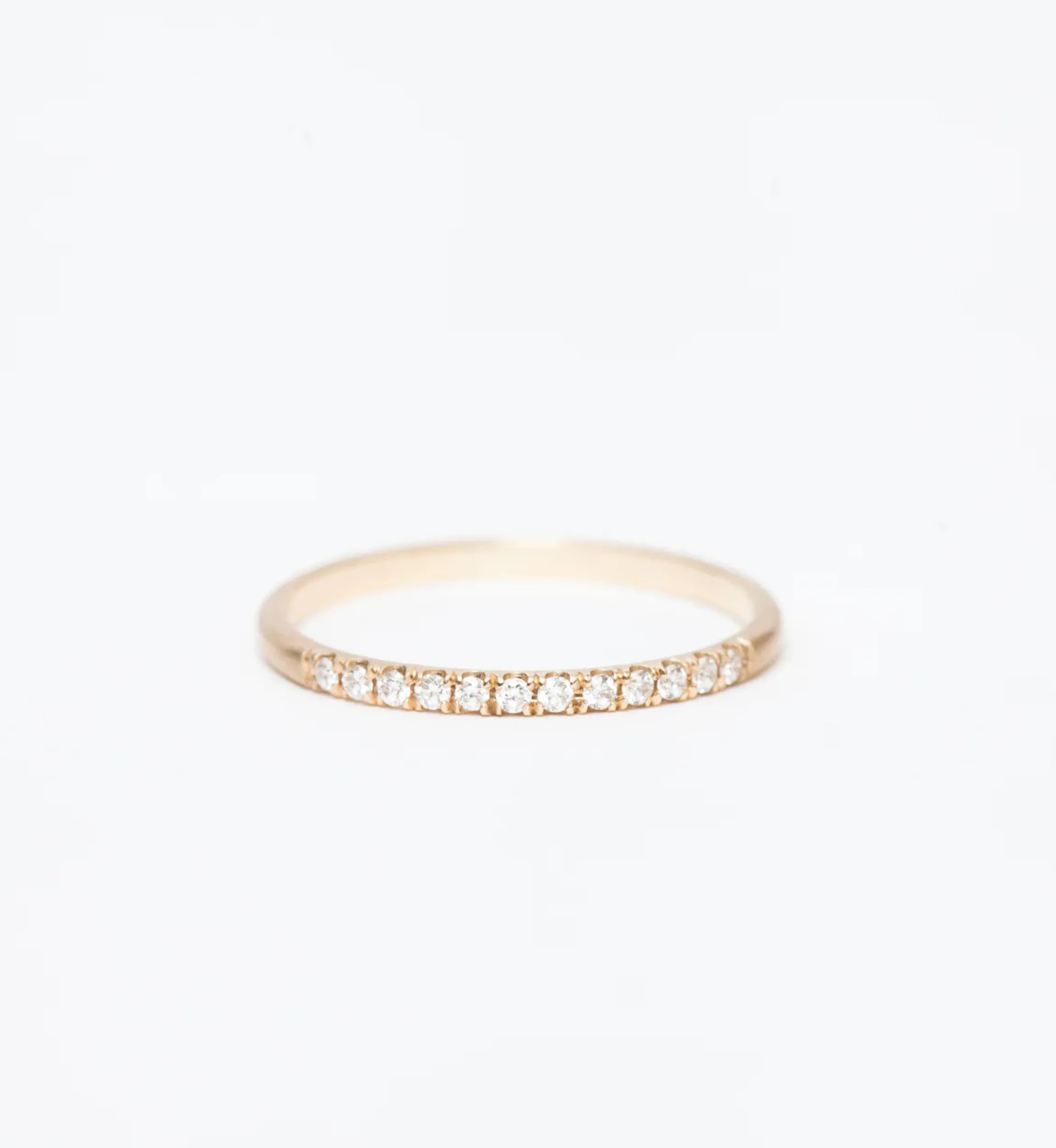 A classic Jennie Kwon style gets revamped with more gold, more diamonds, while retaining all of its minimalist grace. This effortless stacking band features matte yellow gold, setting its sparkling white diamonds into stark relief for an even brighter look. Wear it with plain gold bands for a discrete, yet luxe, vibe. Made in the U.S.A.