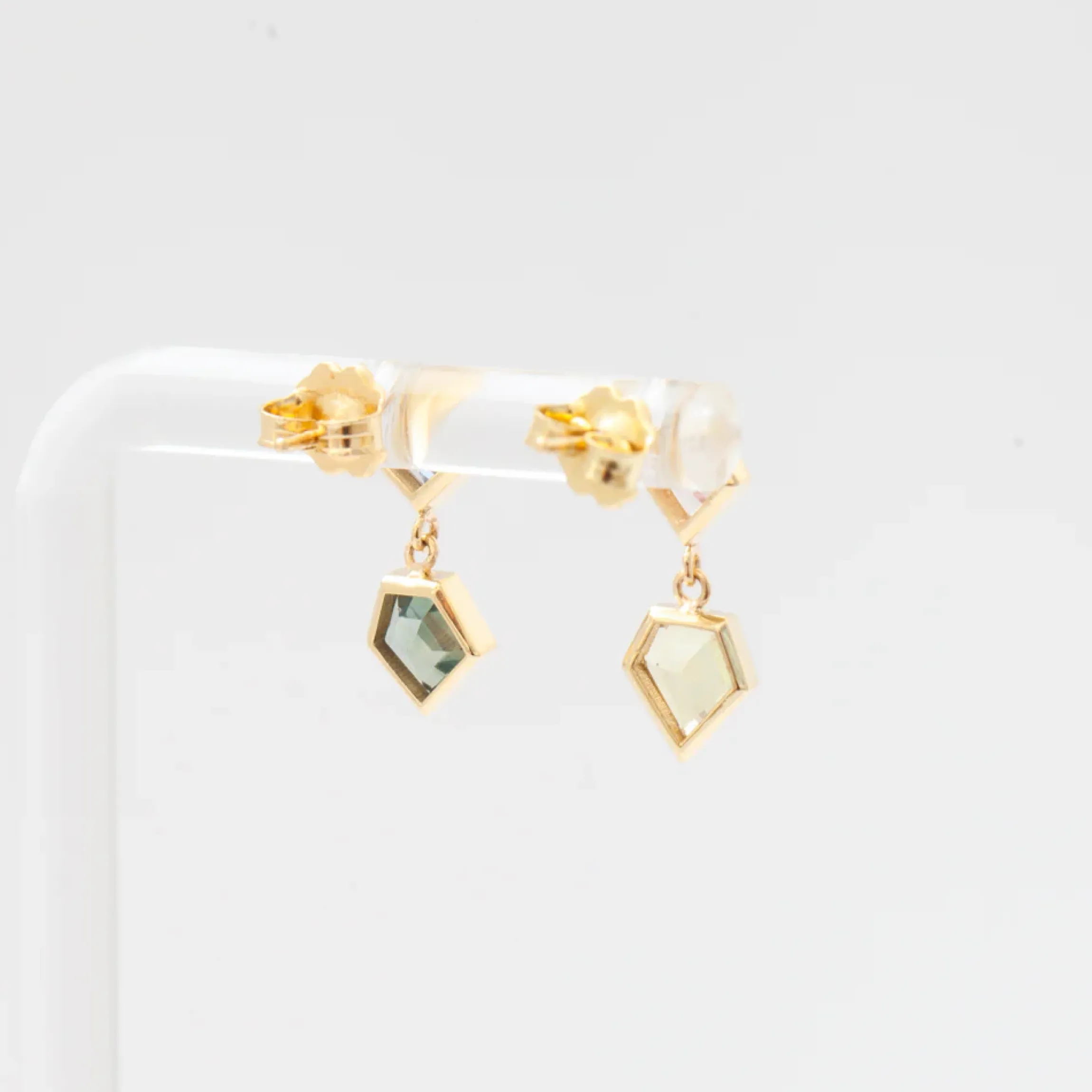 Add a bright splash of color to your look with this bold pair of drop earrings by Los Angeles-based designer Era Jewelry. Featuring a dangling stack of uniquely cut sapphires wrapped in gleaming gold, these beauties are the perfect way to make a statement this spring and summer.