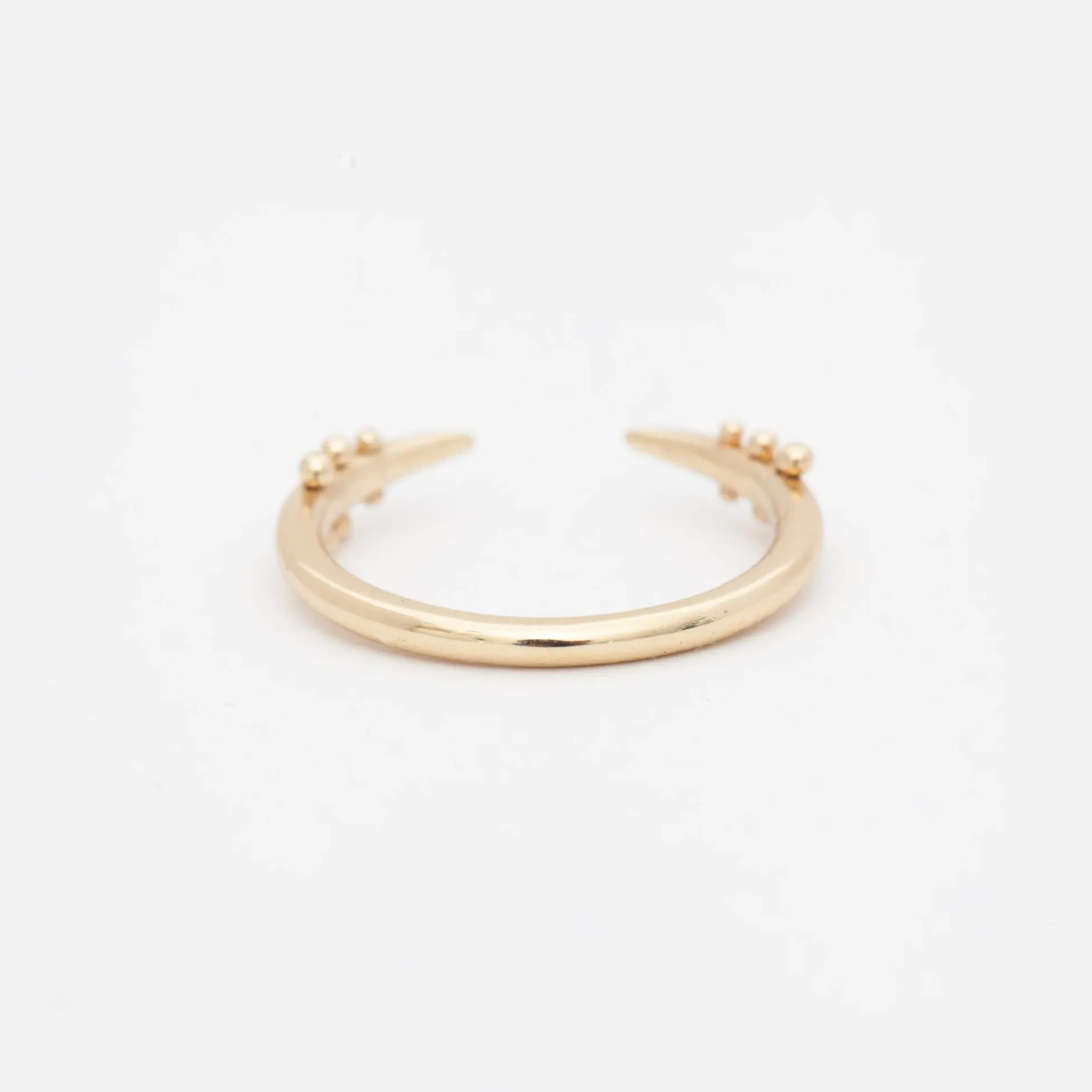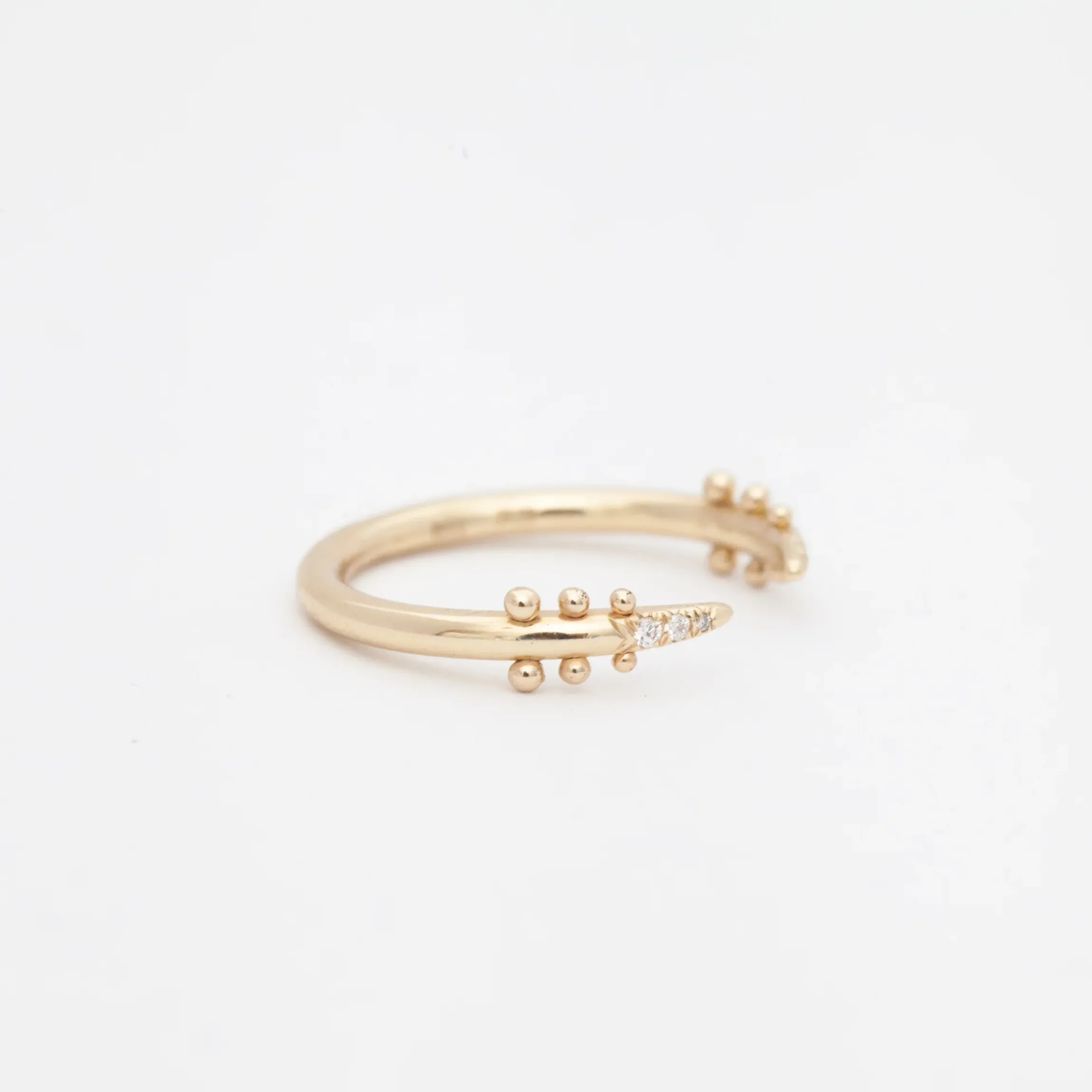 Glittering diamonds and polished beads play off each other in this open cuff-style ring that stacks with anything and everything. Tapered points are French-set with delicate diamond pavé to make the silhouette extra special. Wear it to frame classic solitaires or as a solo, sculptural statement. Made in the U.S.A.