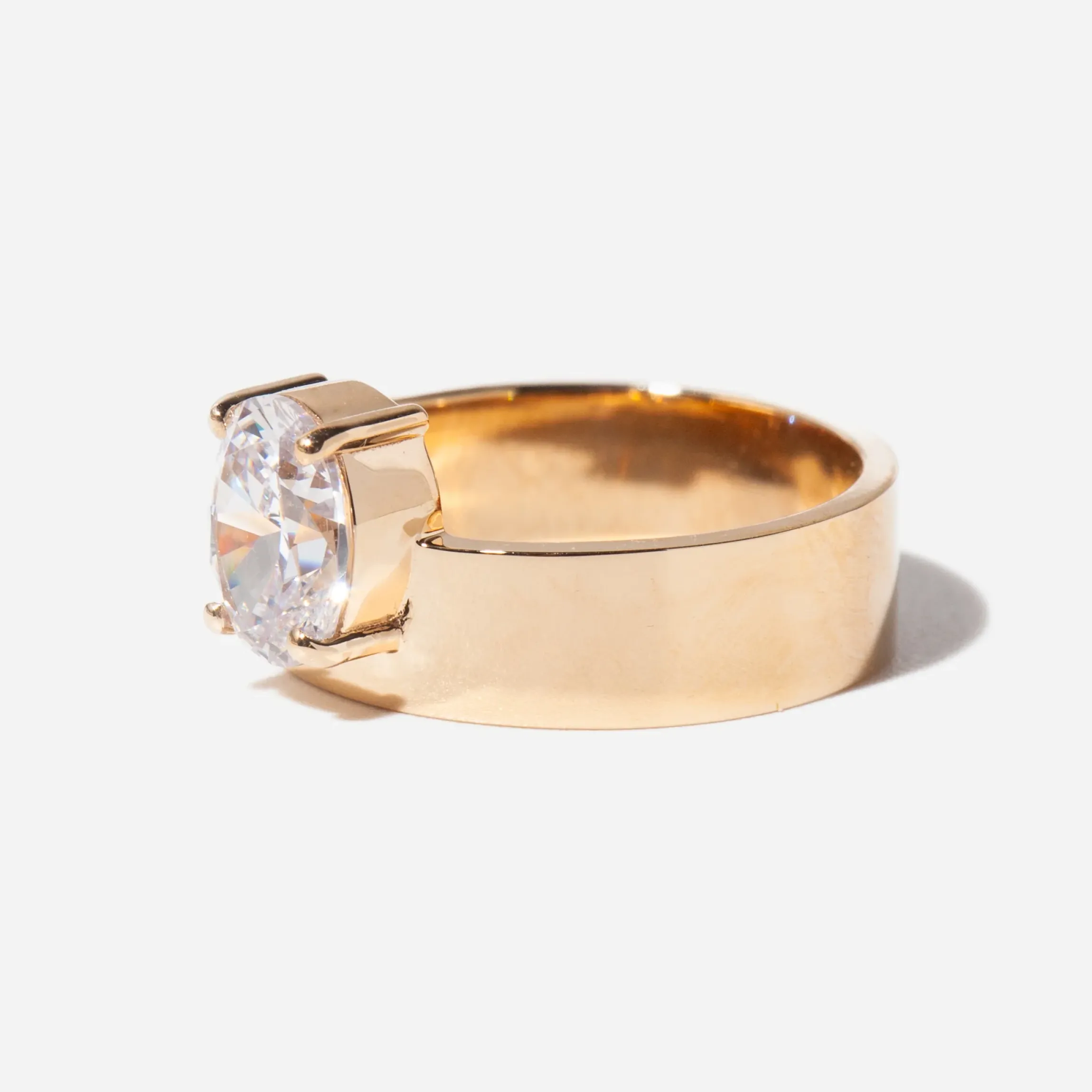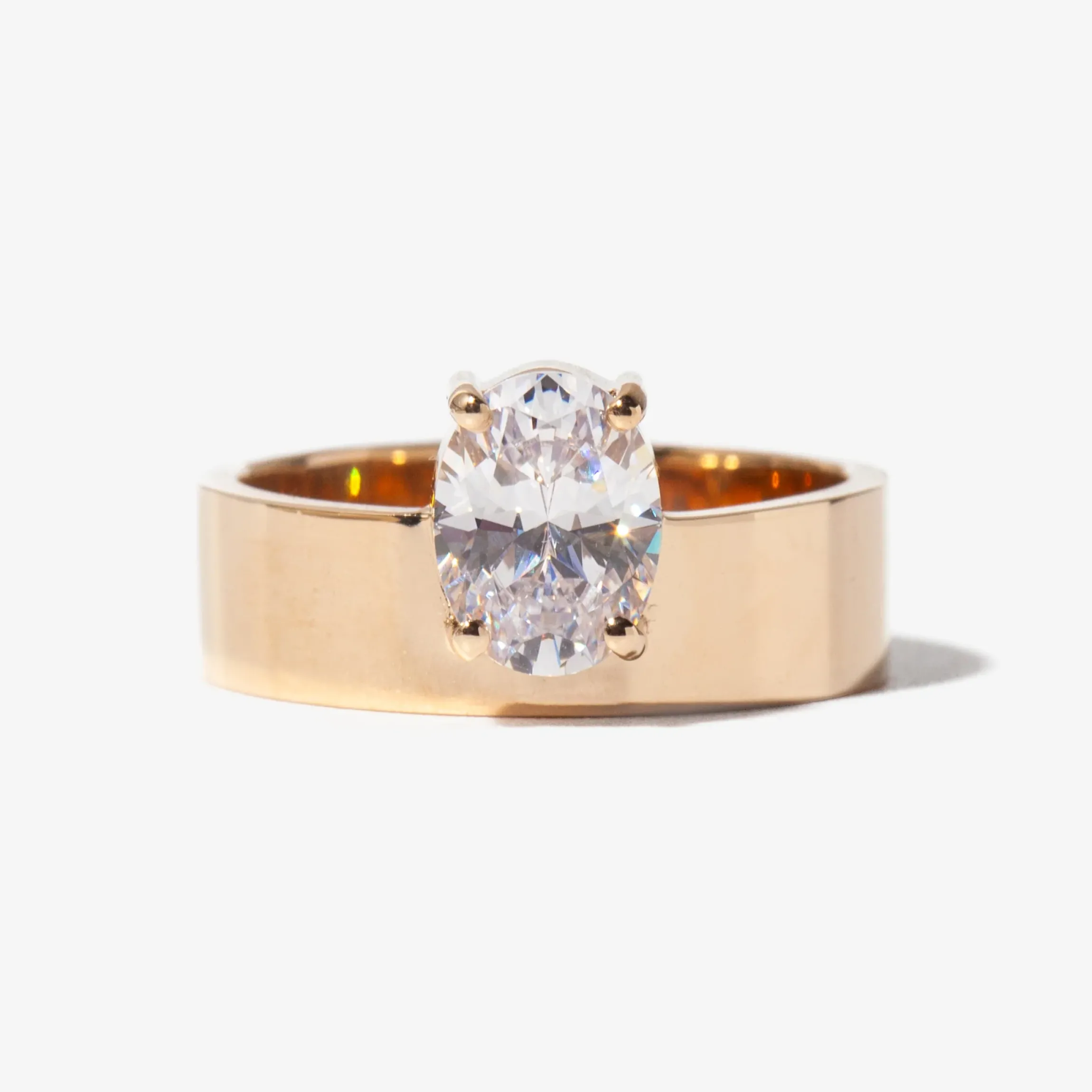 14 karat gold set with an oval white (GH color) diamond totaling approximately 1.00 carat.