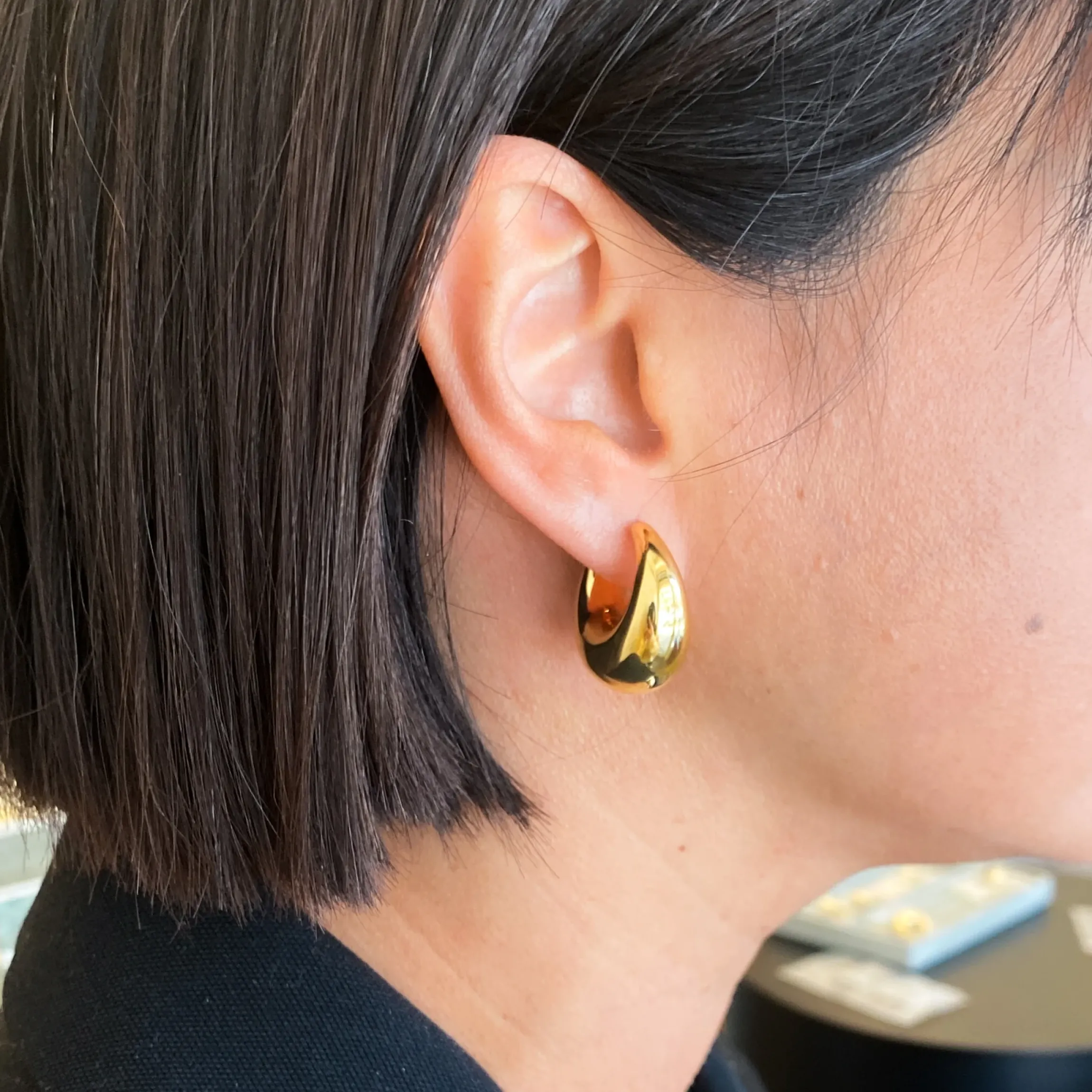 These bubbly hoops have quickly become our go-to piece and for good reason. Their striking yet charming shape is sure to earn you plenty of praise. Love chunky earrings but not the added heaviness? Don’t be fooled by the bold appearance–these hoops are surprisingly lightweight, thanks to their hollow design. They pair perfectly with everyday wear and beautifully accentuate slim huggies and gemstone studs for an effortless and chic look.