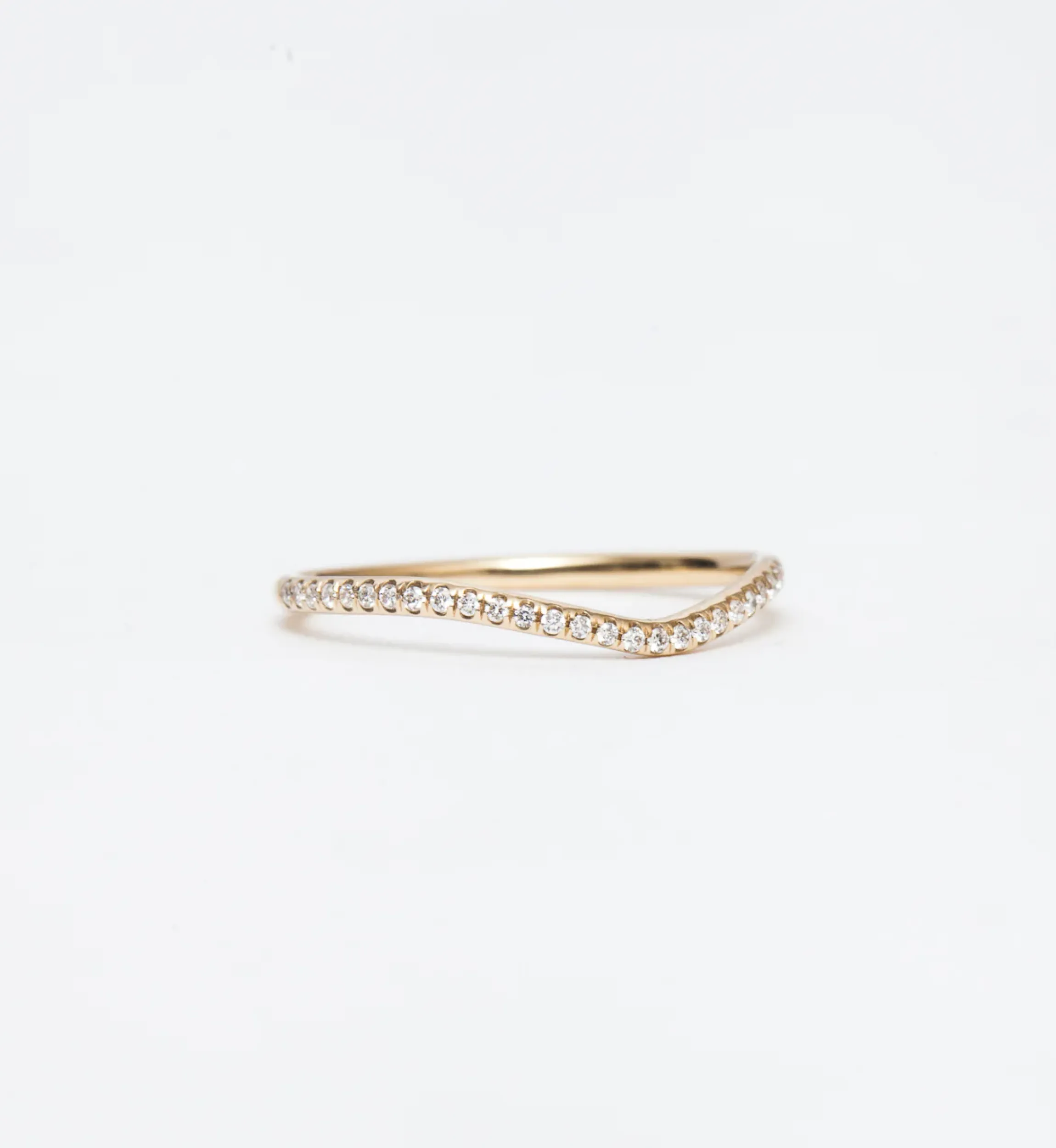 Designer Wing Yau deliberately formed the soft curve of this ring as a complement to her signature Crossover series of rings. Finished with a glittering pavé of reclaimed white diamonds, this band creates a natural frame around her organic, sculptural designs. Or wear it with your own rings to create contrast in form or by itself as an elegant single statement. Made in the U.S.A.