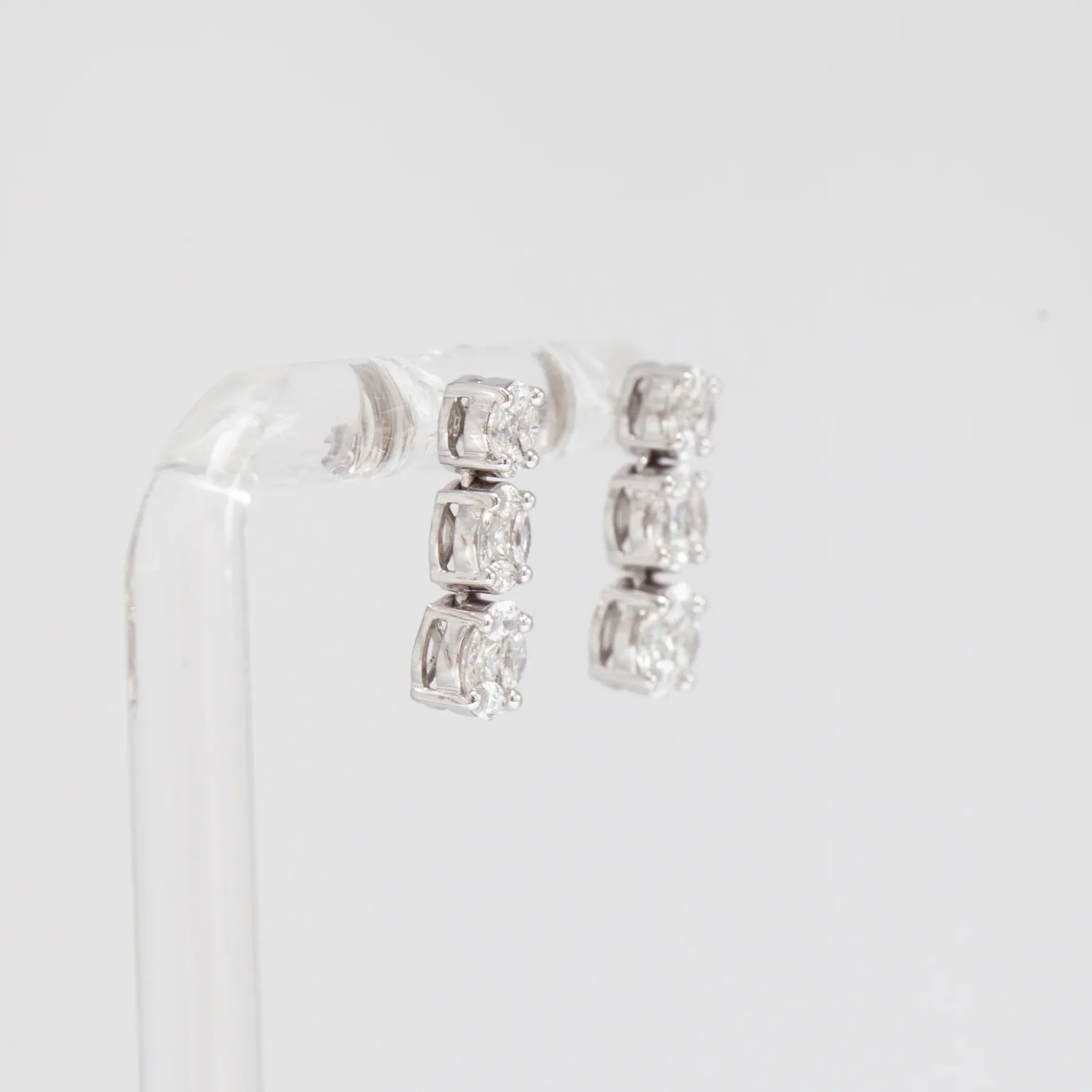 These fresh studs are sure to make a statement. With a mosaic-like design and a mix of princess and marquise white diamonds, they sparkle like nothing else. The graduating three drops are beautifully and thoughtfully crafted. Whether it’s your wedding day or a special occasion, these will definitely earn you some compliments.