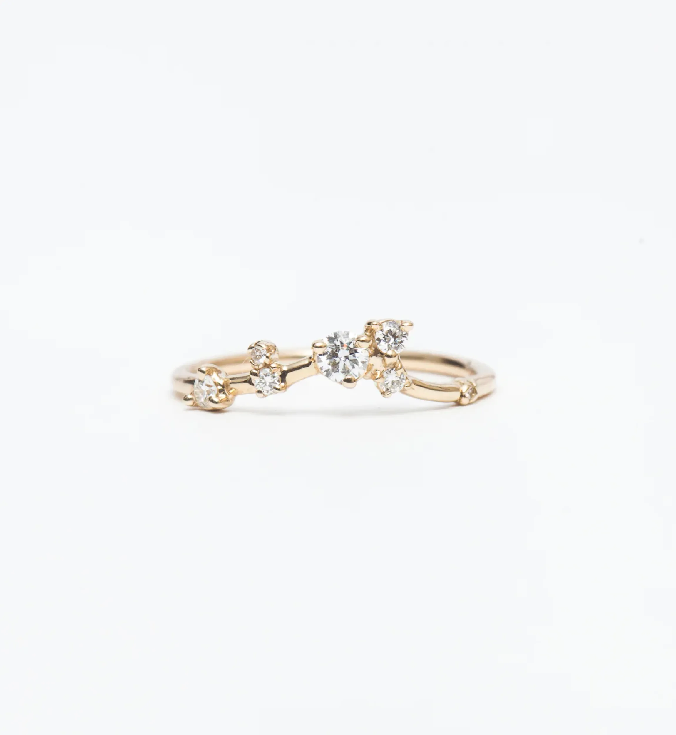Clustered, asymmetric settings of diamonds transform a signature WWAKE shape into a luxurious, can’t-miss ring. The unusual arrangement feels natural and organic on the hand, almost like nature placed them there for you. Its sculptural form feels artistic and sophisticated, whether worn on its own or stacked with other styles. Made in the U.S.A.