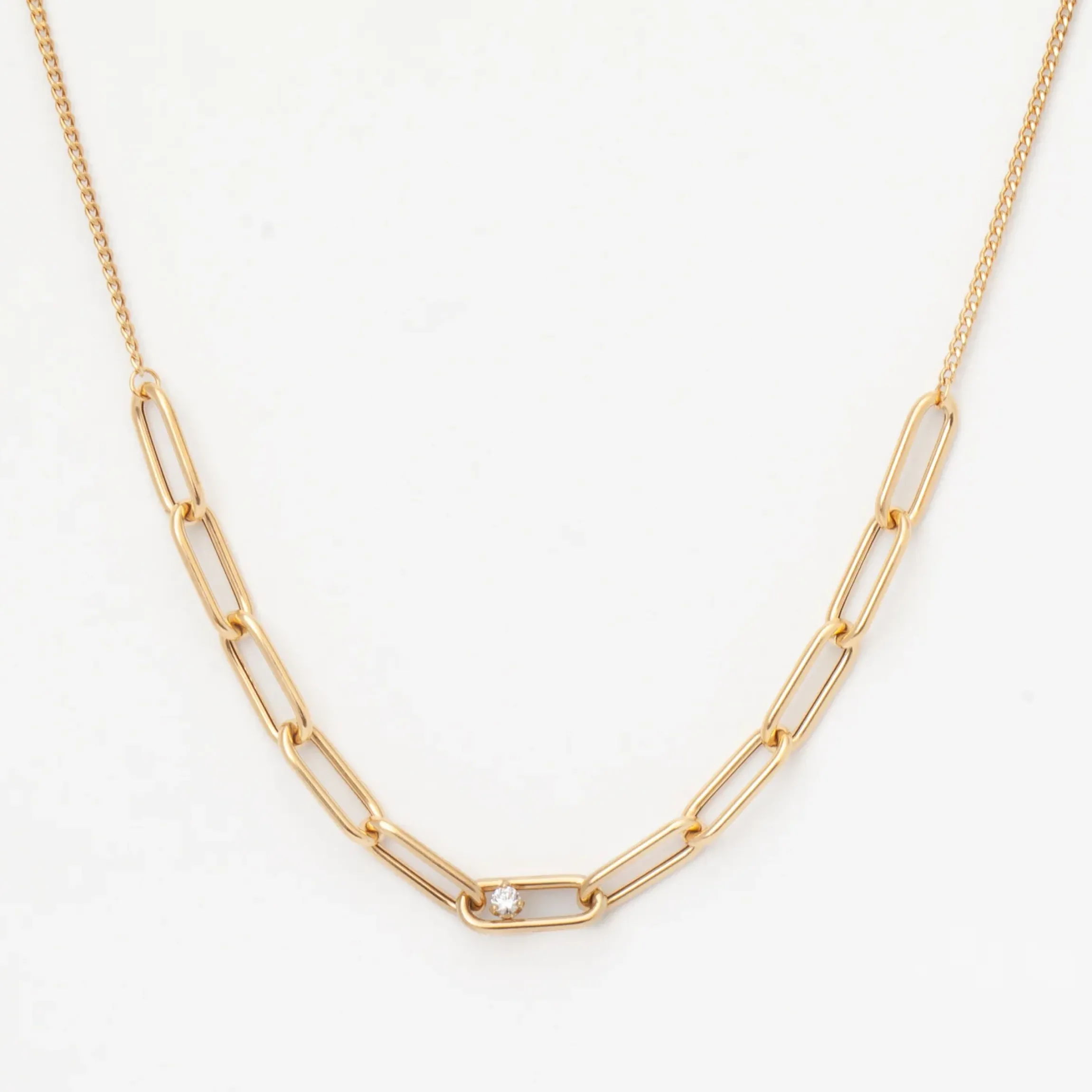 For fans of paperclip link chains, this new necklace from Zoe Chicco is a gorgeous piece to add to your collection. With a gleaming prong-set, round white diamond stationed just off the center, this necklace brings a luxe feel to every look. Wear this beauty on its own or pair it with contrasting chains for the perfect stack.