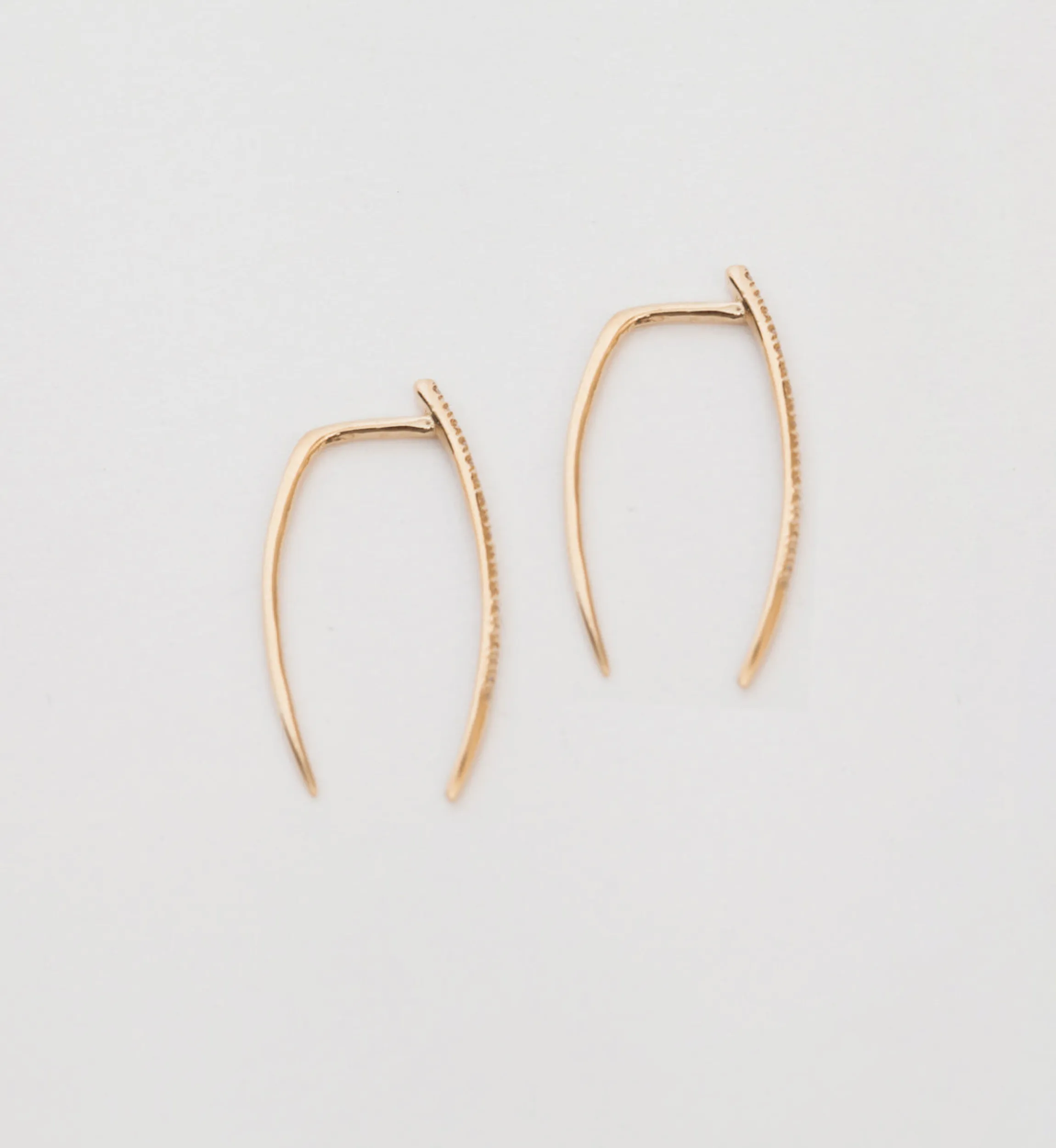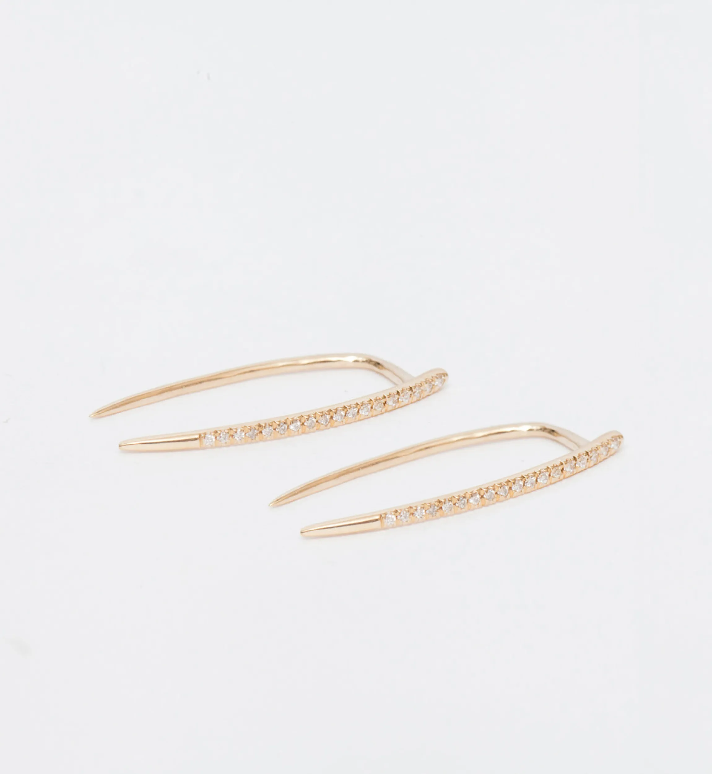 The curves and taper of Gabriela Artigas’s signature tusk silhouettes have been elongated and dusted in diamonds for a luxe look that’s powerful, feminine, and impossible to ignore. These solid gold earrings blur the line between geometric and organic with a curve inspired by nature and perfect for the jeweler’s art. Wear them as an alternative to diamond studs that offer all the sparkle, with so much more personality. Made in the U.S.A. Sold as a pair.