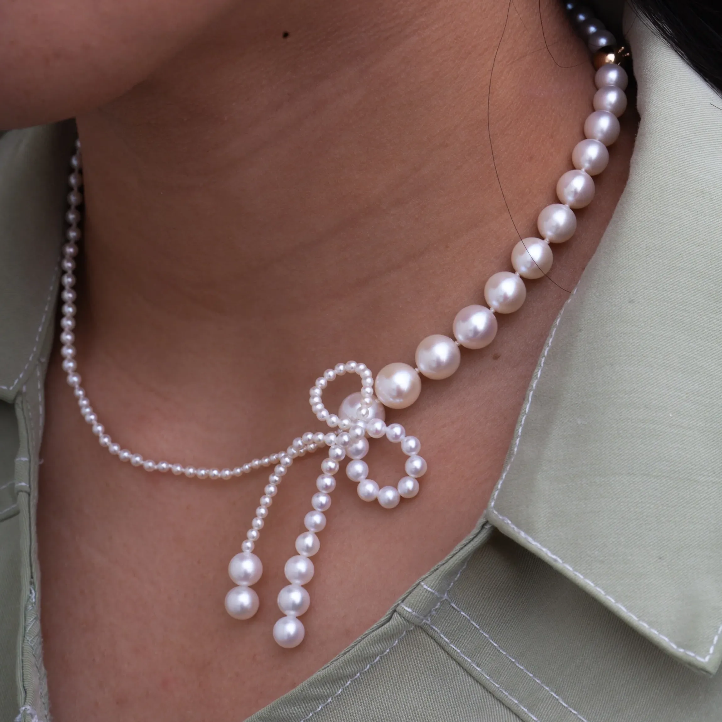 This bow pearl necklace channels Sophie Bille Brahe’s minimalistic take on pearl jewelry.