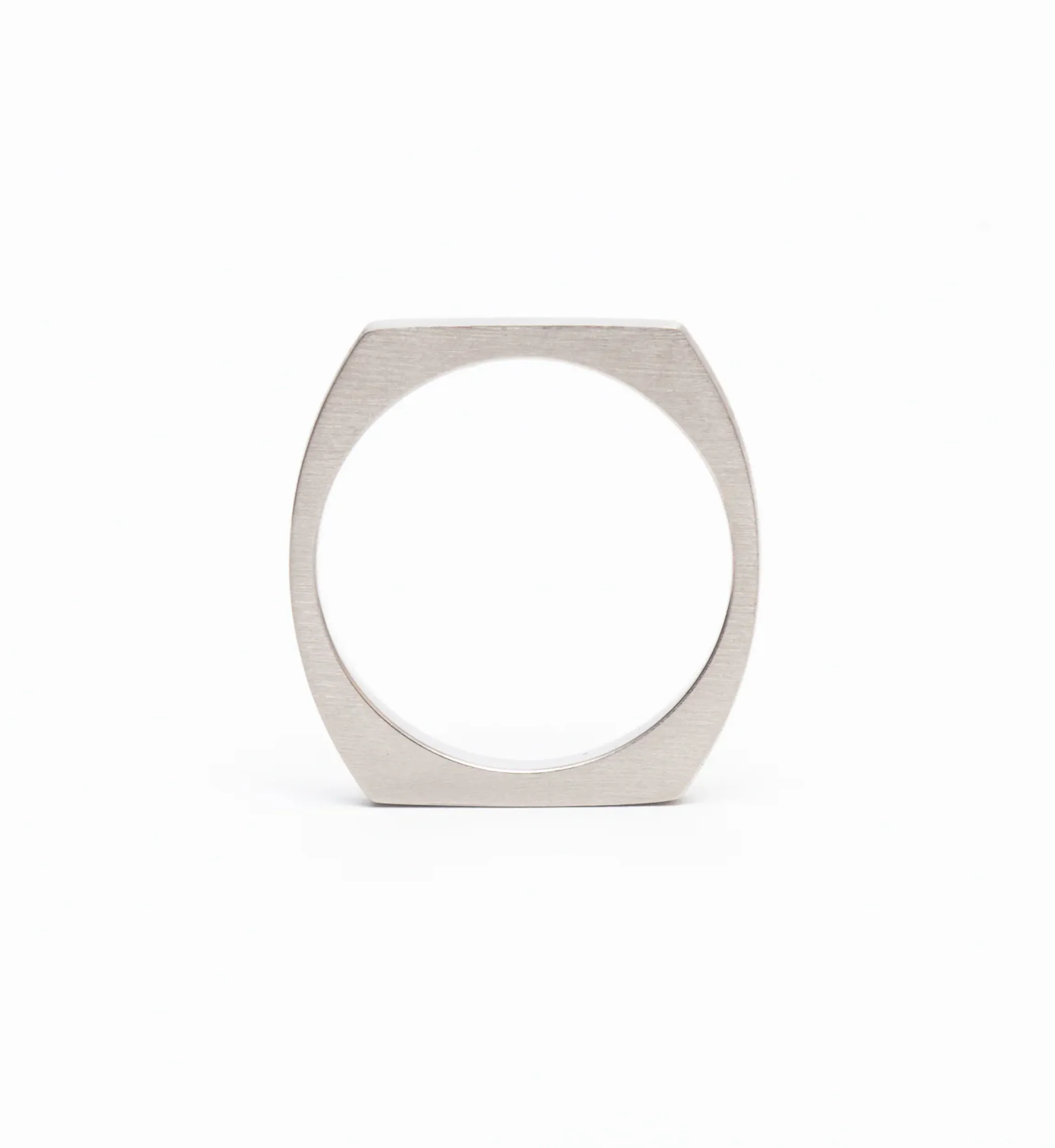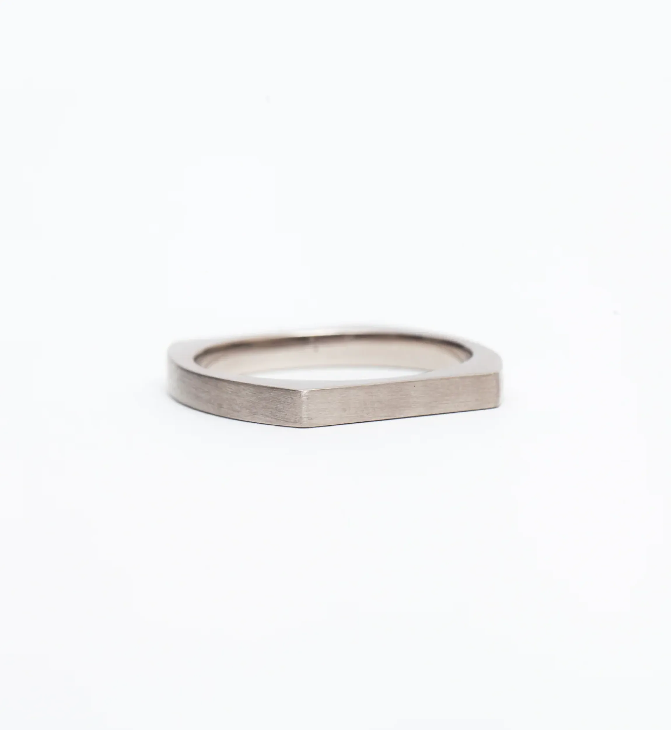 An arresting combination of soft curves and hard lines create modern balance for this men’s band. Designed by Bliss Lau as an understated counterpoint to her artfully geometric, this style mirrors her signature stabilizing shape and can be rotated for two different looks. A polished interior feels soft on the skin while a matte face gives its smokey white construction an edgy finish. Made in the U.S.A.