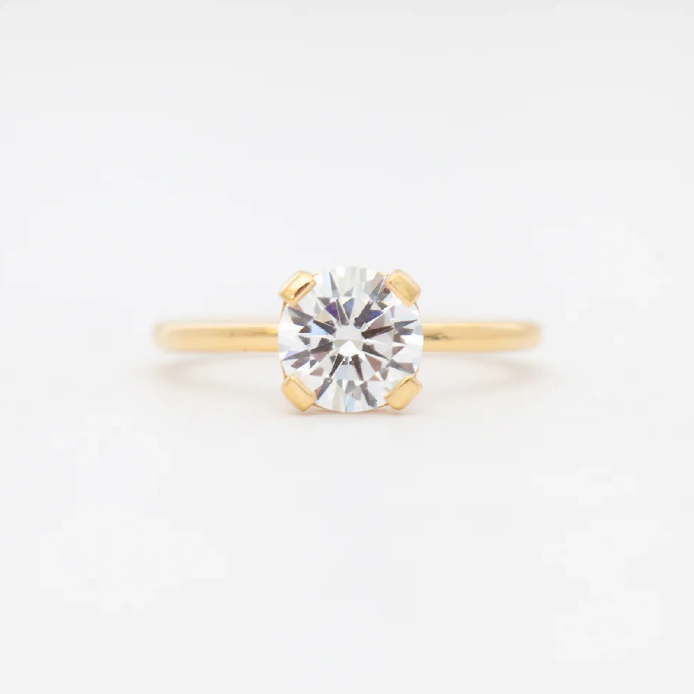 18 karat yellow gold set with a 1.25-carat round G-H VS white diamond.