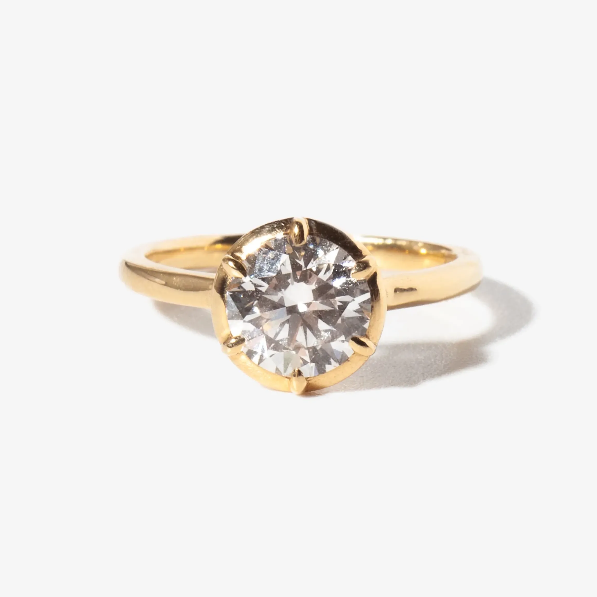 18 karat yellow gold set with a lab-grown round diamond totaling approximately 1.60 carat (G/H VS+)